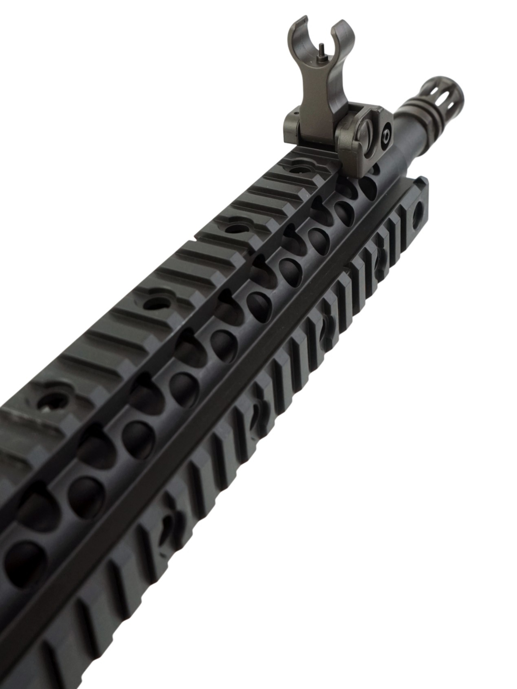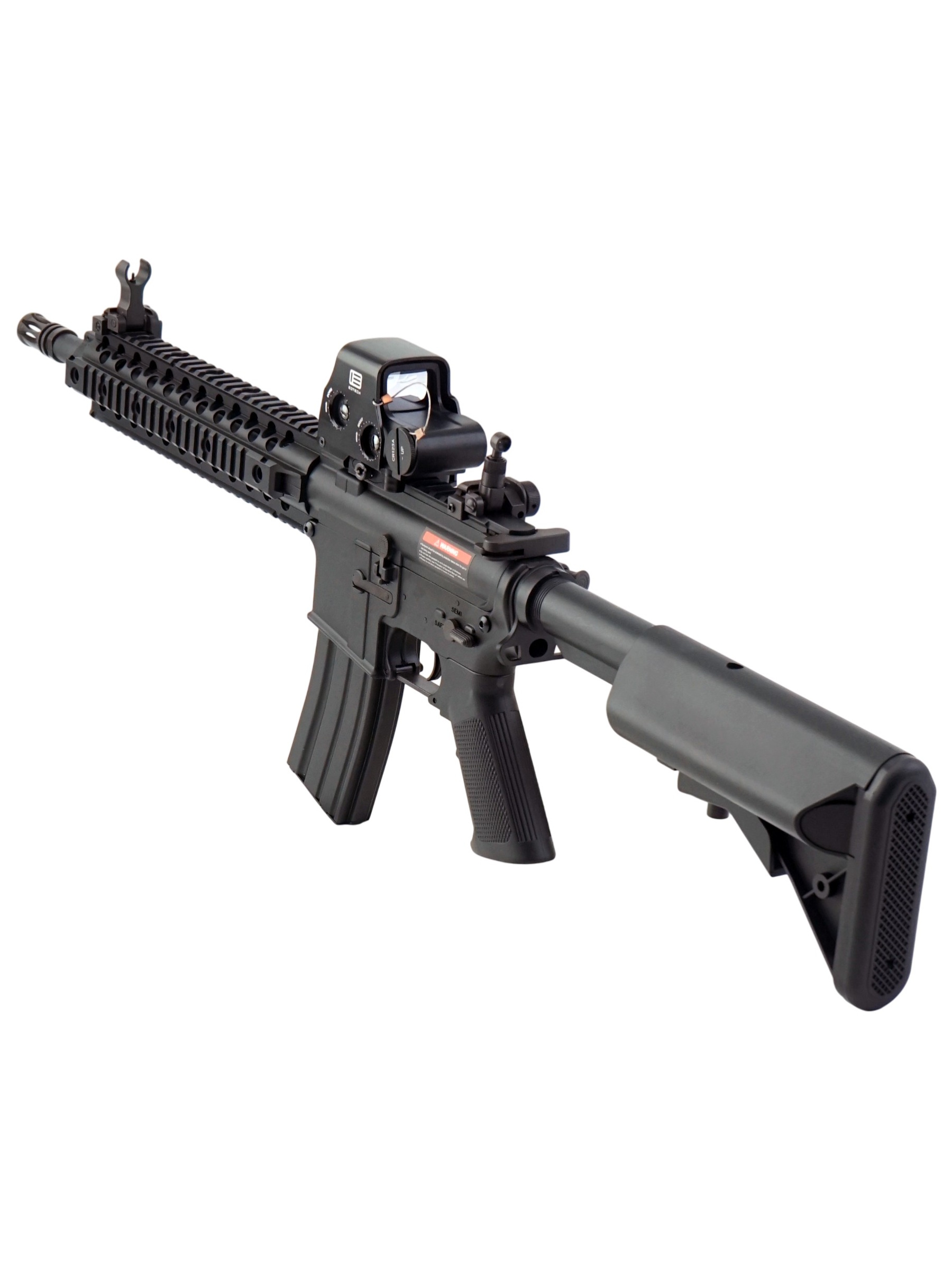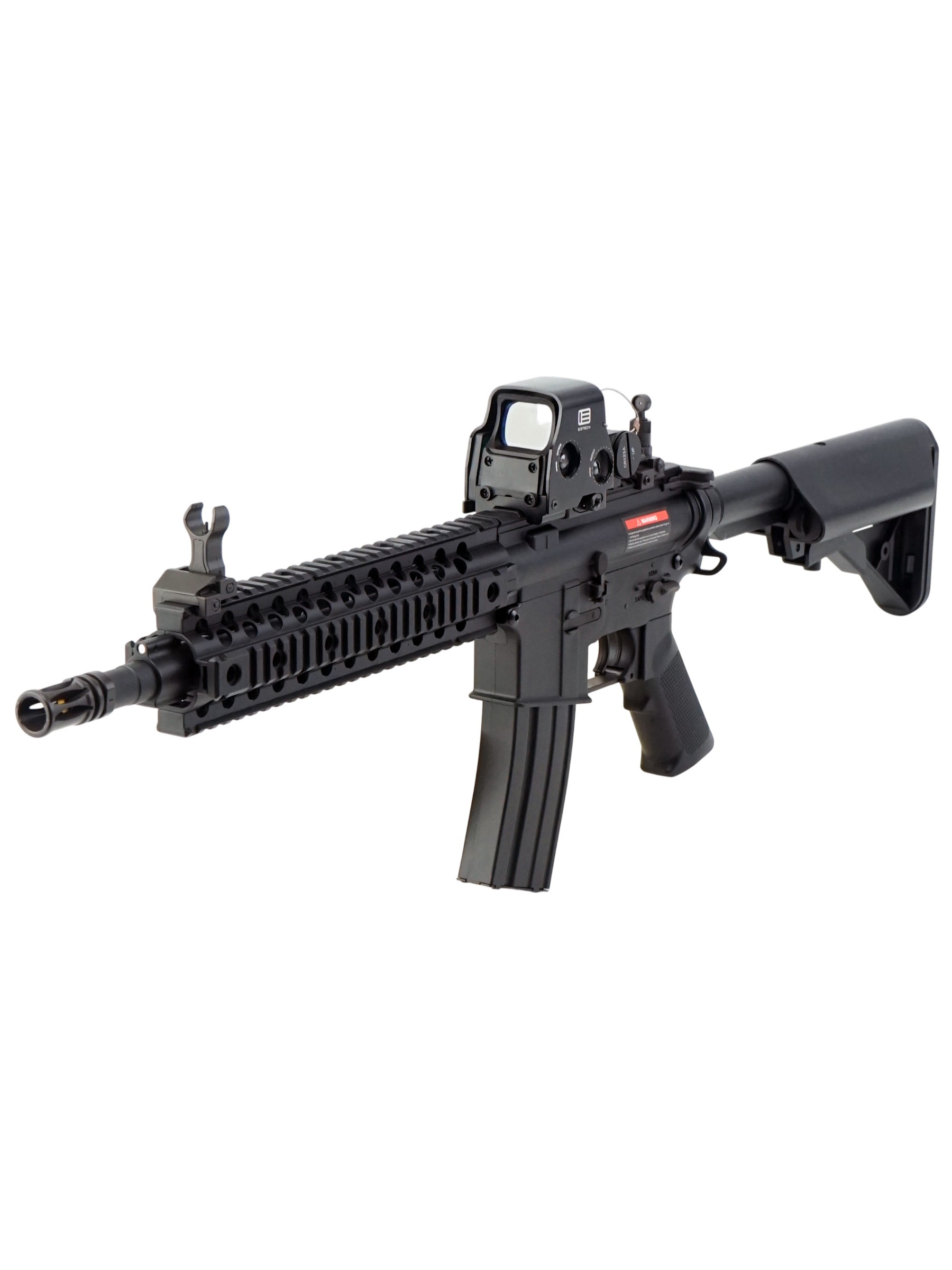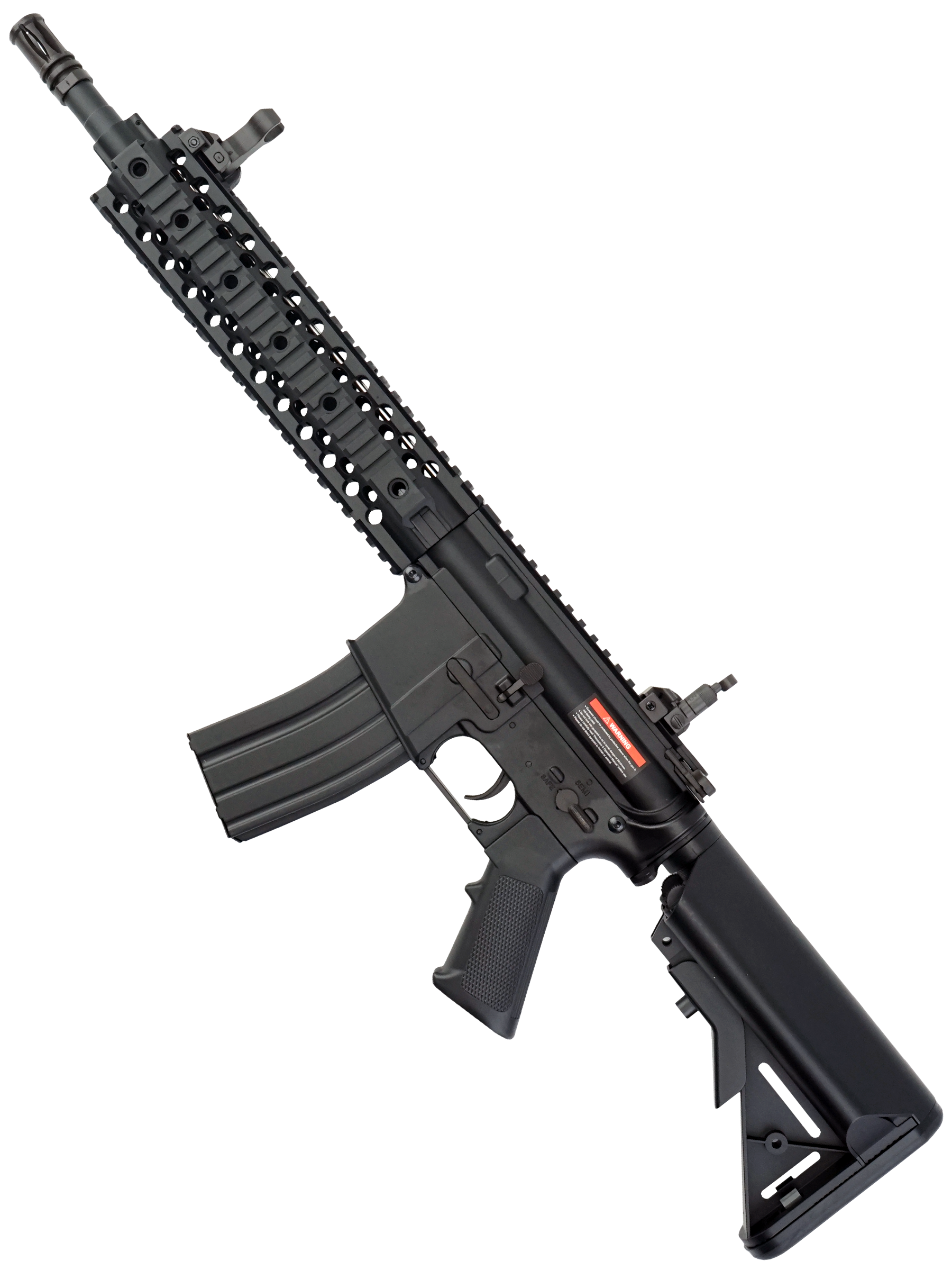 Страйкбольный карабин M4 CQB RIS от китайской компании Cyma представляет собой точную копию оригинального карабина M4. Корпус привода изготовлен из прочного ABS-пластика. Внутри карабина находится гирбокс второй версии, выполненный из алюминиевого сплава. Все компоненты гирбокса стандартные и могут быть заменены на запчасти от других производителей, что обеспечивает высокую ремонтопригодность и возможности для тюнинга. Данная модель имеет планку Weaver / Picatinny для установки прицела.