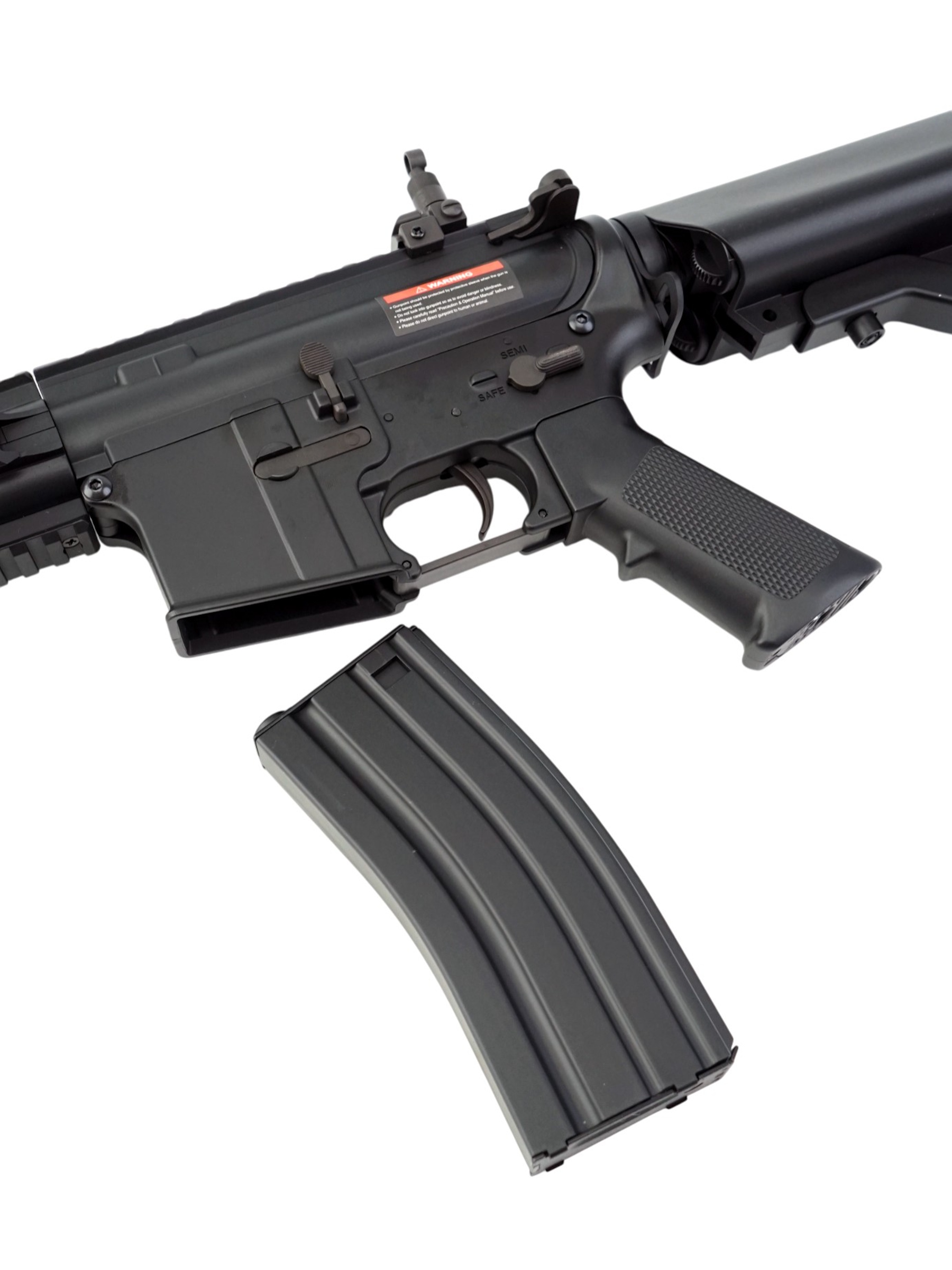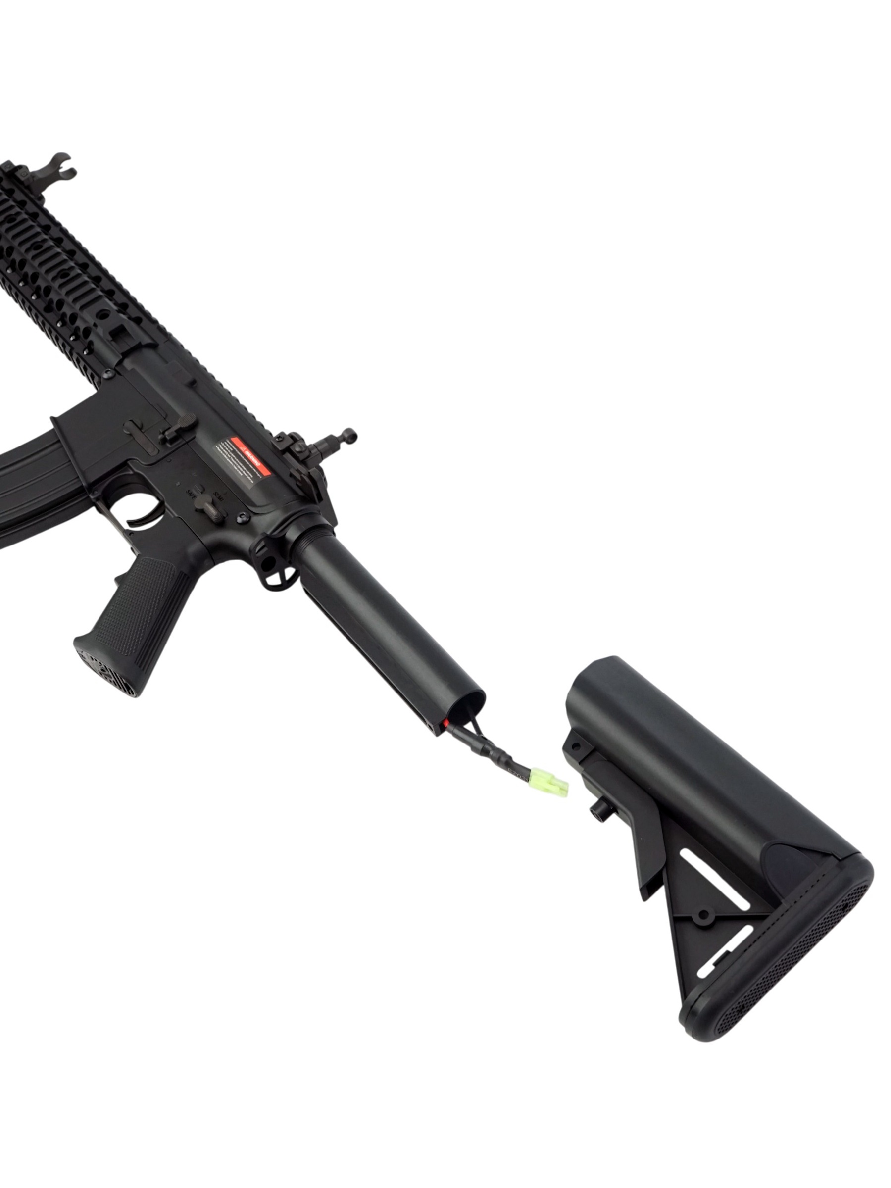 Камера хоп-апа имеет стандартный тип для карабина M4 и выполнена из прочного пластика. Электрическая часть механизма без модификаций может работать с аккумуляторами высокой мощности, например, с литий-полимерными аккумуляторами напряжением 7,4В.