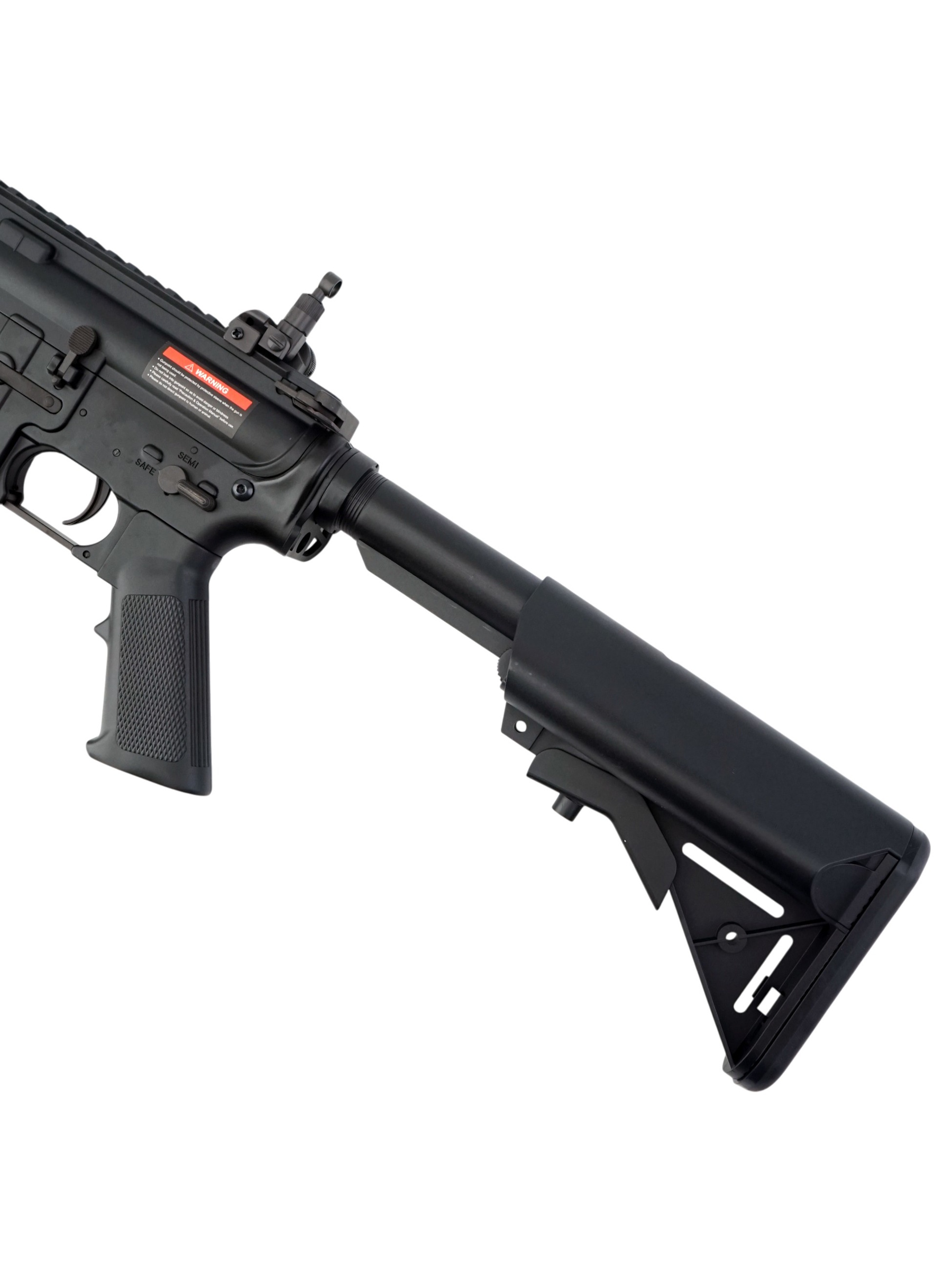 Главной особенностью автомата является телескопический приклад, регулируемый по длине, имеет 6 позиций. Также привол оснащён RIS цевьём, позволяющим установить дополнительные аксессуары, например тактическую рукоятку и фонарь. В нижней части расположена металлическая антабка для крепления ремня, так же ремень можно закрепить на прикладе или трубе-направляющей при помощи ременного обхвата. Конструкция антабок позволяет закрепить ремень как для использования с правой, так и с левой руки. Кнопка сброса магазина находится на правой стороне нижнего ресивера и позволяет одинаково удобно произвести замену магазина любой рукой.