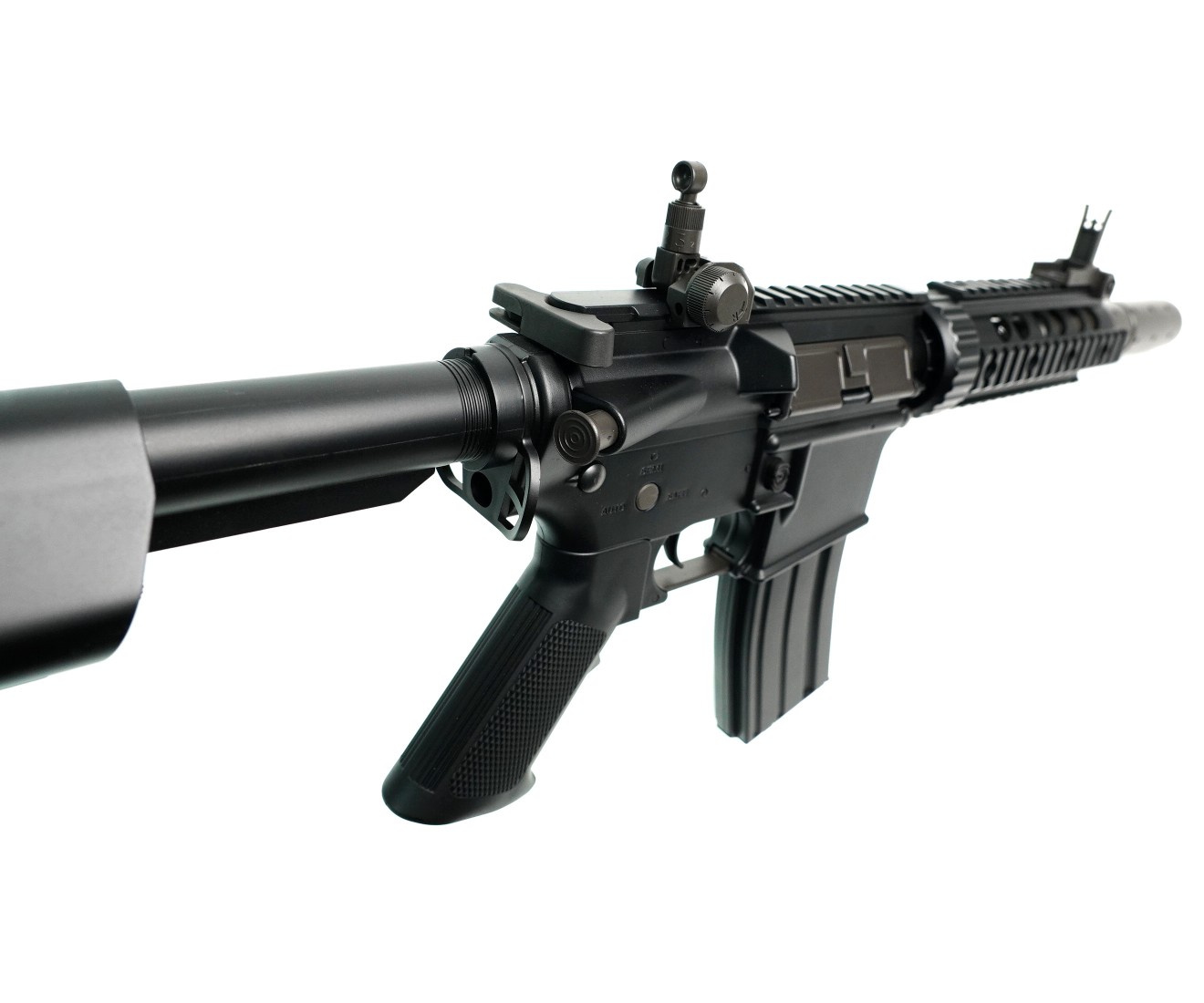 Представляем страйкбольный автомат M4 CQB с глушителем от компании Cyma. Этот автомат сочетает в себе выдающуюся производительность и высокую надежность.