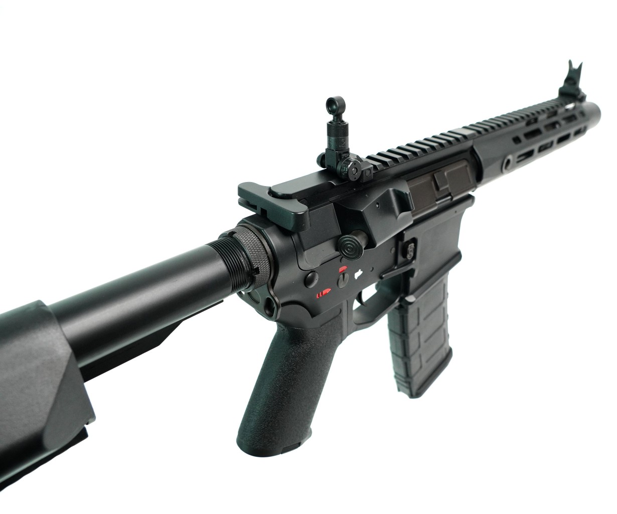 Карабин имеет двухчастную стволовую коробку, собранную из верхних и нижних ресиверов, обеспечивающую надежное соединение без люфтов. Верхний ресивер оснащен планкой Picatinny для установки оптических прицелов и коллиматоров. Карабин с мушкой и диоптрой в качестве штатных прицельных приспособлений. Он также оснащен 10-дюймовым цевьем M-LOK, предоставляющим возможность установки различных аксессуаров, таких как тактическая рукоятка и фонарь. Регулируемая длина приклада имеет 6 положений, обеспечивающих комфорт и удобство в использовании.