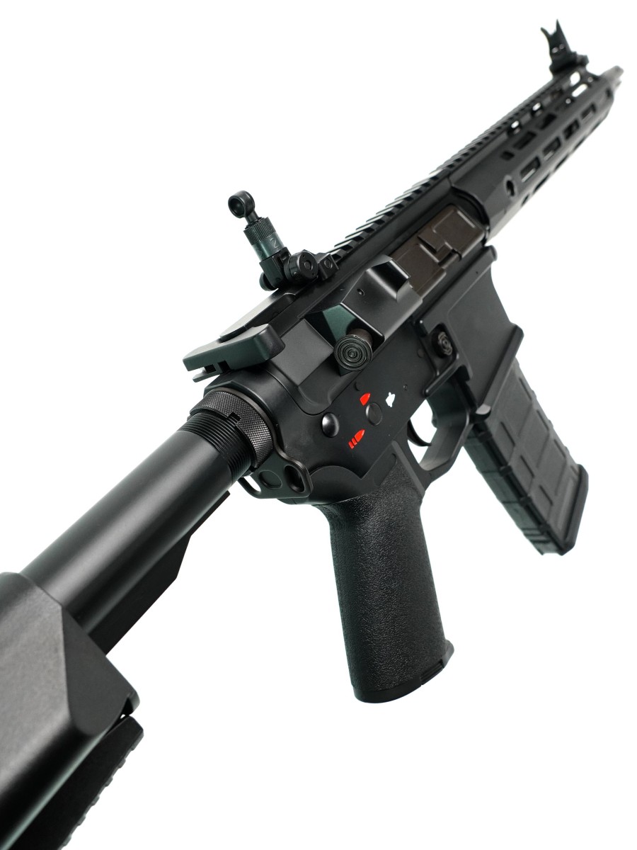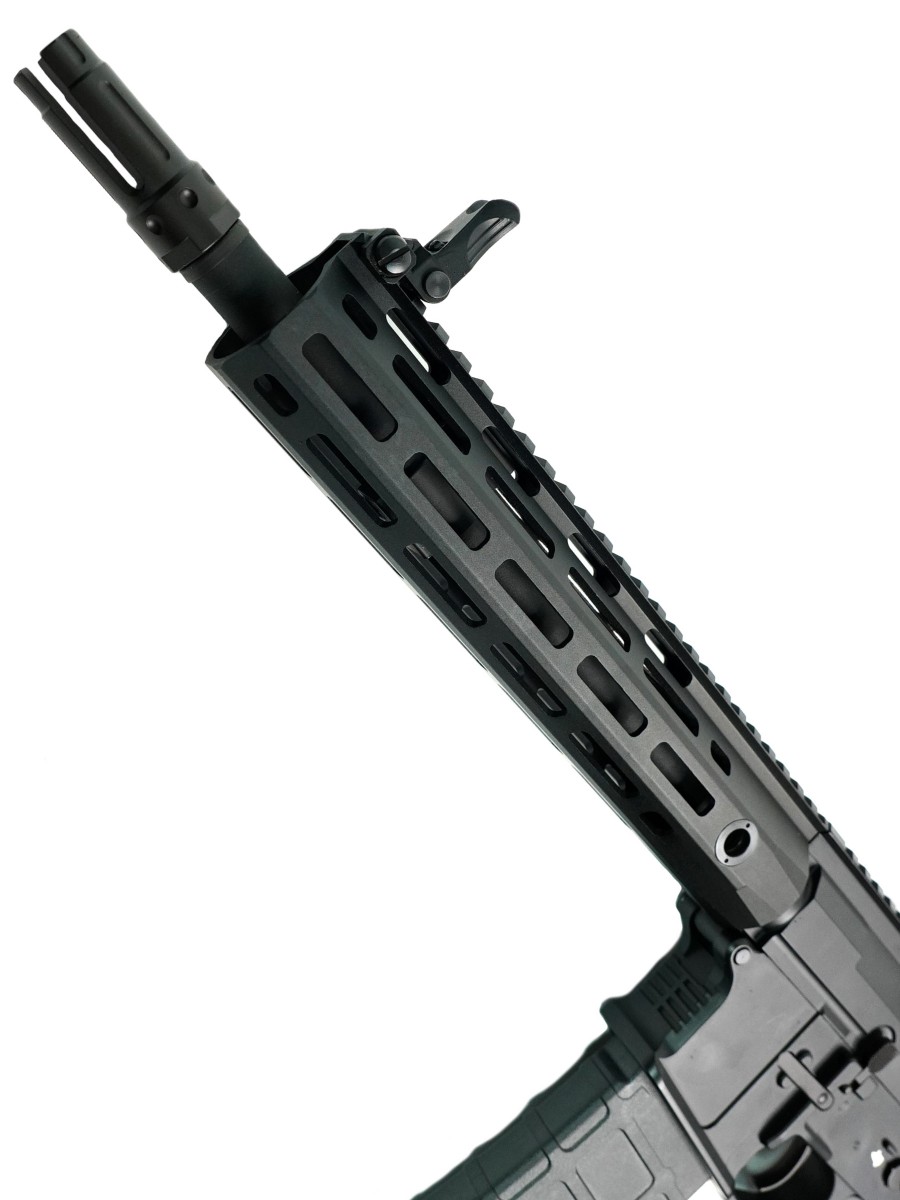 Карабин имеет двухчастную стволовую коробку, собранную из верхних и нижних ресиверов, обеспечивающую надежное соединение без люфтов. Верхний ресивер оснащен планкой Picatinny для установки оптических прицелов и коллиматоров. Карабин с мушкой и диоптрой в качестве штатных прицельных приспособлений. Он также оснащен 10-дюймовым цевьем M-LOK, предоставляющим возможность установки различных аксессуаров, таких как тактическая рукоятка и фонарь. Регулируемая длина приклада имеет 6 положений, обеспечивающих комфорт и удобство в использовании.