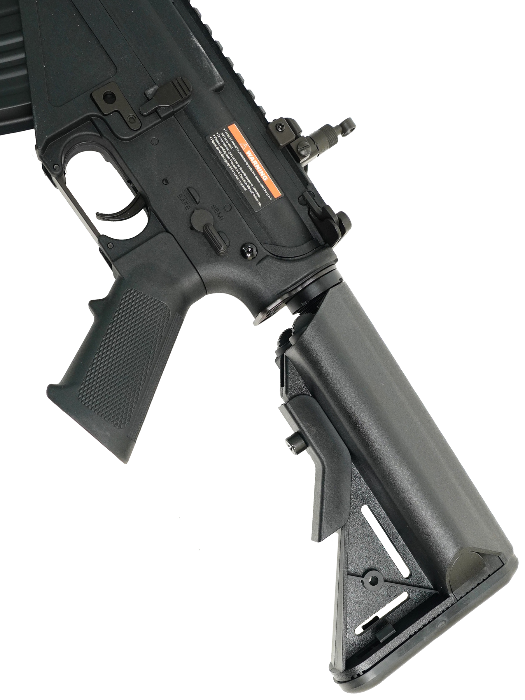 | Особенности: | телескопический приклад, RIS цевье, складной диоптрический целик, MOSFET, QBS (быстрая замена пружины) |