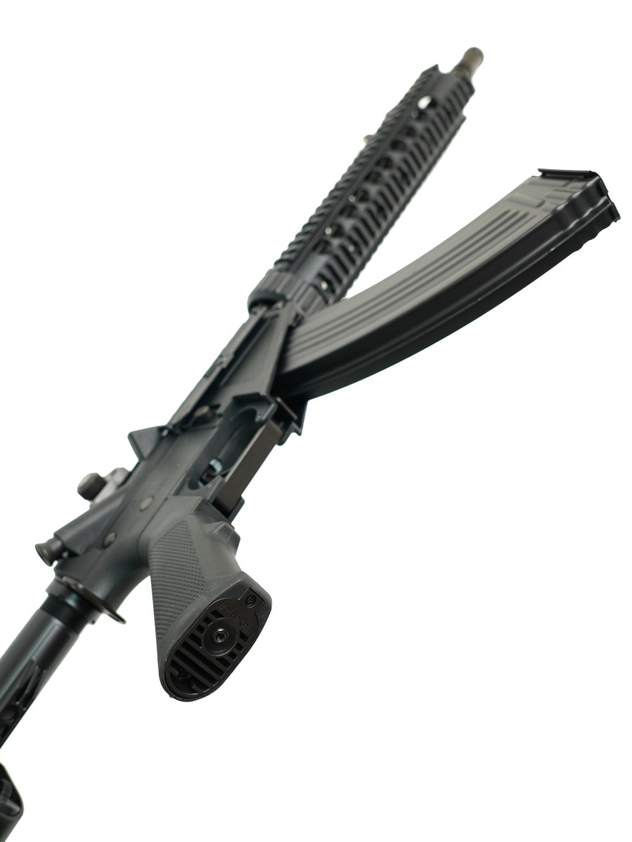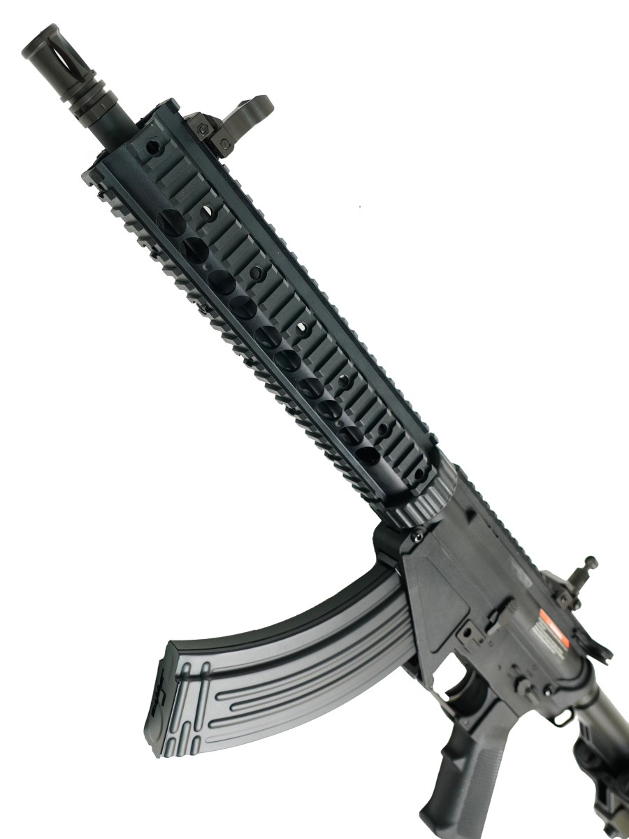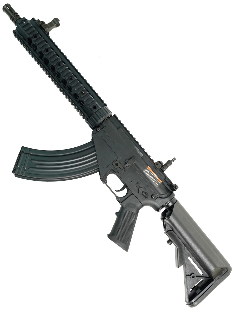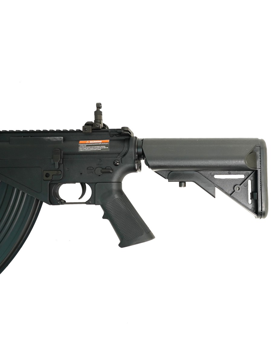 Данная модель является репликой штурмовой винтовки KAC SR-47 (США), произведенной компанией Cyma (Китай). Эта модель сочетает в себе уникальный дизайн, передовые технологии и отличные характеристики, что делает ее отличным выбором для опытных страйкболистов, стремящихся к максимальной эффективности на поле боя.