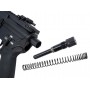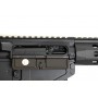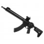 Внешний корпус привод выполнен из металлического сплава, приклад и пистолетная рукоятка – из пластика ABS. Привод отличается реализацией Keymod цевья с планкой Вивера по всей длине – для установки обвеса и оптики. Приклад телескопический, с возможностью его настройки с учетом длины рук стрелка.
