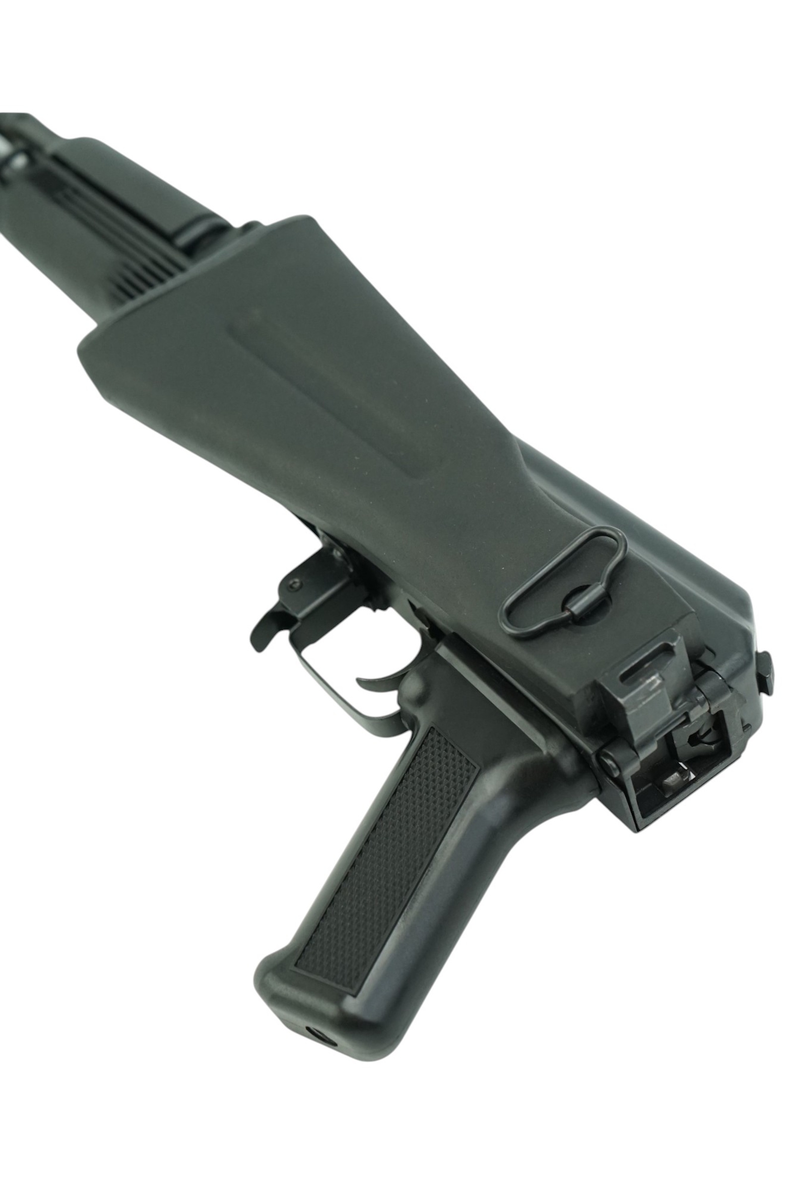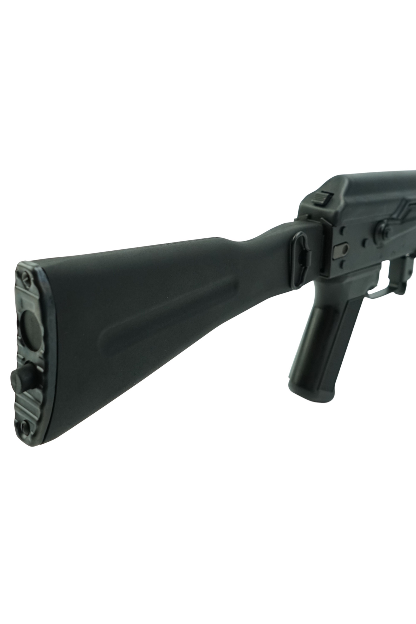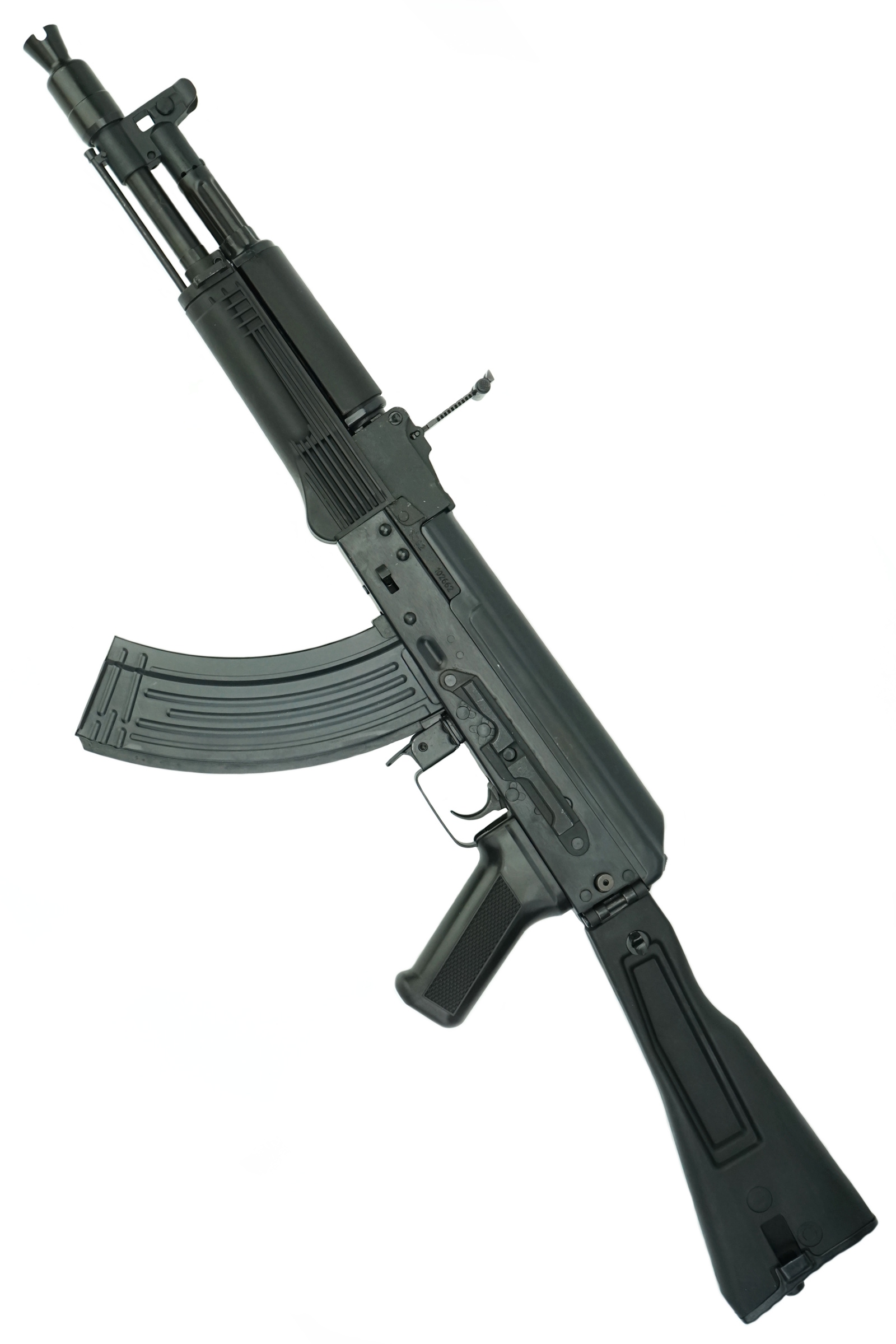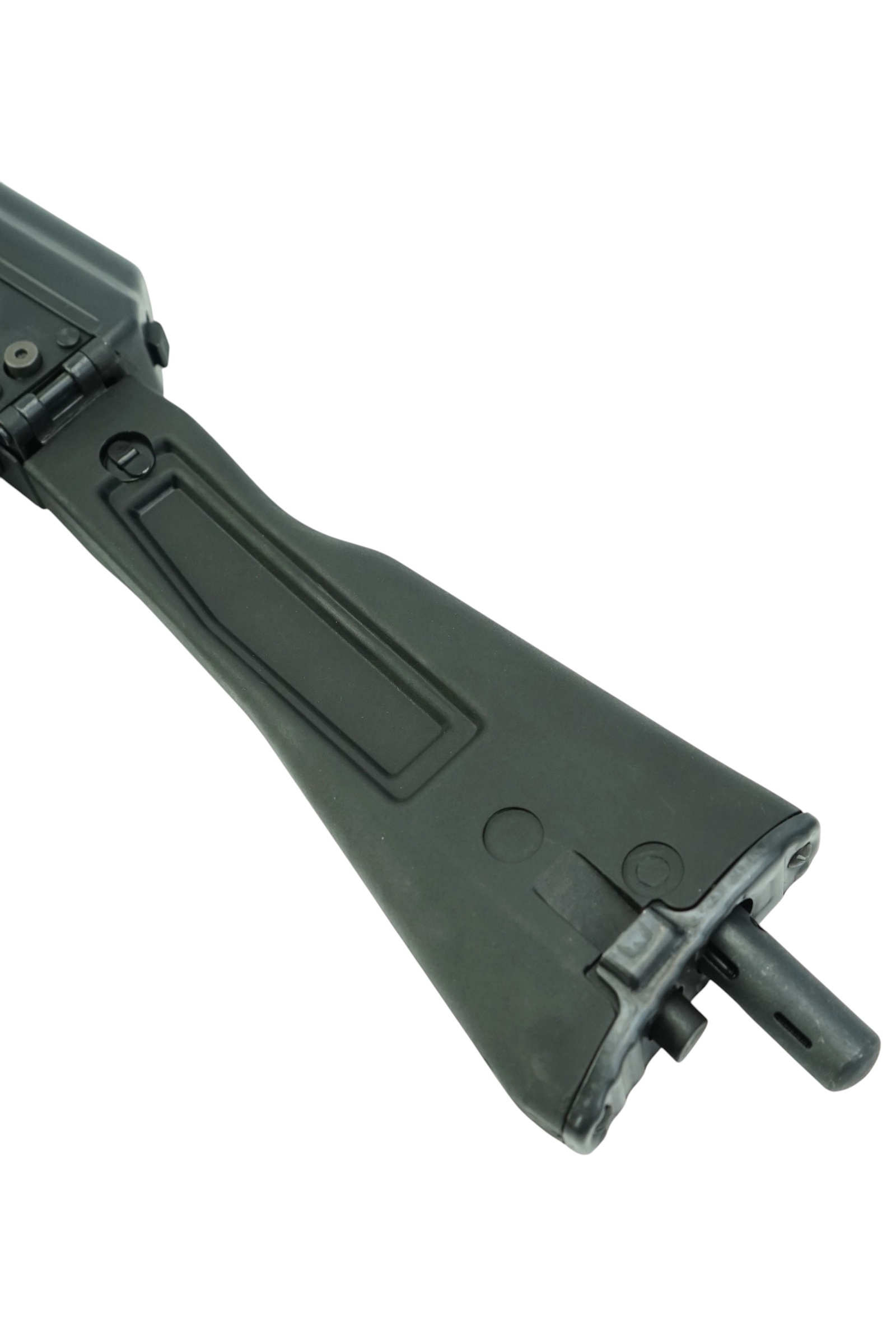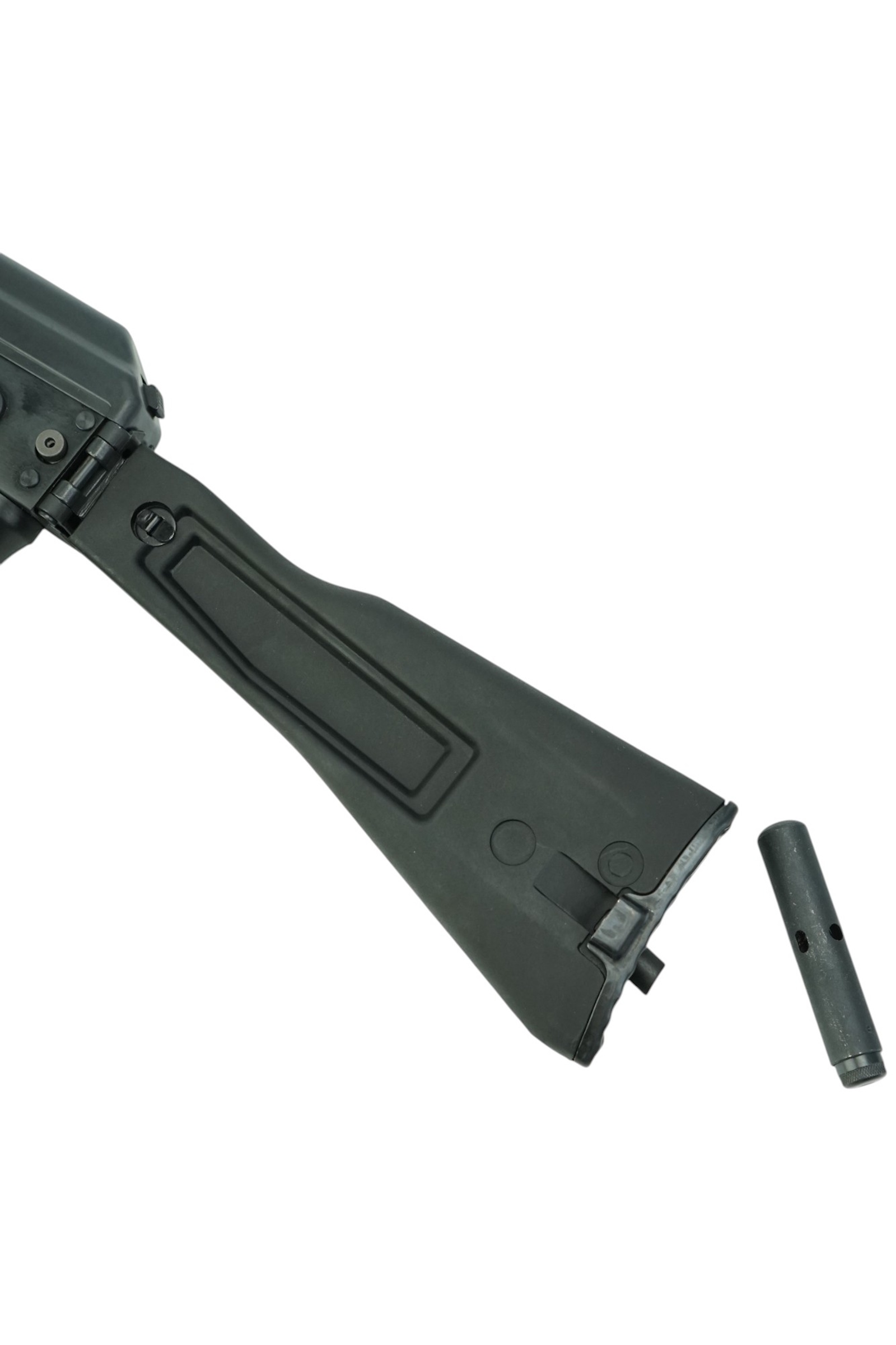 Резиновый затыльник принимает на себя часть силы отдачи. Конструкция приклада складная, за счет чего автомат компактен и удобен в эксплуатации и транспортировке. Вес автомат 3,45 кг, его длина 83 см (с разложенным прикладом). Комплект поставки включает магазин, масленку и пенал, а также документы.