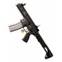 На верхнем ресивере и верхней поверхности цевья расположена планка Пикатинни, штатно на ней установлены складные съемные прицельные приспособления: диоптр, с возможностью регулировки по высоте и горизонту, и регулируемая по высоте мушка. На боковых поверхностях цевья имеются пазы интерфейса M-Lok для крепления дополнительных аксессуаров. Приклад - телескопический с двумя фиксированными положениями. Хоп-ап - регулируемый. В комплекте с приводом поставляется бункерный магазин вместимостью 450 шаров.