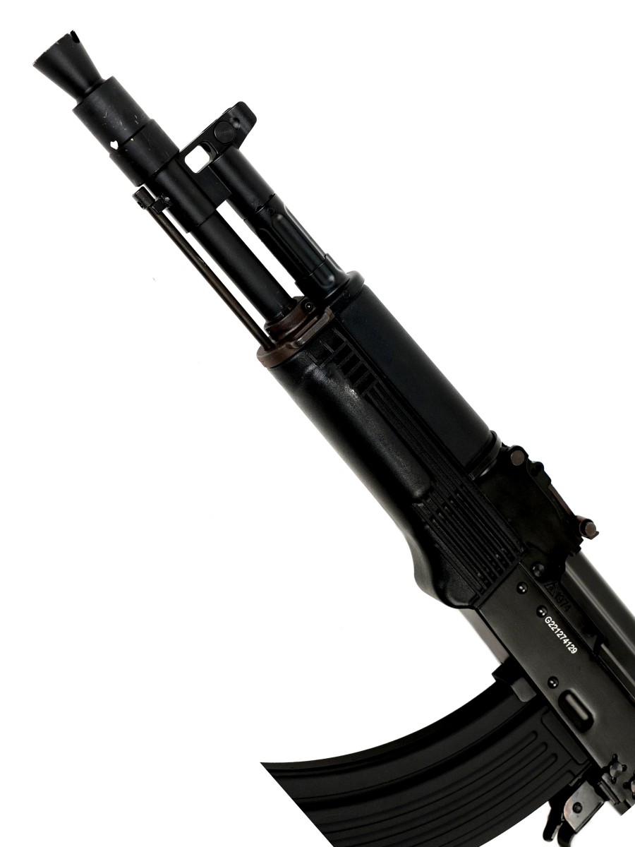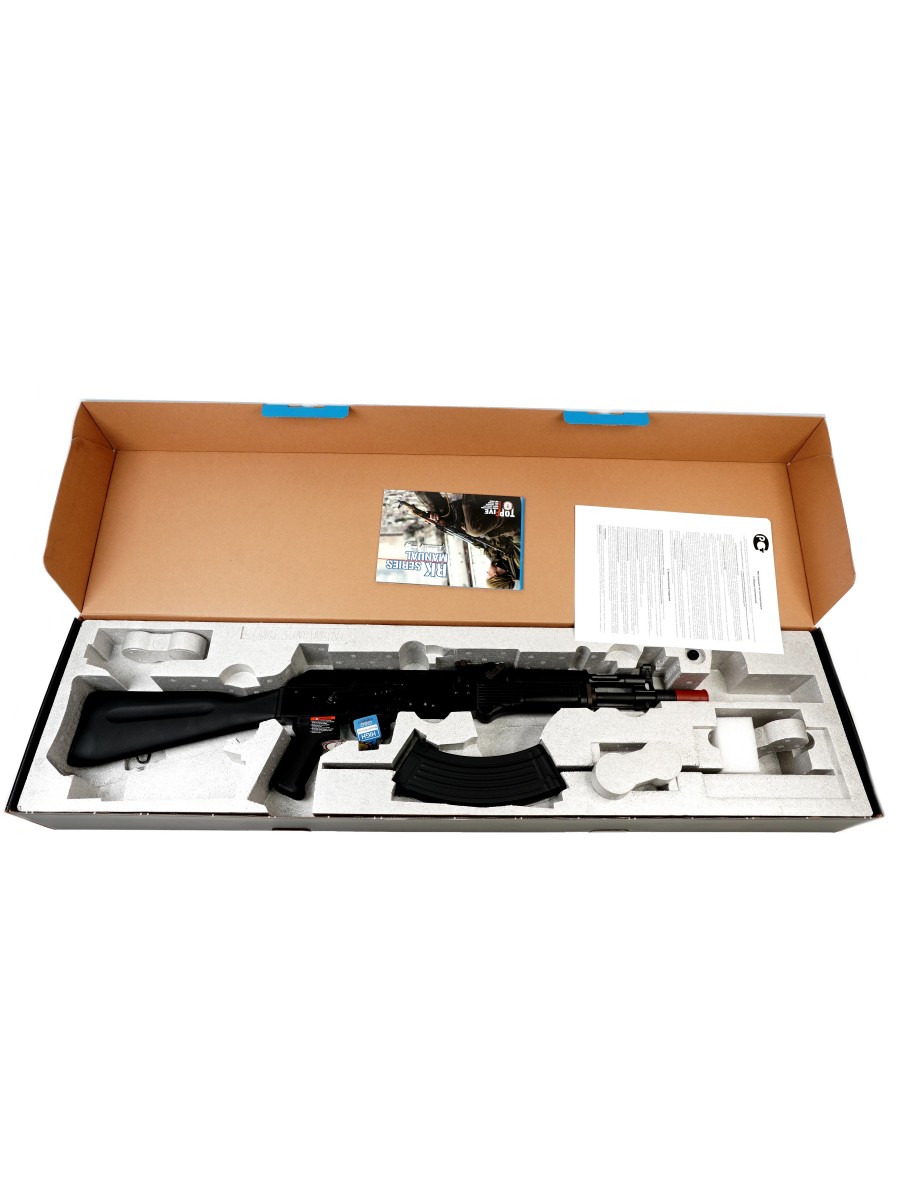Модель RK104 от тайваньской фирмы G&G Armament - это автоматический электропневматический привод (AEG), который относится к страйкбольной серии AK, созданной по образцу автомата Калашникова. Предлагаемая модель внешне копирует одно из исполнений автомата АК-104 (модель подобная АК-103, но со стволом укороченной длины). В приводе используется гирбокс версии 3, реализованы режимы одиночного и автоматического огня, а также режим предохранителя. Хоп-ап - регулируемый.