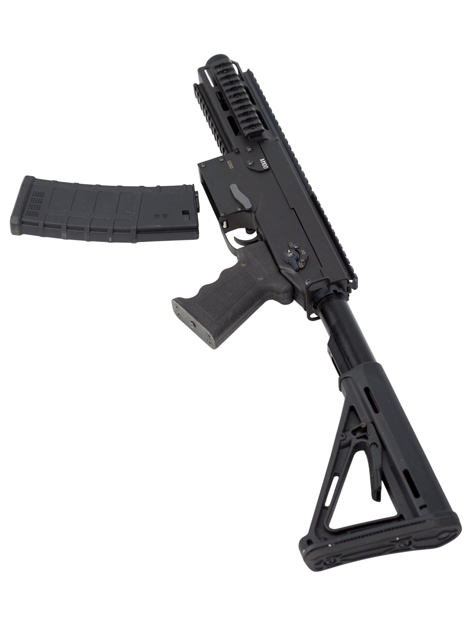 Цевьё с M-lock интерфейсом и RIS-планками с четырех сторон. У приводов на внешнем стволе имеется резьба М14- для установки трассерных насадок. Внутренние размеры цевья позволяют установить насадки диаметром до 33 мм (например подходят как стандартные Acetech Brighter, так и с имитацией вспышки Acetech Blaster).