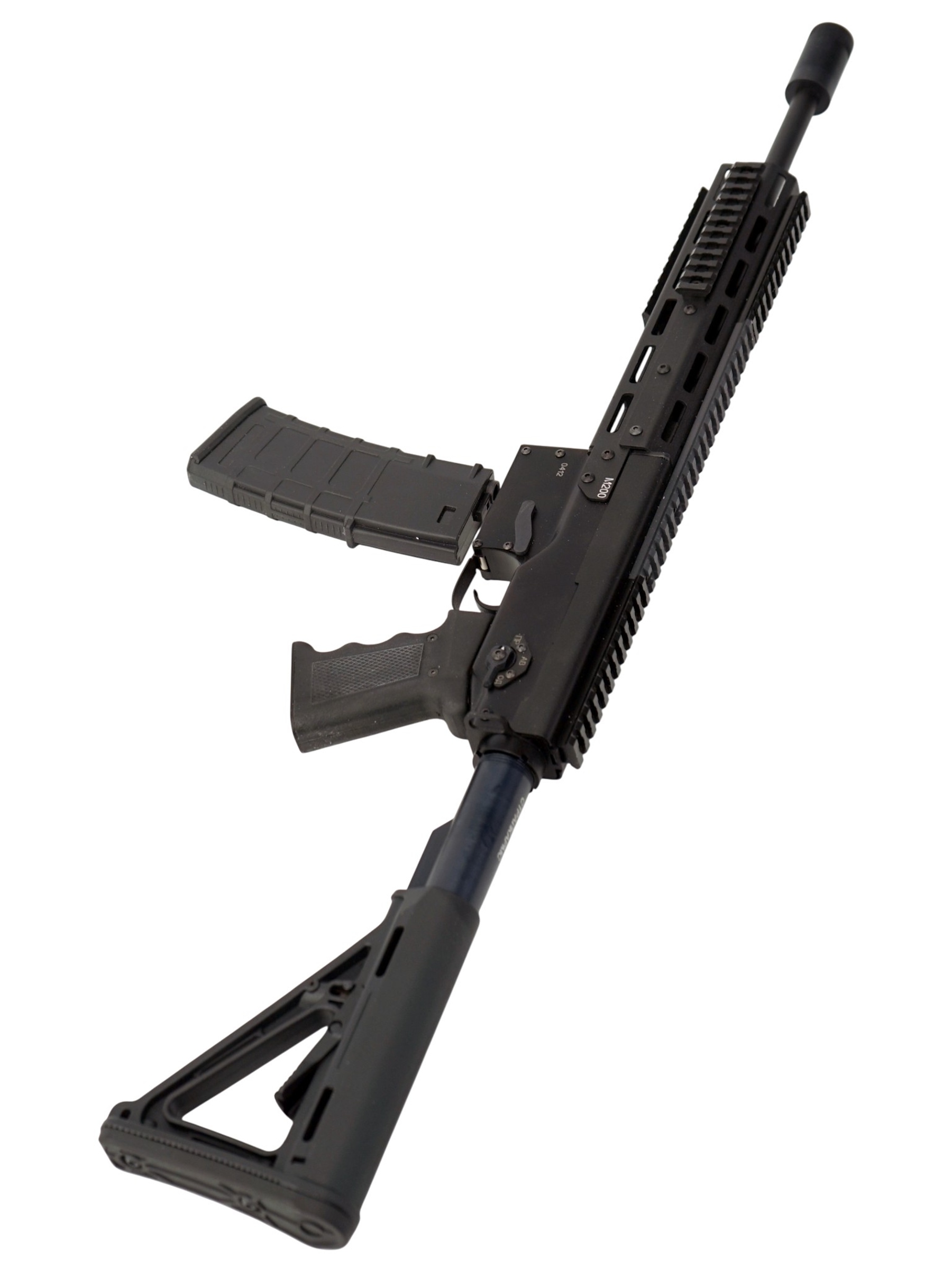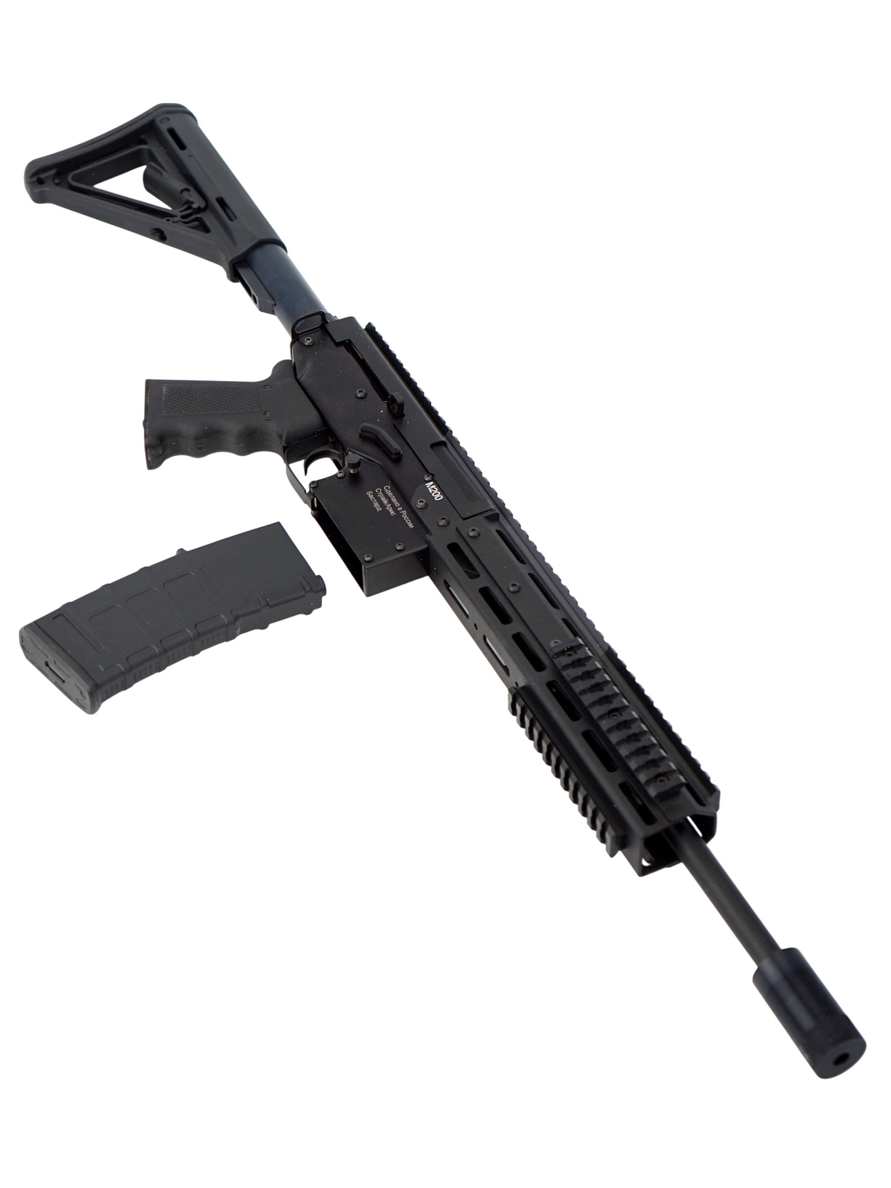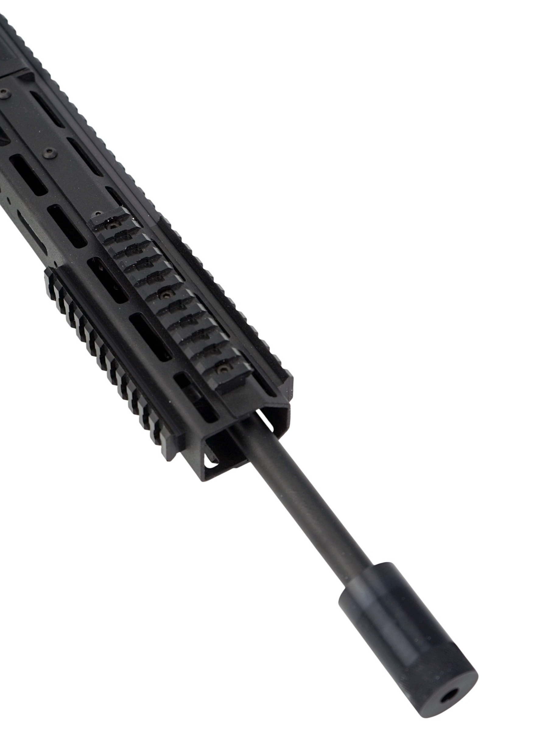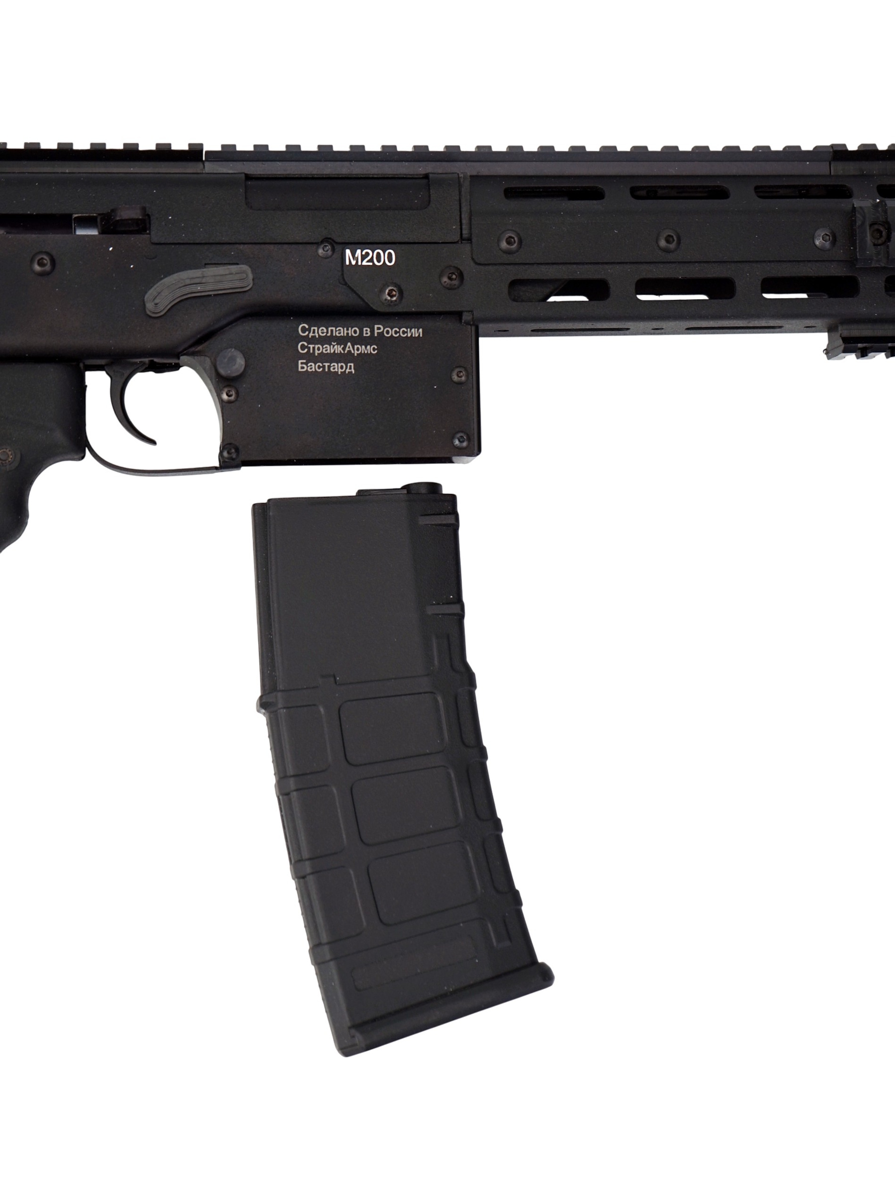 Цевьё с M-lock интерфейсом и RIS-планками с четырёх сторон. У приводов на внешнем стволе имеется резьба М14- для установки трассерных насадок. Внутренние размеры цевья позволяют установить насадки диаметром до 33 мм (например подходят как стандартные Acetech Brighter, так и с имитацией вспышки Acetech Blaster).