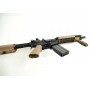 Автомат отличается безупречным качеством сборки, люфтов нет. Благодаря телескопическому прикладу это оружие настраивается с максимальным комфортом под каждого стрелка. Имеется ris-планка для установки оптического обвеса, а также планки для дополнительного обвеса на цевье с трех его сторон. Изготовлен привод в черном цвете преимущественно из качественного металлического сплава, приклад с тактической рукояткой из ABS-пластика. Вес привода 2,84 кг, длина – 77,7 см.