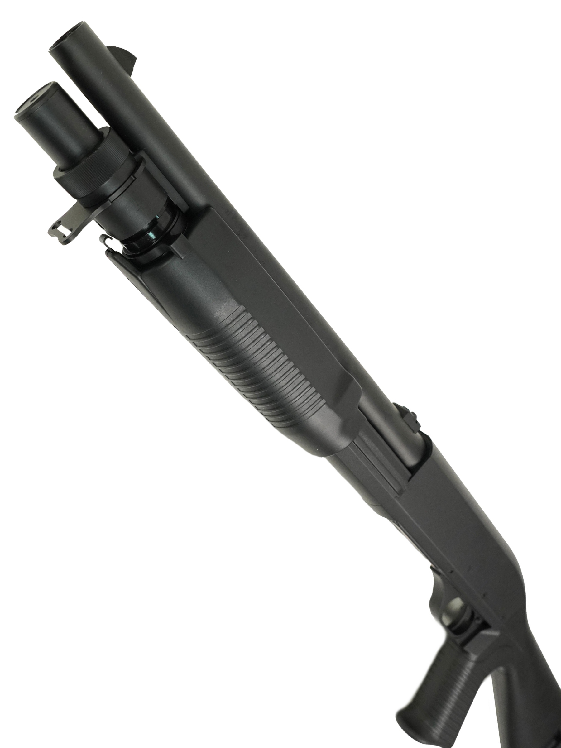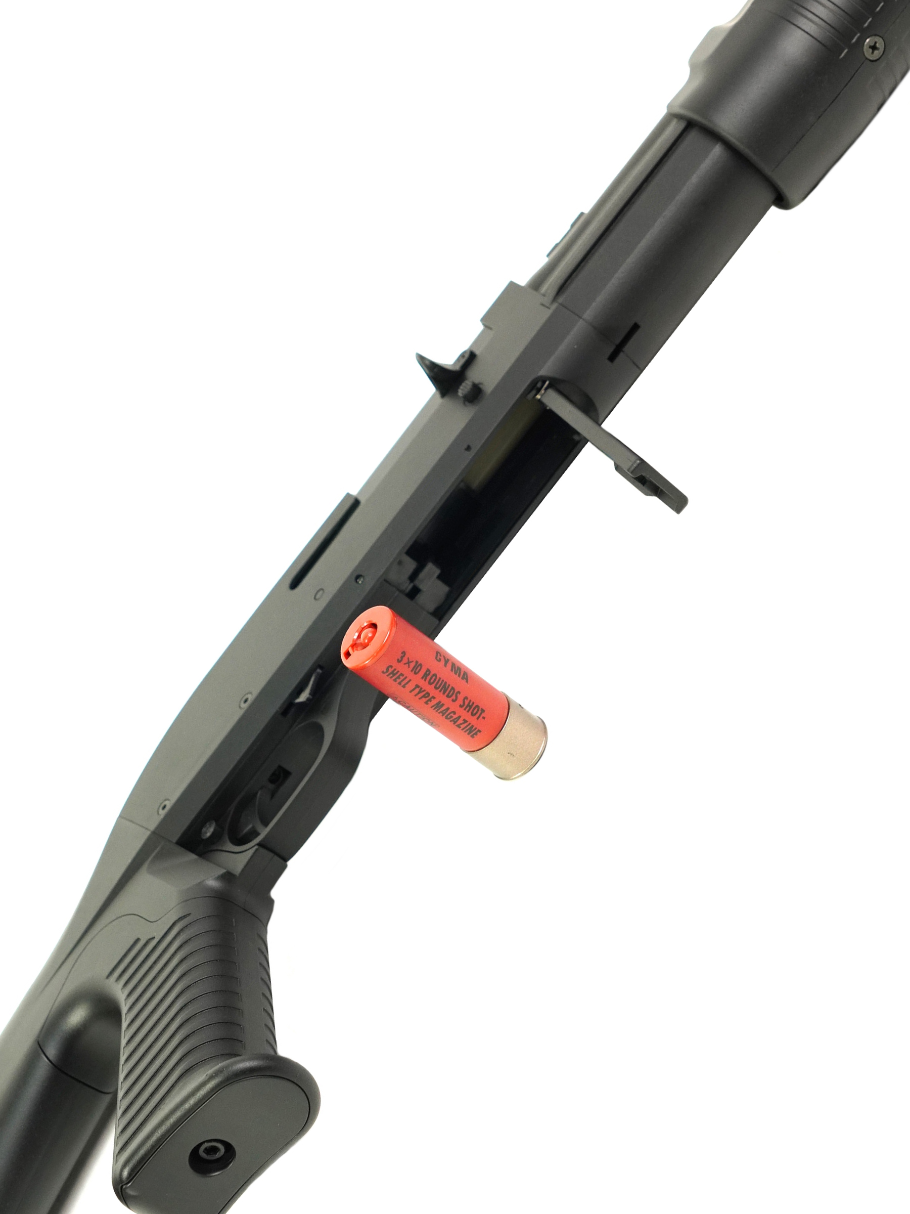 Эта модель не оснащена системе blowback и планкой Weaver / Picatinny, что делает её максимально легкой и максимально подходящей для сценарных игр, где важна скорость и удобство. В комплект входит сам дробовик, один шелл, лоадер, шомпол, шарики и инструкция — всё, что нужно для незабываемых боевых приключений.