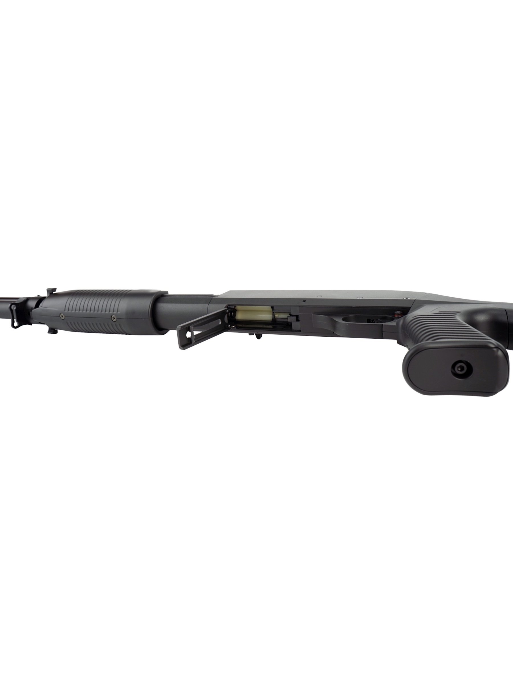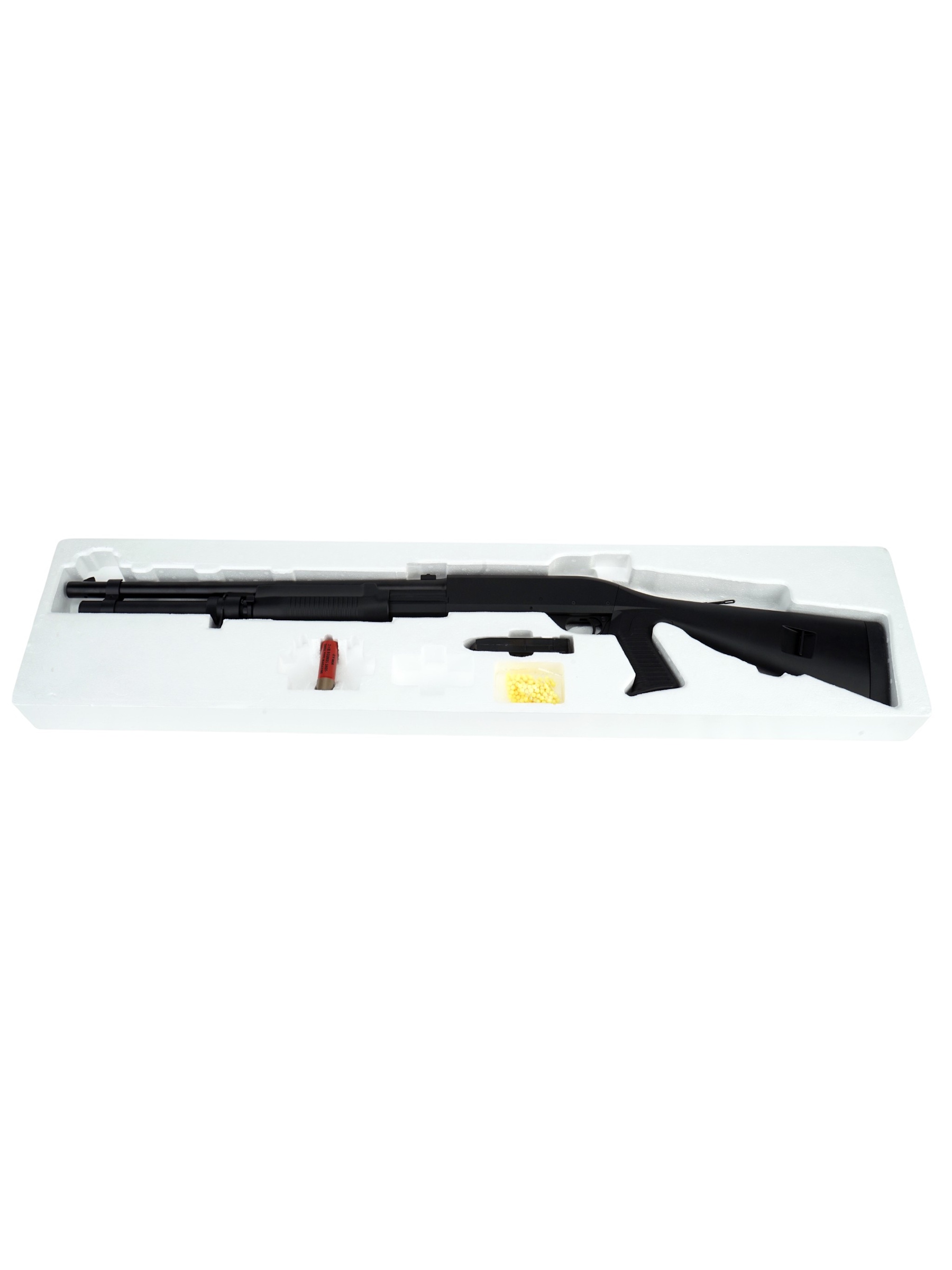 Несмотря на отсутствие планки Weaver / Picatinny, данная модель идеально подходит для широкого спектра страйкбольных задач, от ближнего боя до операций на средних дистанциях. В комплект поставки входят: дробовик, один шелл, лоадер для быстрой зарядки, шомпол для чистки, шарики и инструкция по эксплуатации.