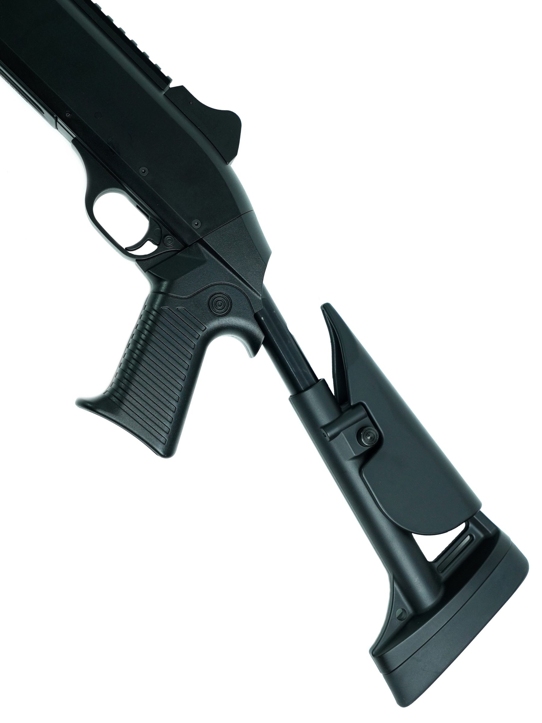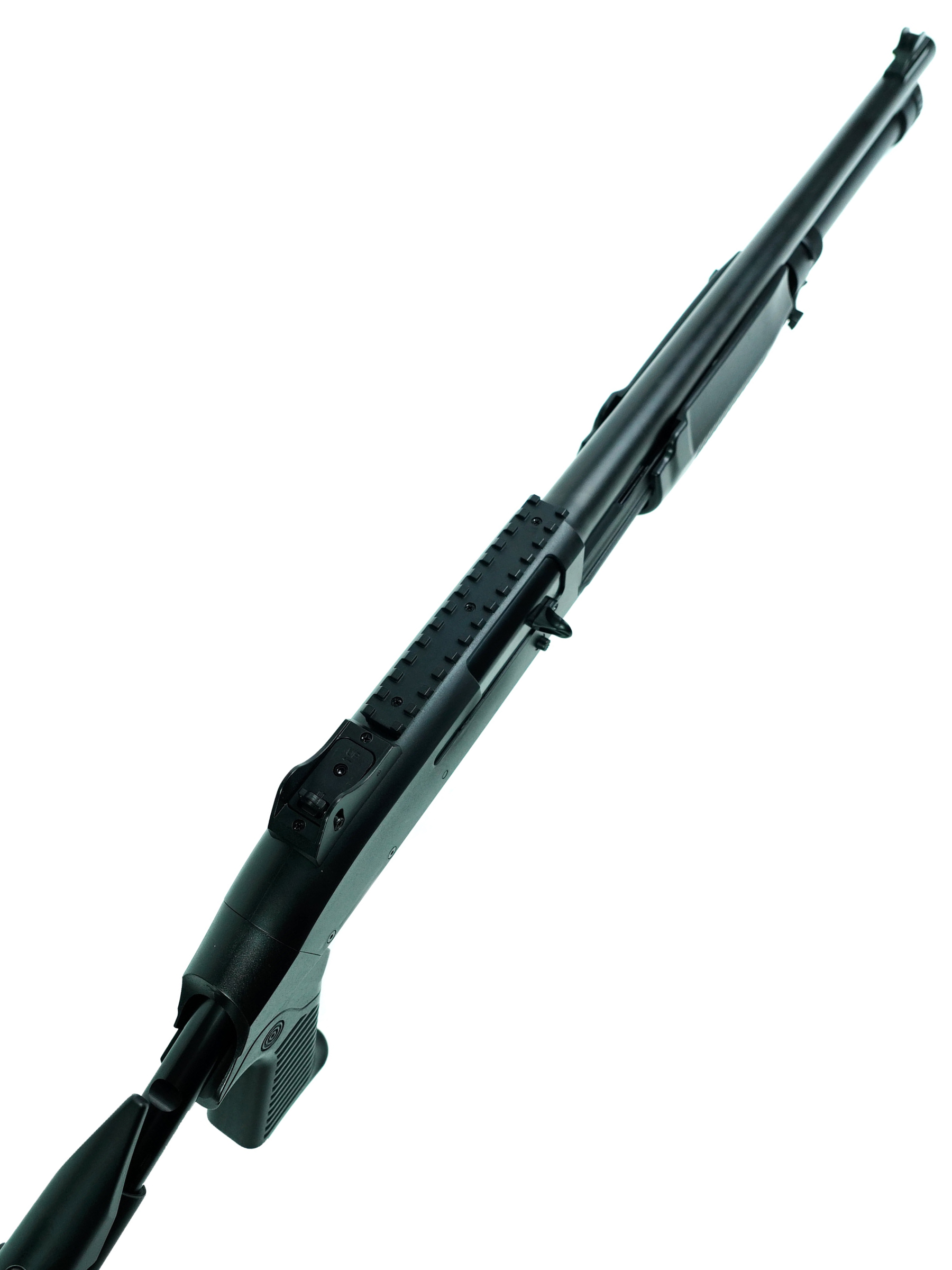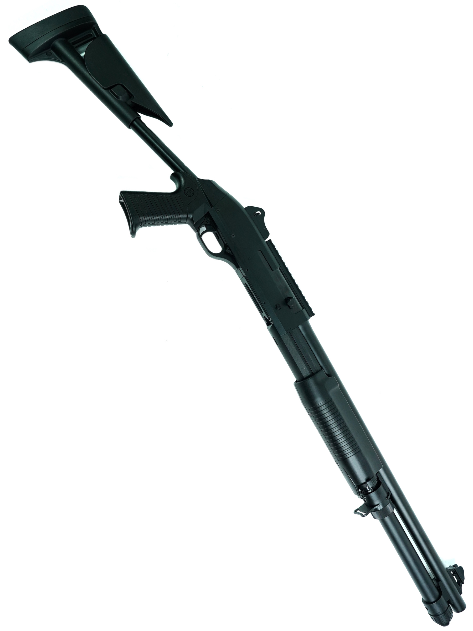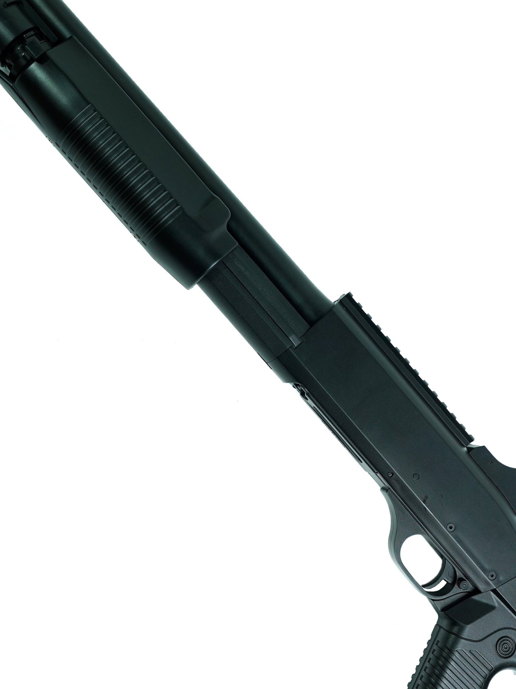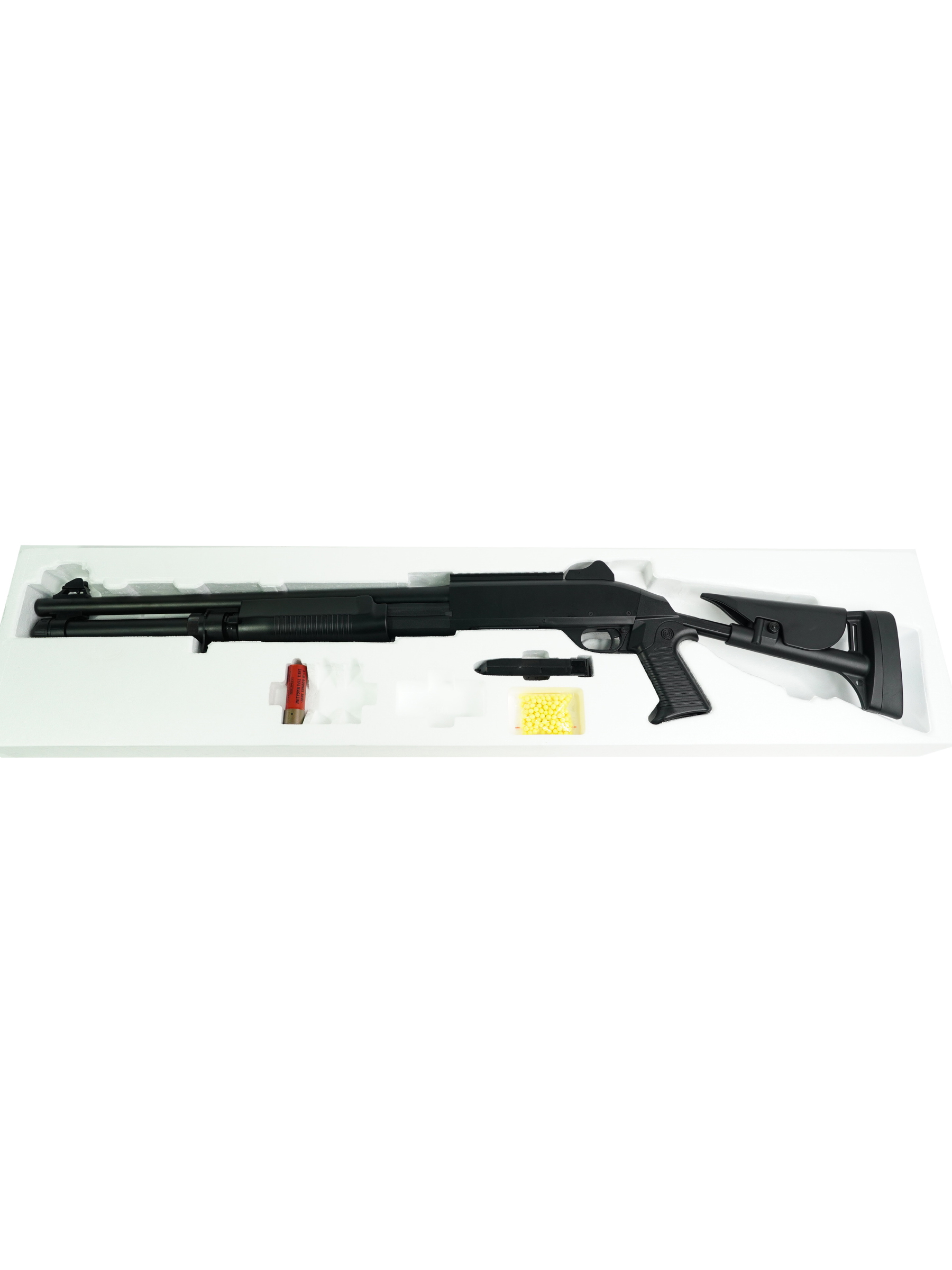 Модель оснащена планкой Weaver / Picatinny, что позволяет установить дополнительные прицелы или приспособления, подчеркивая её боевой характер и расширяющую функциональность. В комплект входит сам дробовик, один шелл, лоадер, шомпол, шарики и инструкция — всё для быстрого начала использования и наслаждения игрой.