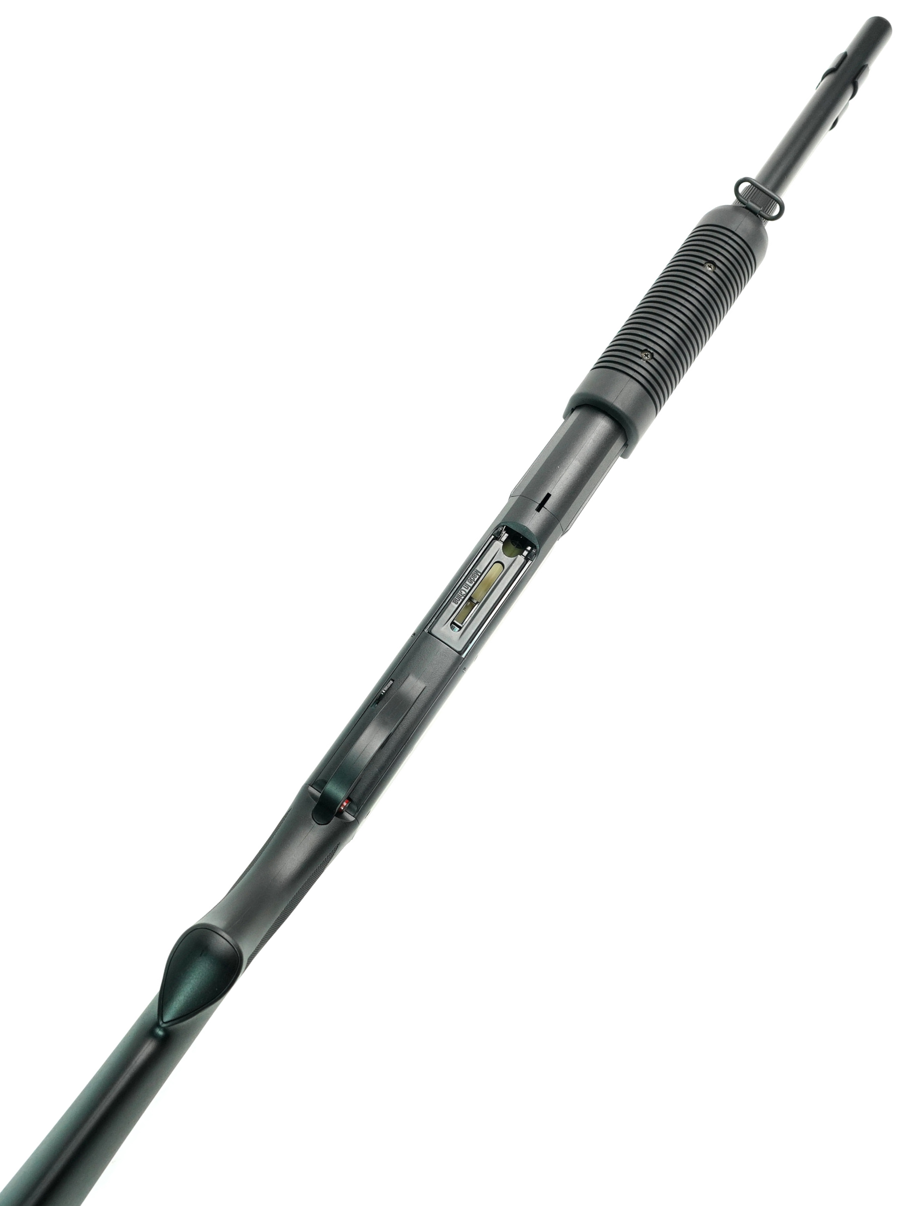 Длина этого варианта с прикладом делает его особенно удобным в руке и подходит для тех, кто ценит длительные и комфортные бои. Вес около 2 кг придает ему хорошую сбалансированность, сохраняя при этом легкость для продолжительных игр. Работает этот дробовик по пружинной системе с ручным взведением, что делает его просто и надежно в использовании. Его дульная энергия равна 1,7 Дж, а скорость выстрела достигает 90 м/с, что обеспечивает стабильную и эффективную стрельбу.