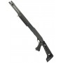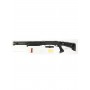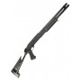 Корпус дробовика выполнен из прочного ABS-пластика, а внутренние элементы – из алюминиевого сплава, обеспечивая надежность и долговечность конструкции. Еще одной особенностью является телескопический приклад, позволяющий регулировать длину дробовика (1090 / 970 мм) для максимального комфорта и удобства использования. Длина ствола составляет 300 мм.