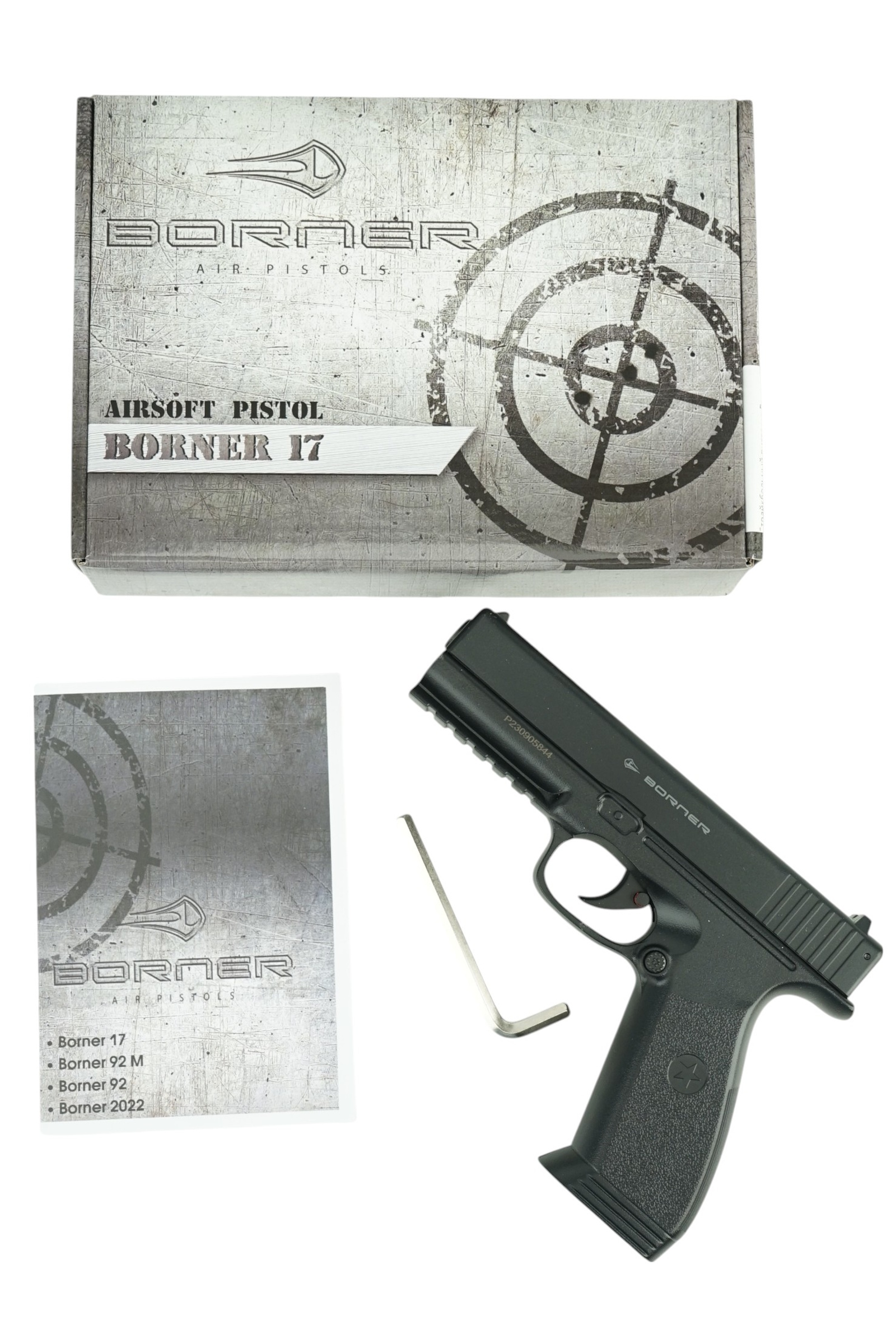 Страйкбольный пистолет Borner 17 внешне копирует одну из модификаций, созданных на базе пистолета Glock 17. В качестве источника энергии пистолет использует 12-граммовые баллончики с углекислым газом (CO₂). Ударно-спусковой механизм – двойного действия.