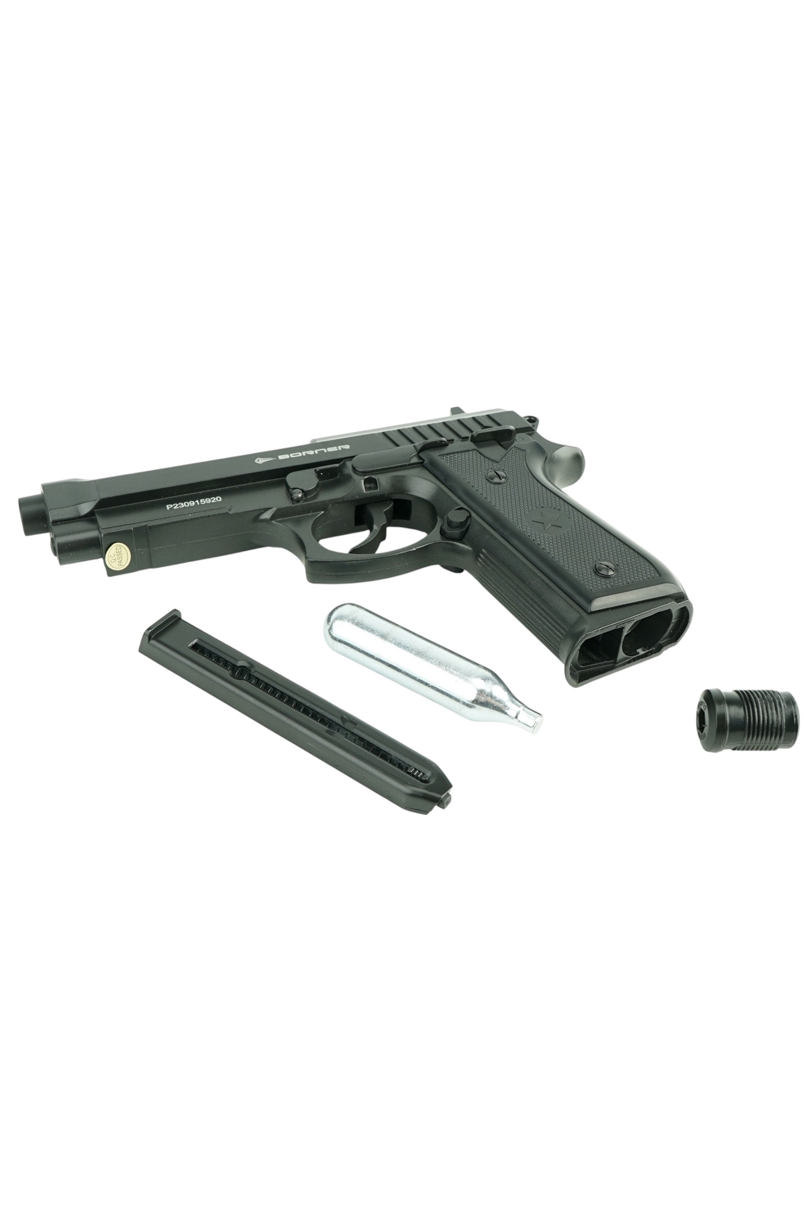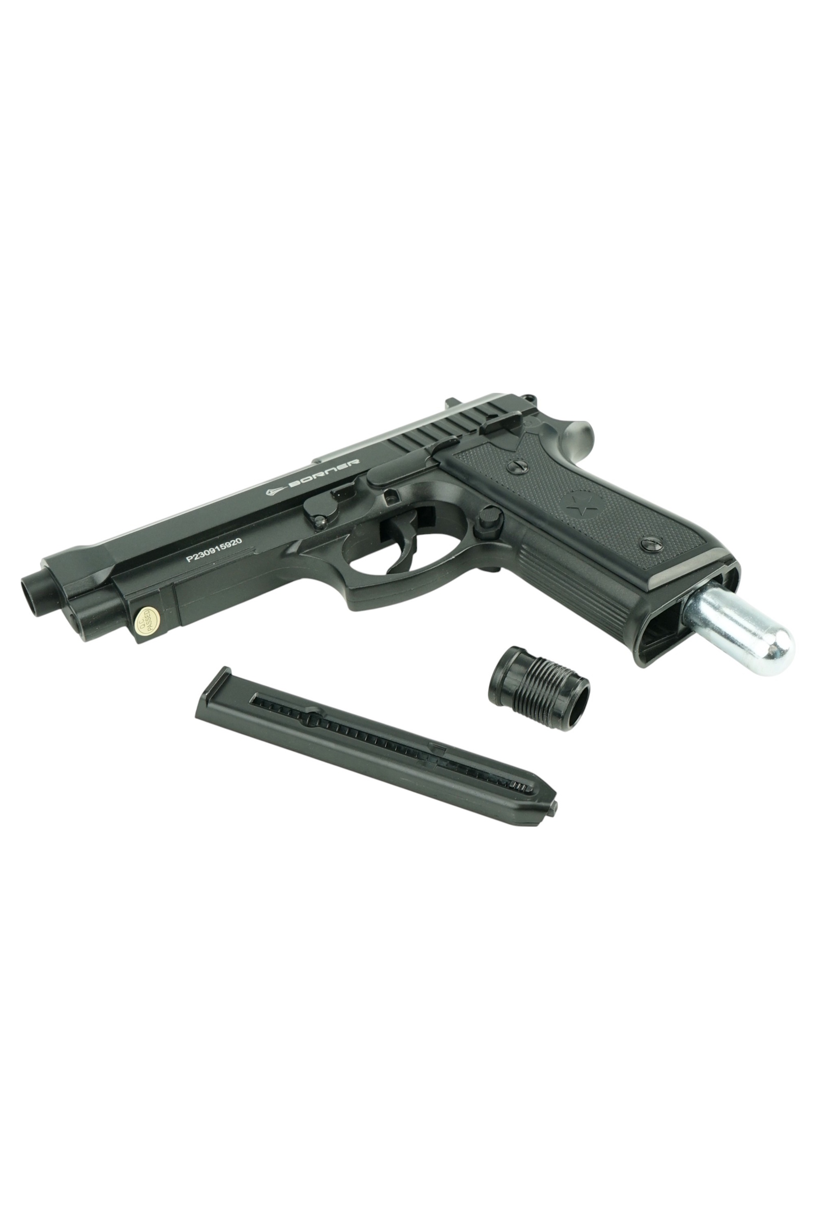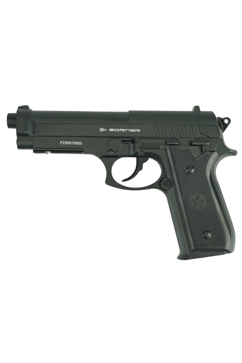 Страйкбольный пистолет Borner 92М копирует одну из модификаций, созданных на базе модели Beretta 92. В исполнении М затвор и рамка пистолета выполнены из металла. В качестве источника энергии используются 12-граммовые баллончики с углекислым газом. Ударно-спусковой механизм – только двойного действия.