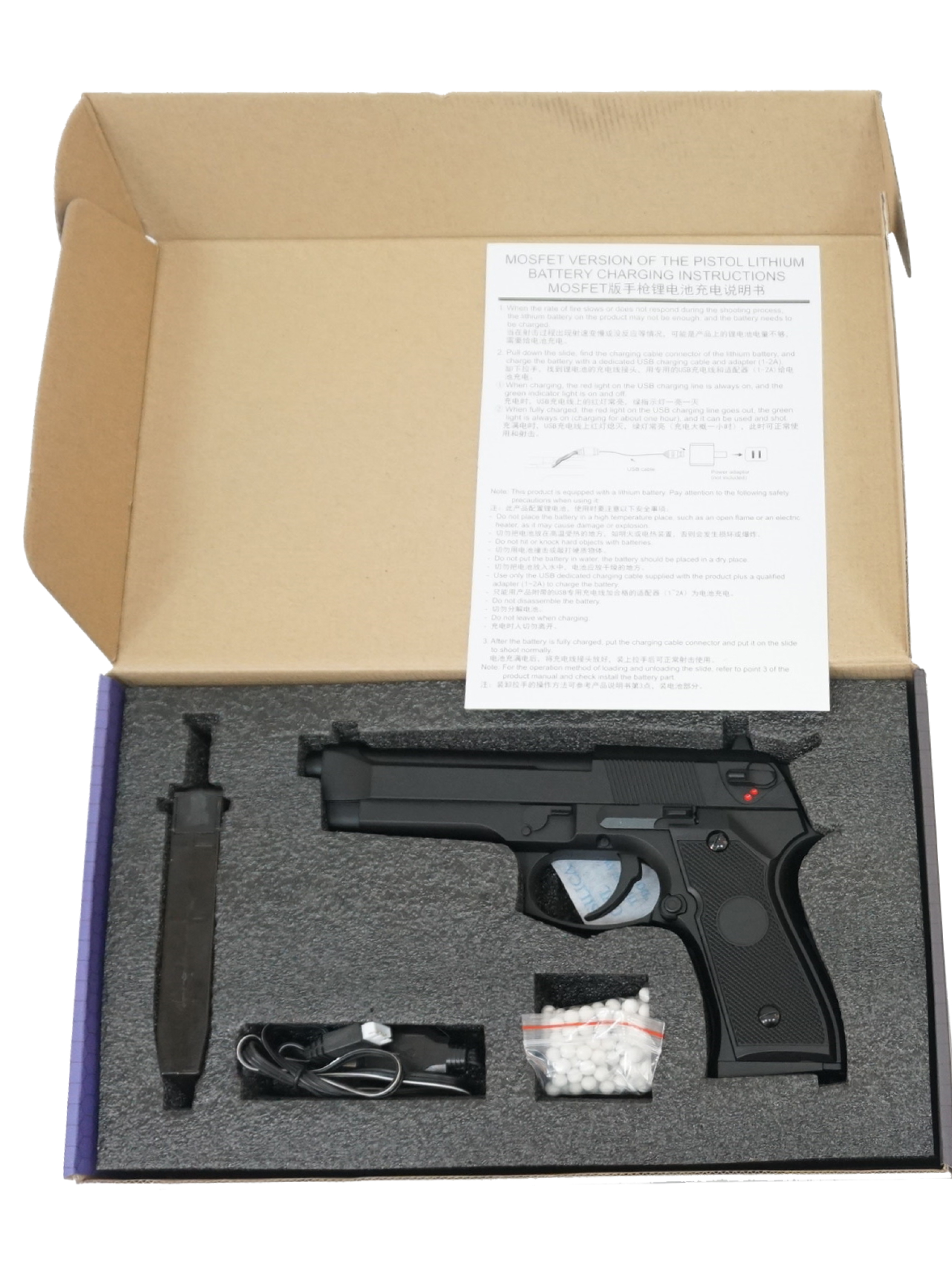 | Комплектация (?): | пистолет, магазин, аккумулятор, USB зарядное устройство, лоадер, инструкция |