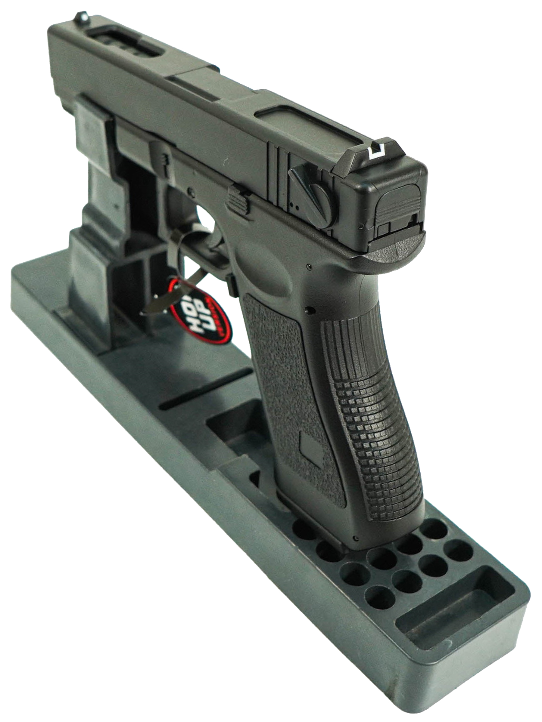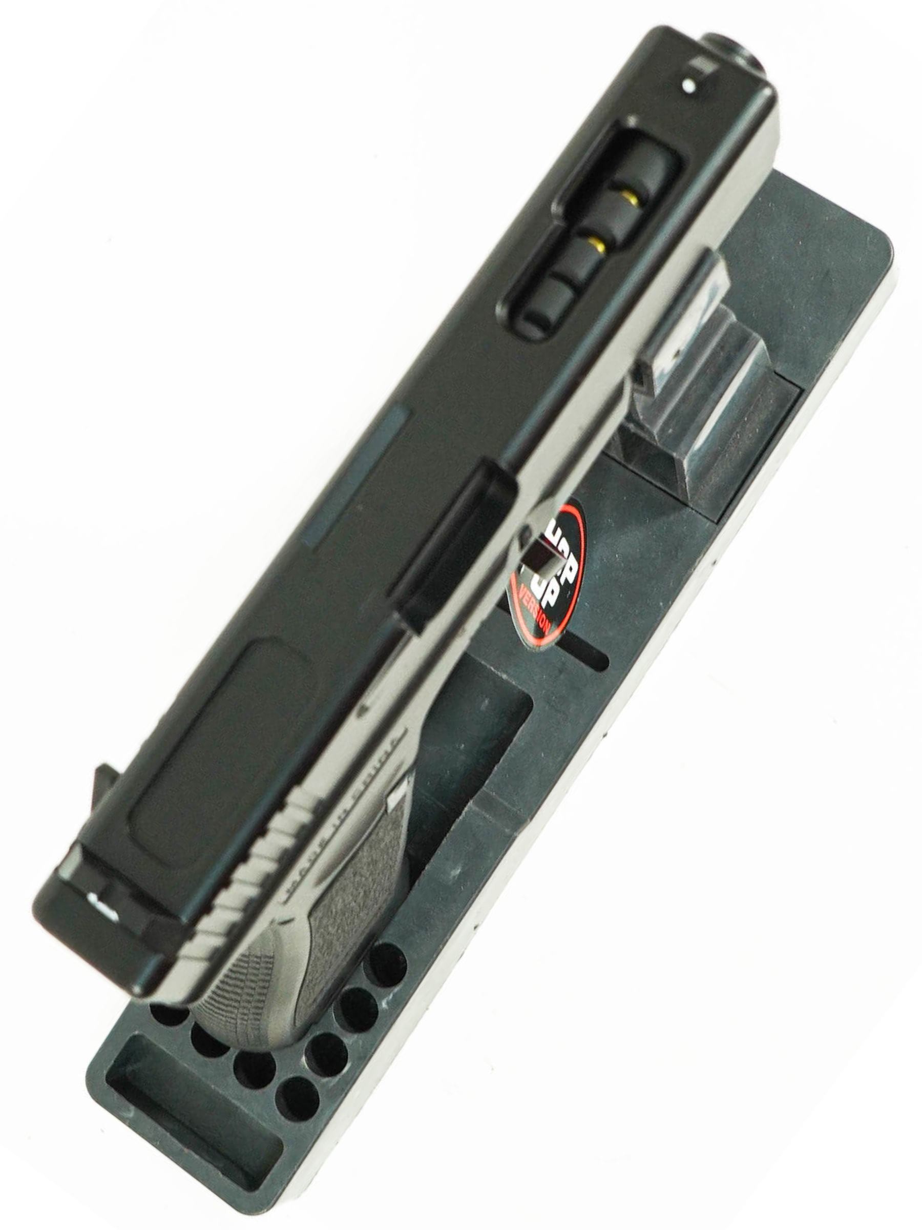 Использование более емкого литий-полимерного источника питания повысит возможности этого пистолета. Для установки аккумулятора необходимо снять кожух затвора. Внутри пистолета находится кастомный металлический гирбокс, отлично подходящий для тюнинга. Хоп-ап регулируется. Боеприпасы – стандартные шарики 6 мм, емкость магазина – 28 единиц.