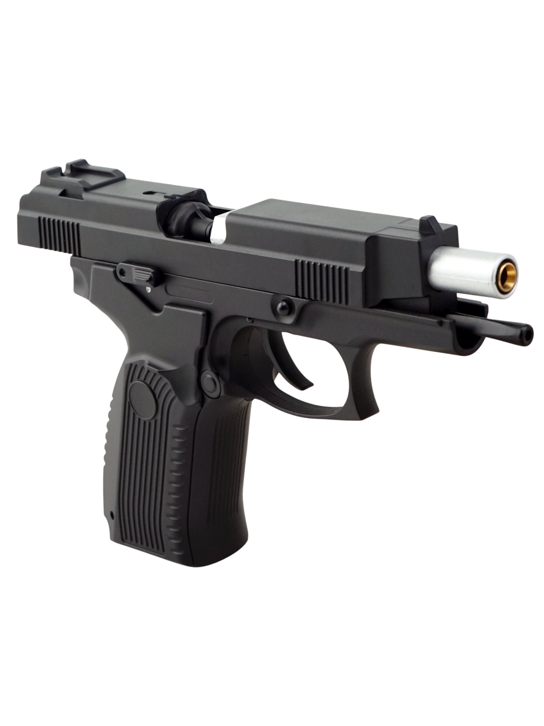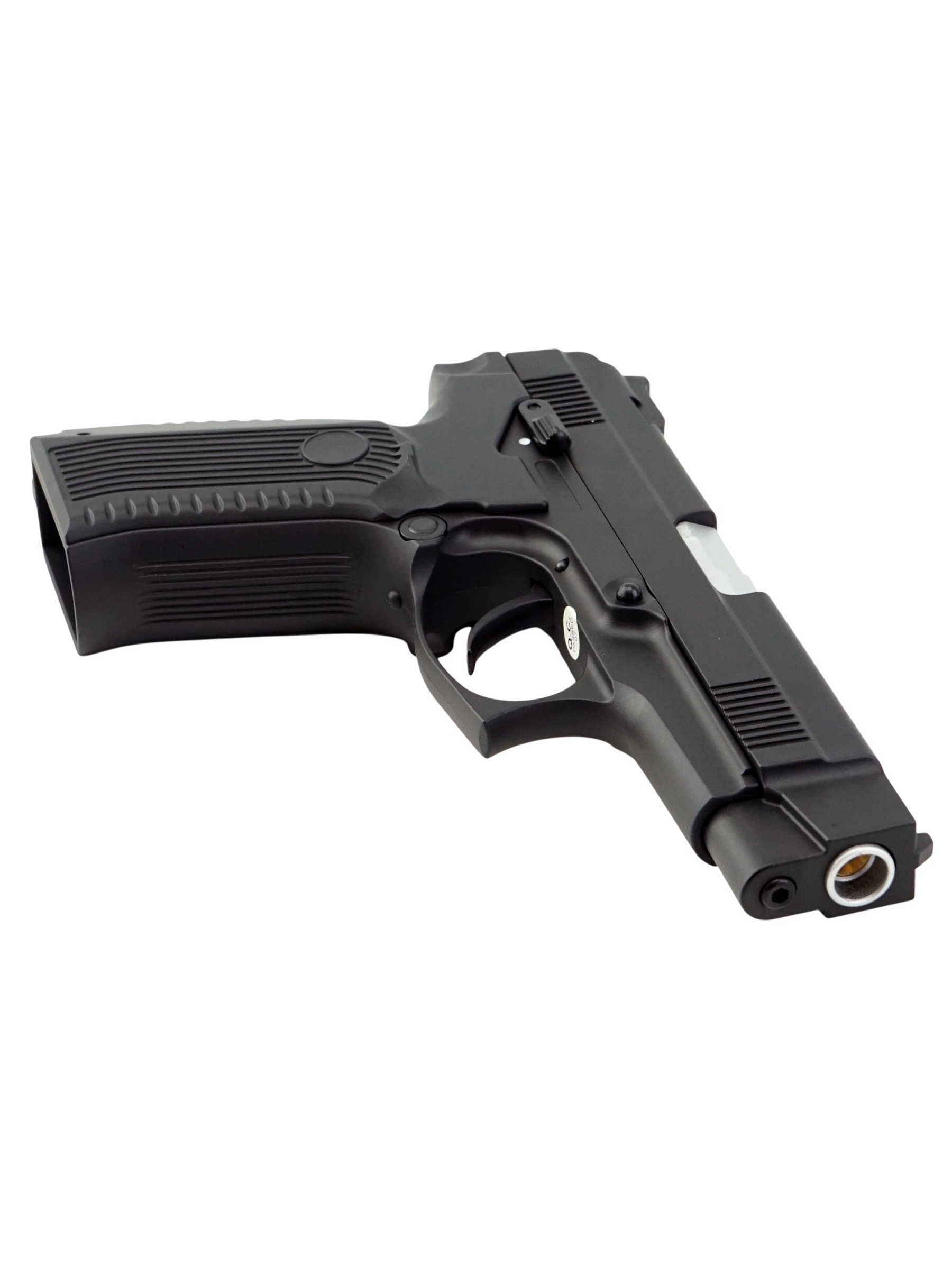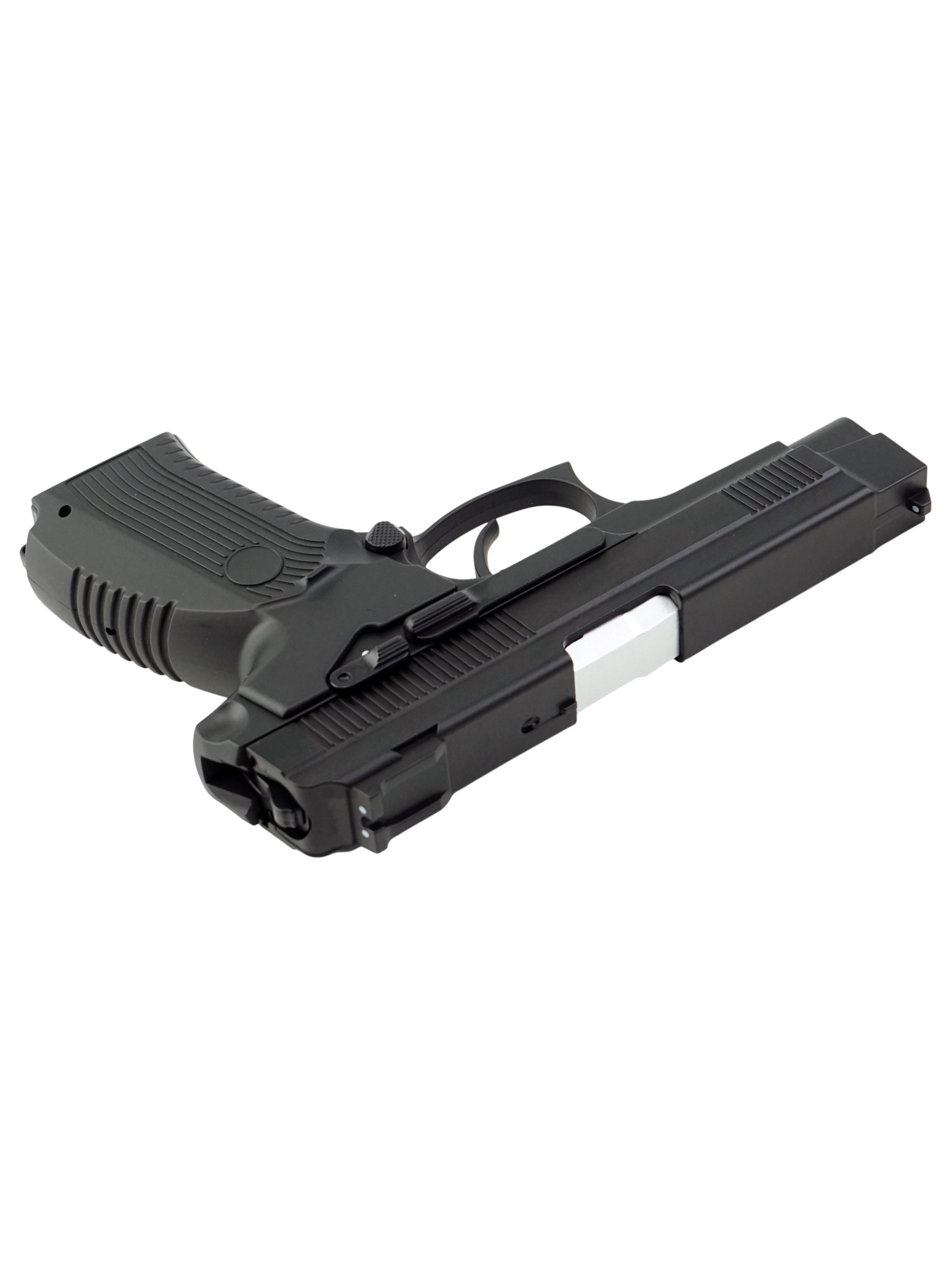 Пистолет имеет длину 195 мм, длина ствола — 85 мм, а вес составляет 650 г. Планка Weaver / Picatinny отсутствует, сохраняя аутентичный внешний вид. В комплектацию пистолета входят: сам пистолет, магазин, аккумулятор, USB зарядное устройство, шарики и инструкция.