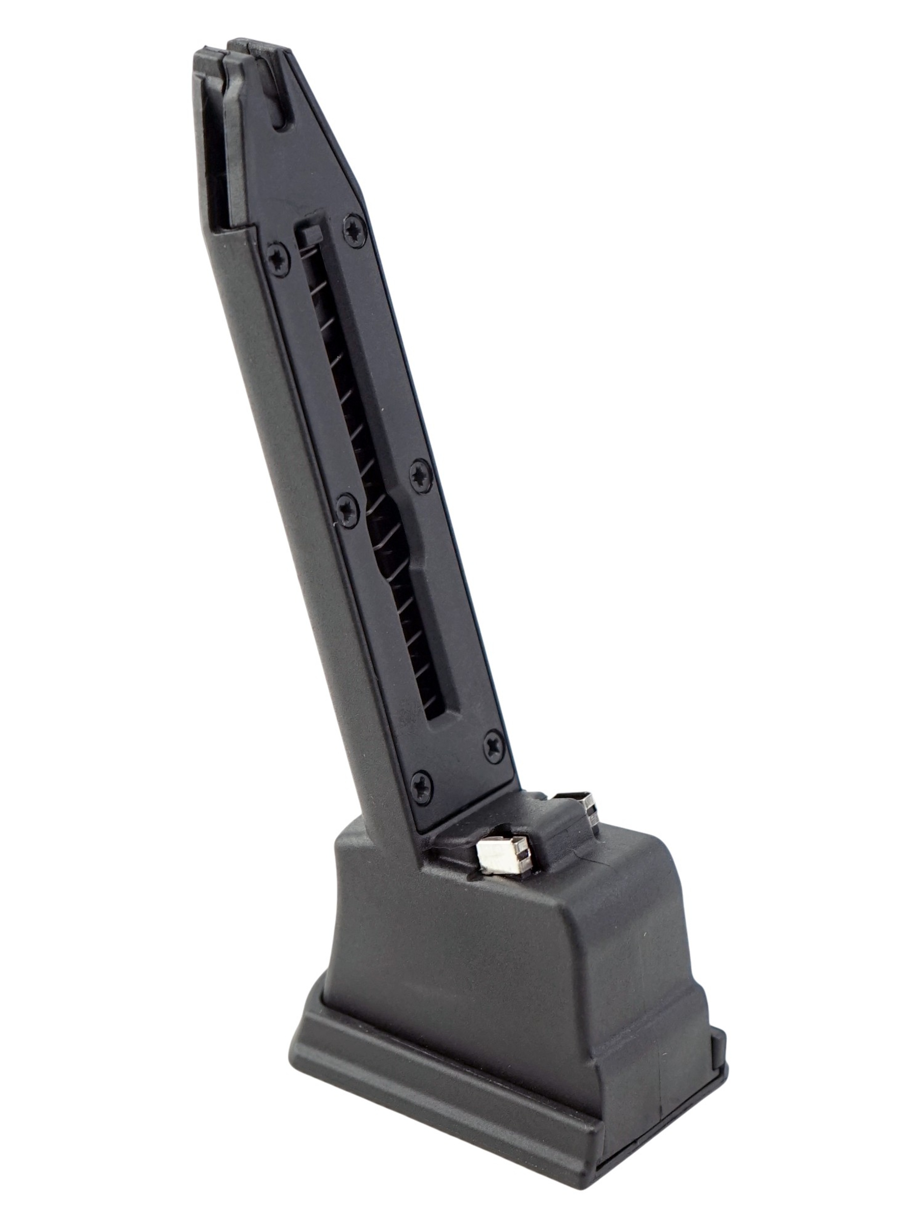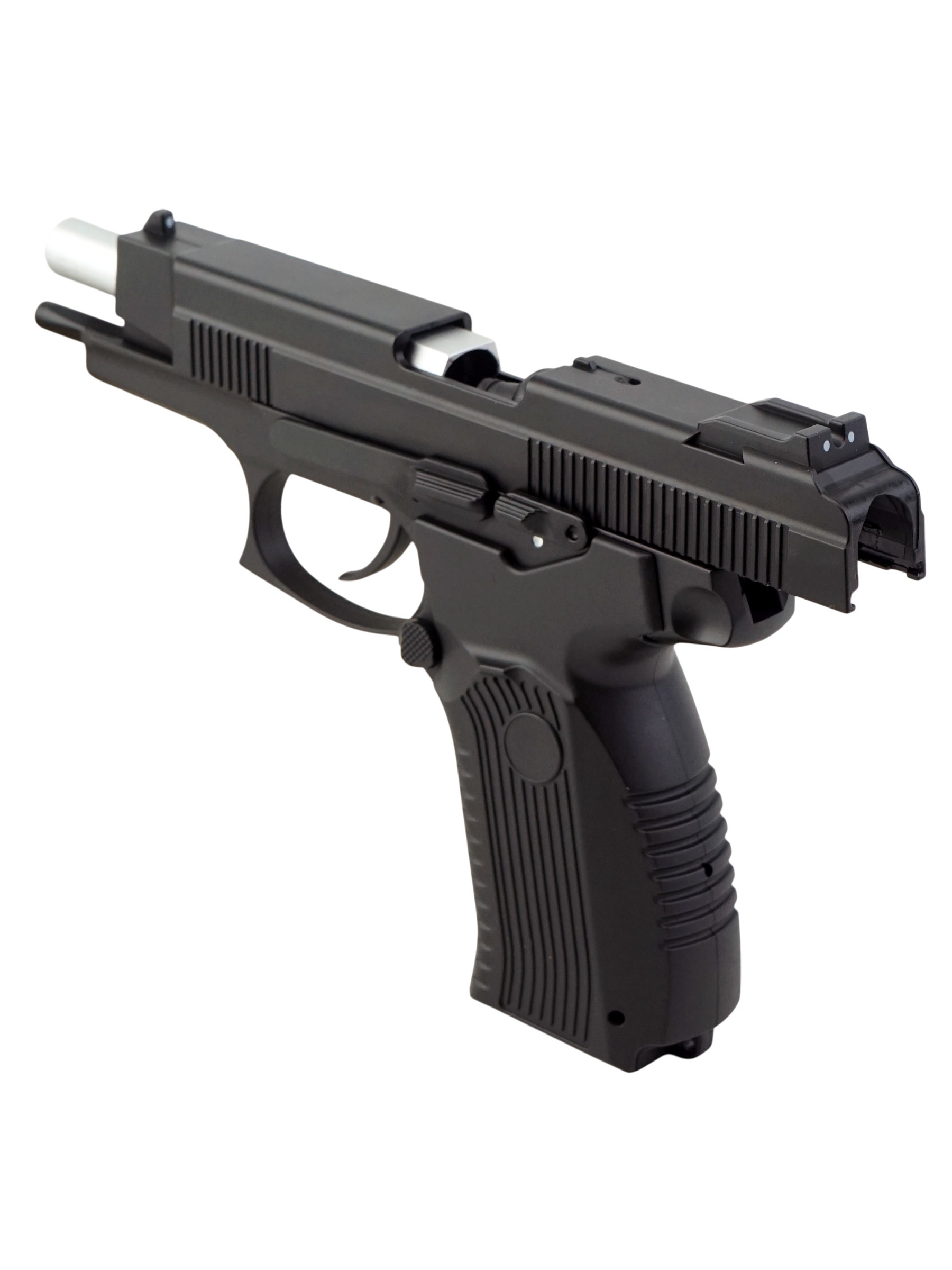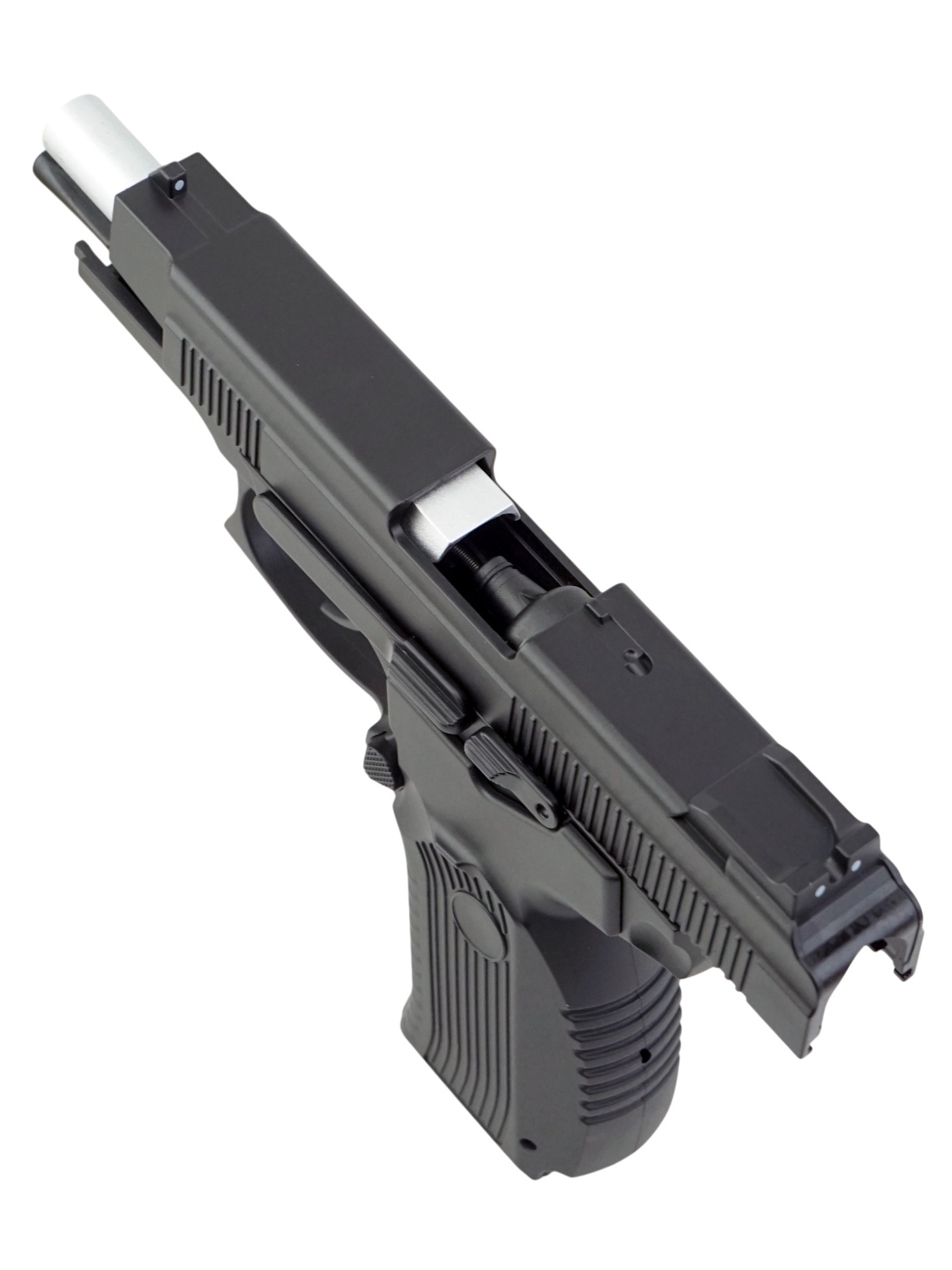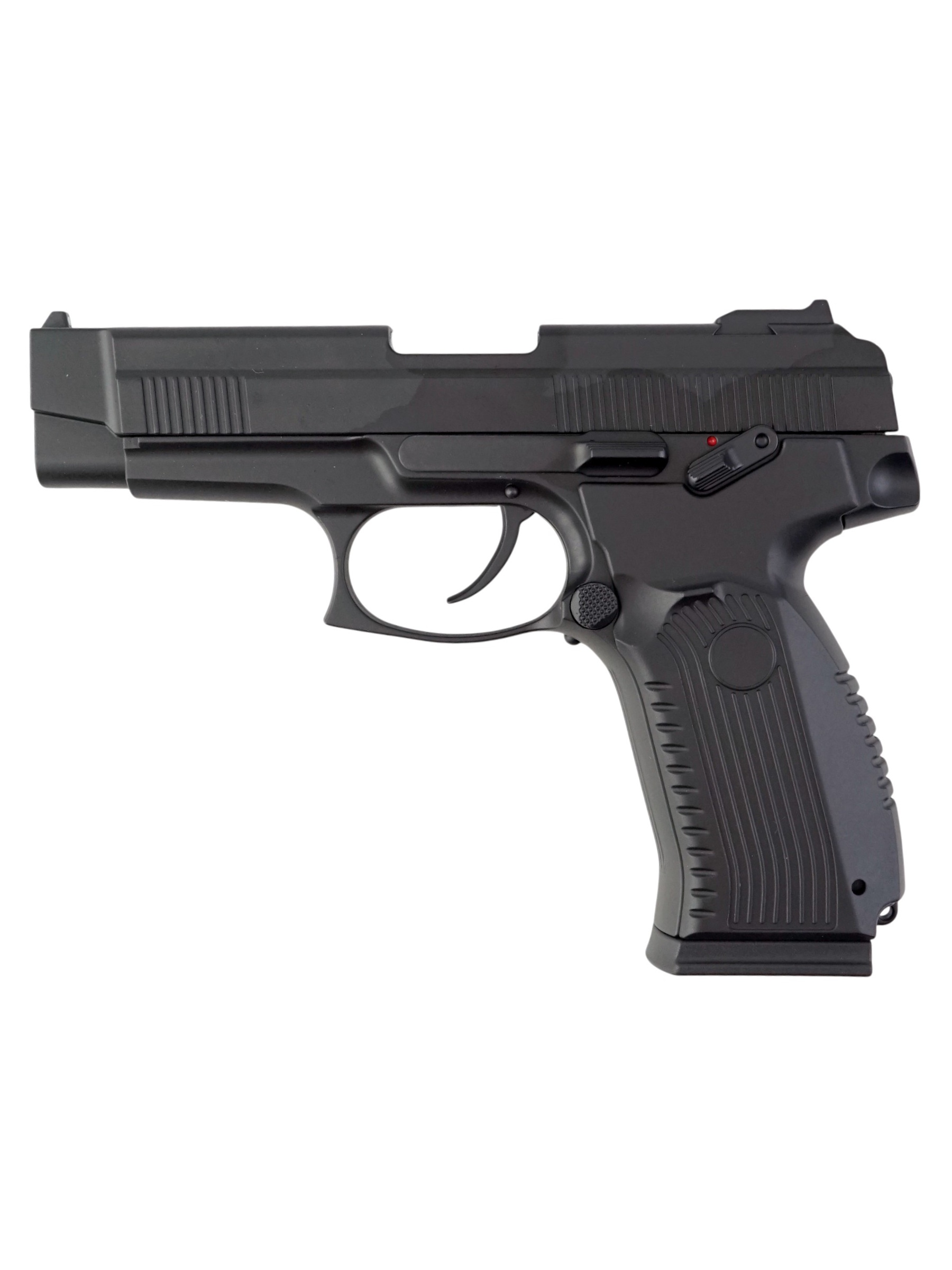 Пистолет имеет длину 195 мм, длина ствола — 85 мм, а вес составляет 650 г. Планка Weaver / Picatinny отсутствует, сохраняя аутентичный внешний вид. В комплектацию пистолета входят: сам пистолет, магазин, аккумулятор, USB зарядное устройство, шарики и инструкция.