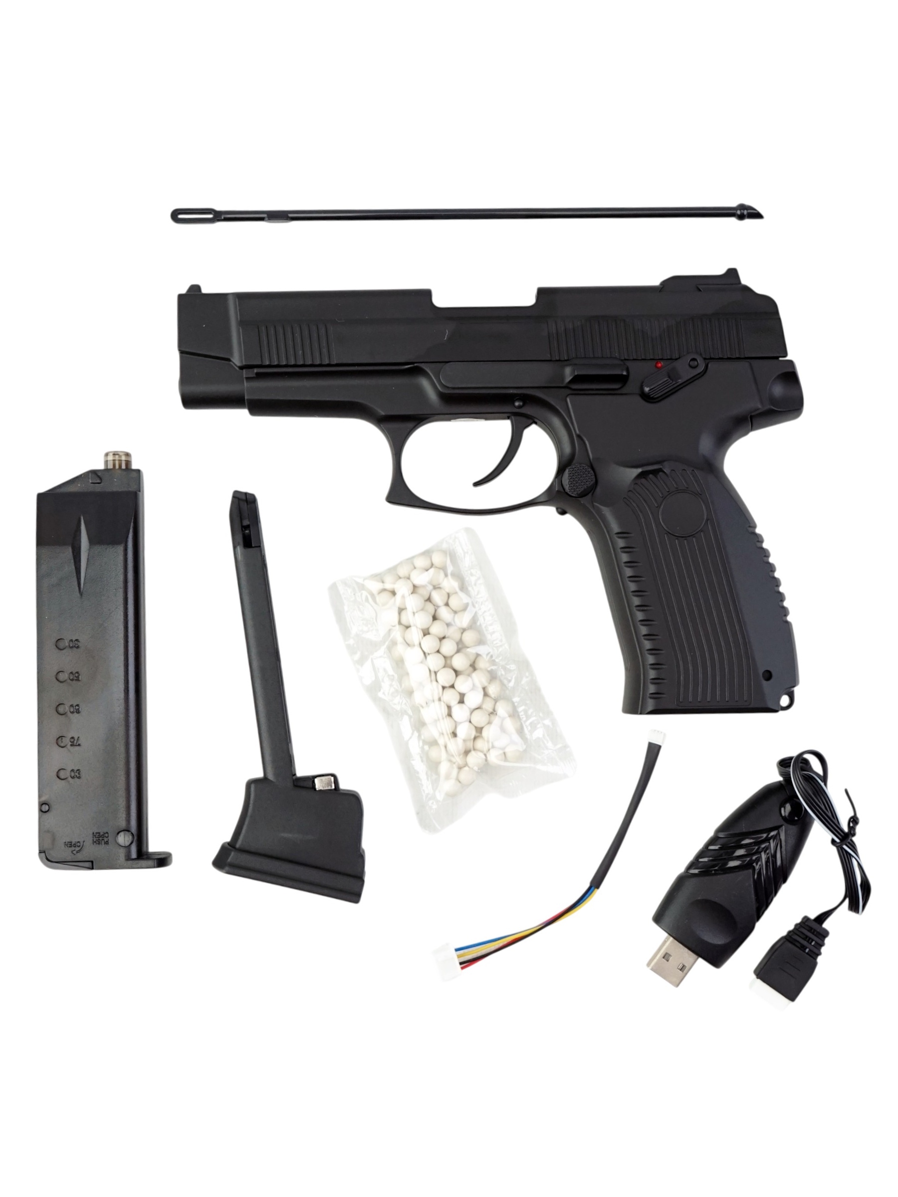 | Комплектация (?): | пистолет, магазин, аккумулятор, USB зарядное устройство, шарики, инструкция |