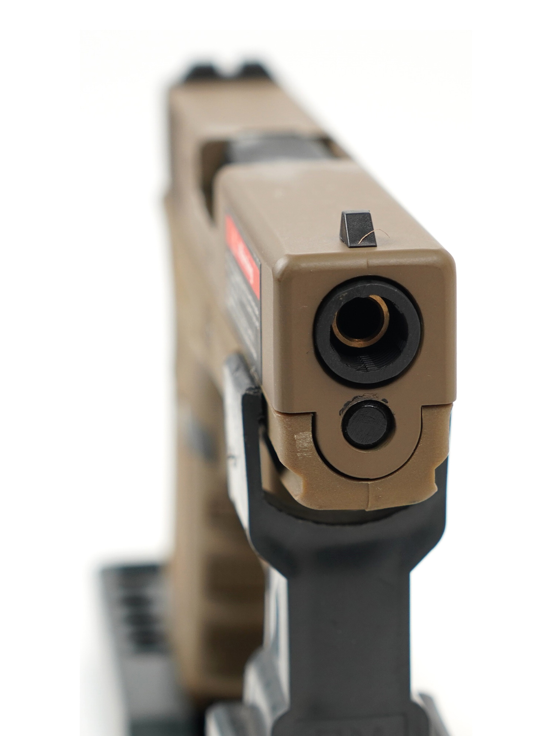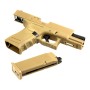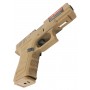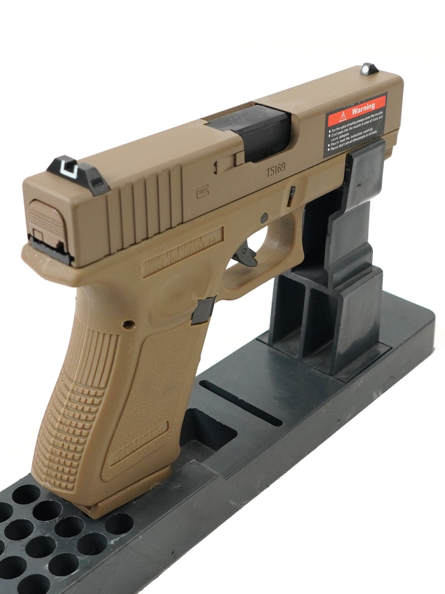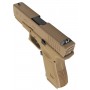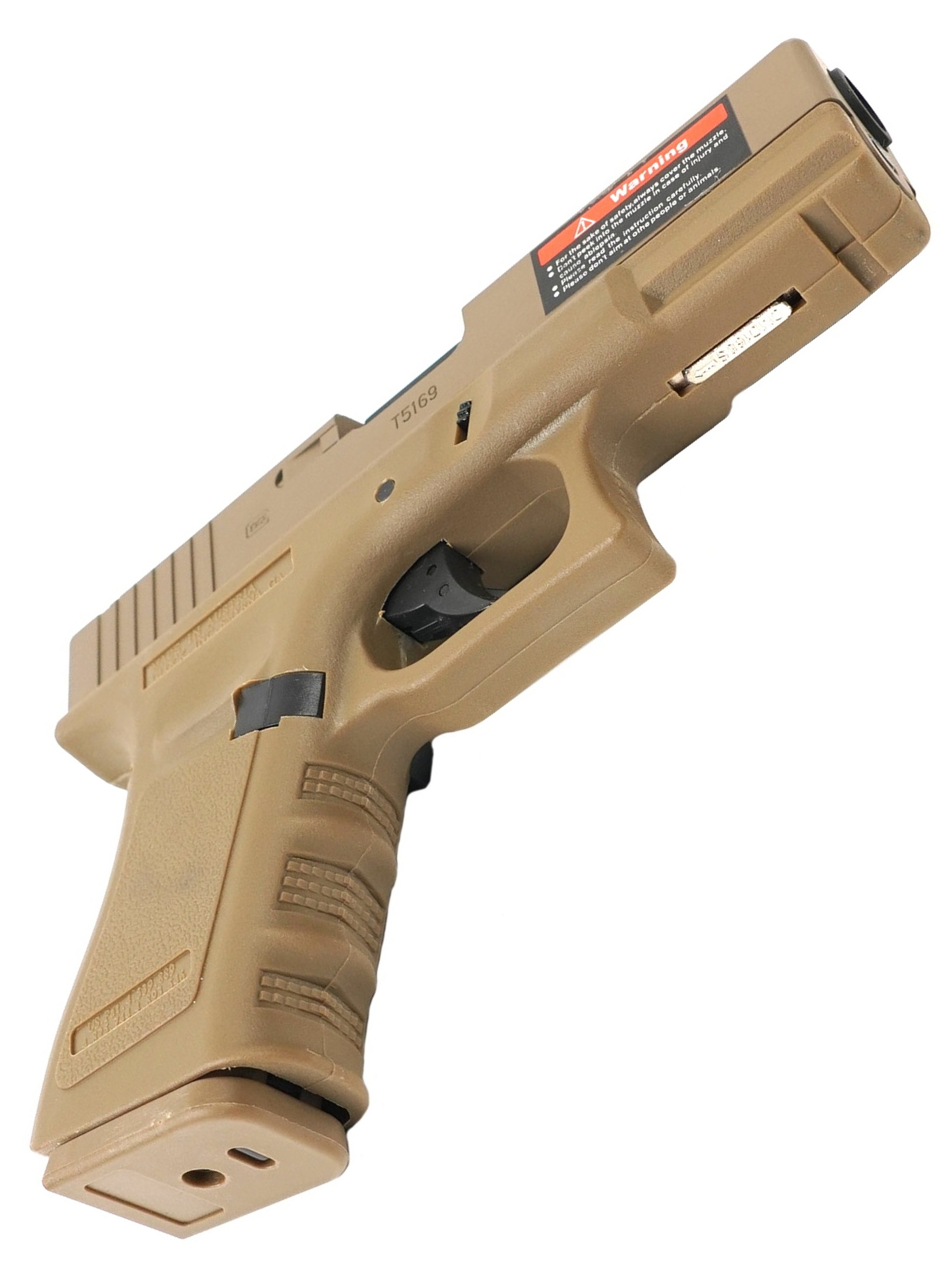 Корпус пистолета выполнен из прочного ABS-пластика, обеспечивающего надежность и долговечность. Органы управления выполнены из металла, придавая пистолету ощущение прочности и надежности. Вы сможете почувствовать каждое нажатие на затворную задержку и кнопку сброса магазина, воссоздавая реалистичный опыт использования боевого аналога.