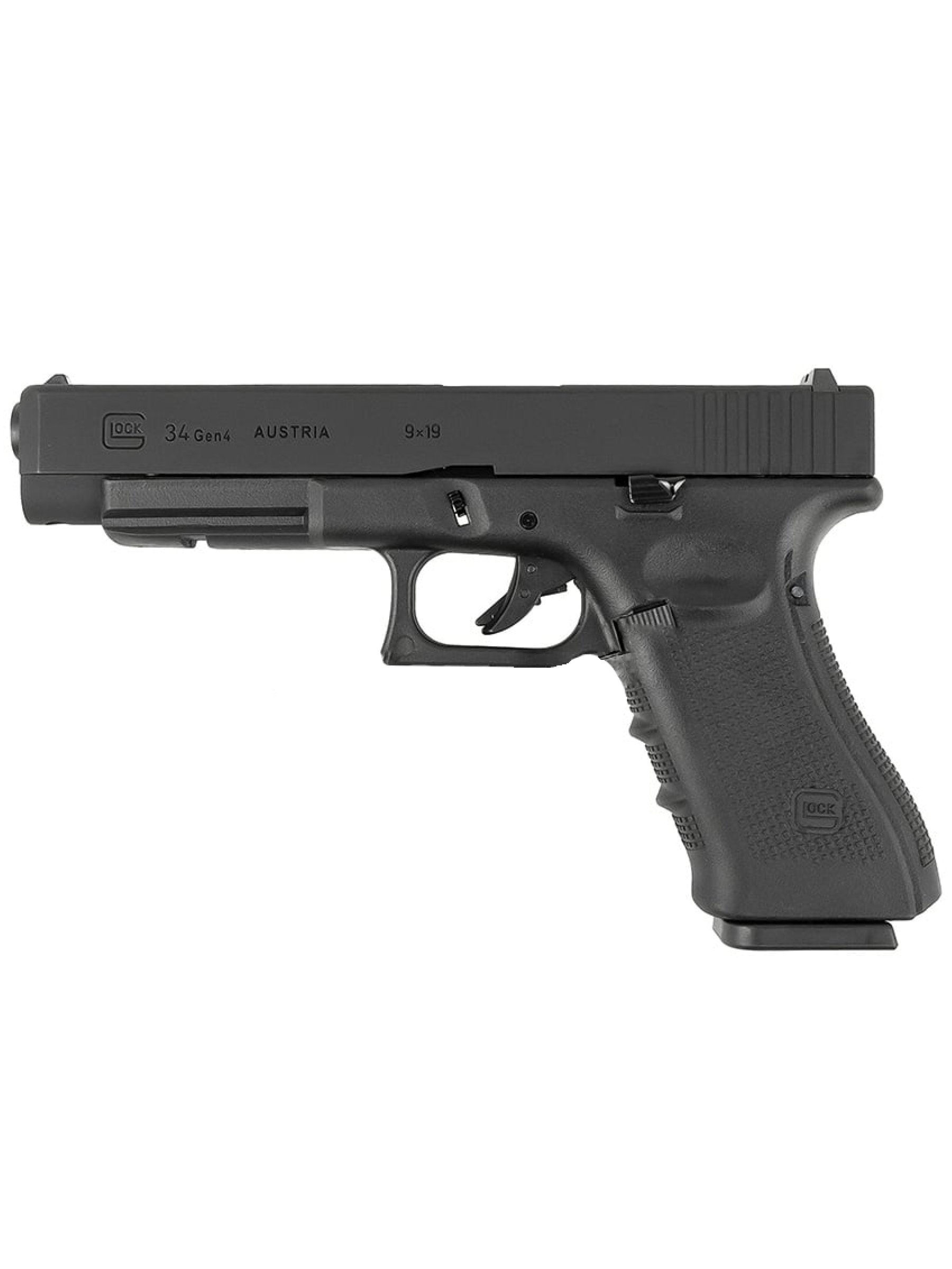 Glock 34 — это более длинная версия Glock 17, выпускаемая с 1998 года. Основные отличия — длина ствола (135 мм против 114 мм у Glock 17), наличие выреза в верхней передней части кожуха-затвора, что повышает баланс и точность. Общая длина составляет 224 мм (против 204 мм у Glock 17), вес — 650 г (против 625 г). Эта модификация предназначена для профессиональных стрелков и строгих дисциплин благодаря увеличенной длине и улучшенной точности.
