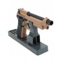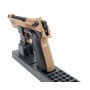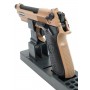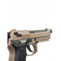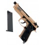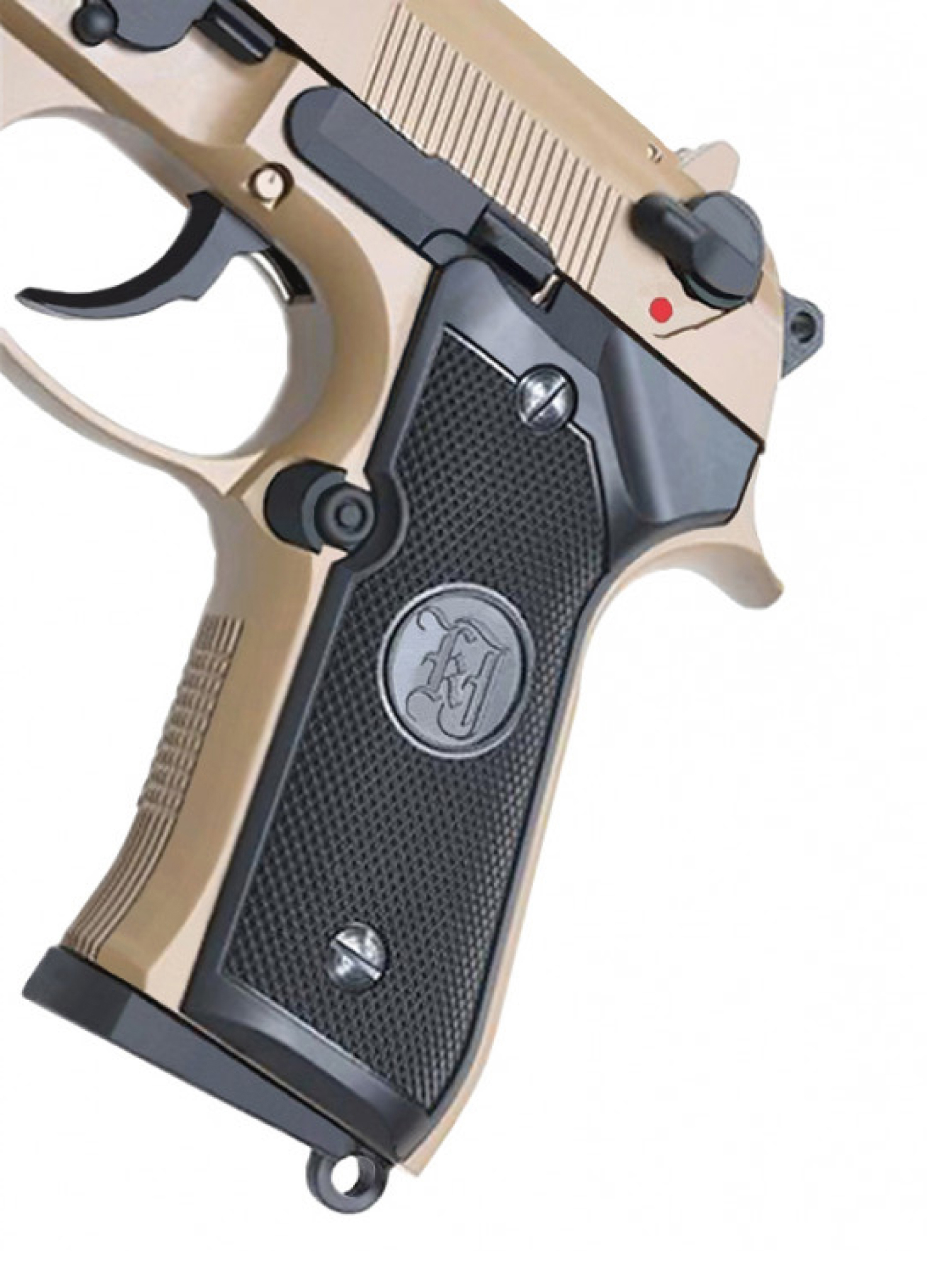 Корпус KJW Beretta M9A1 выполнен из комбинации прочного ABS-пластика и легкого алюминиевого сплава, обеспечивая надежность и долговечность конструкции. Песочный цвет придает пистолету эффектный и современный вид. Пистолет работает в полуавтоматическом режиме, предлагая быстрое и точное ведение огня. Наличие планки Weaver / Picatinny под стволом позволяет установить дополнительное оборудование, такое как фонарик или лазерный целеуказатель, расширяя возможности тактической кастомизации.