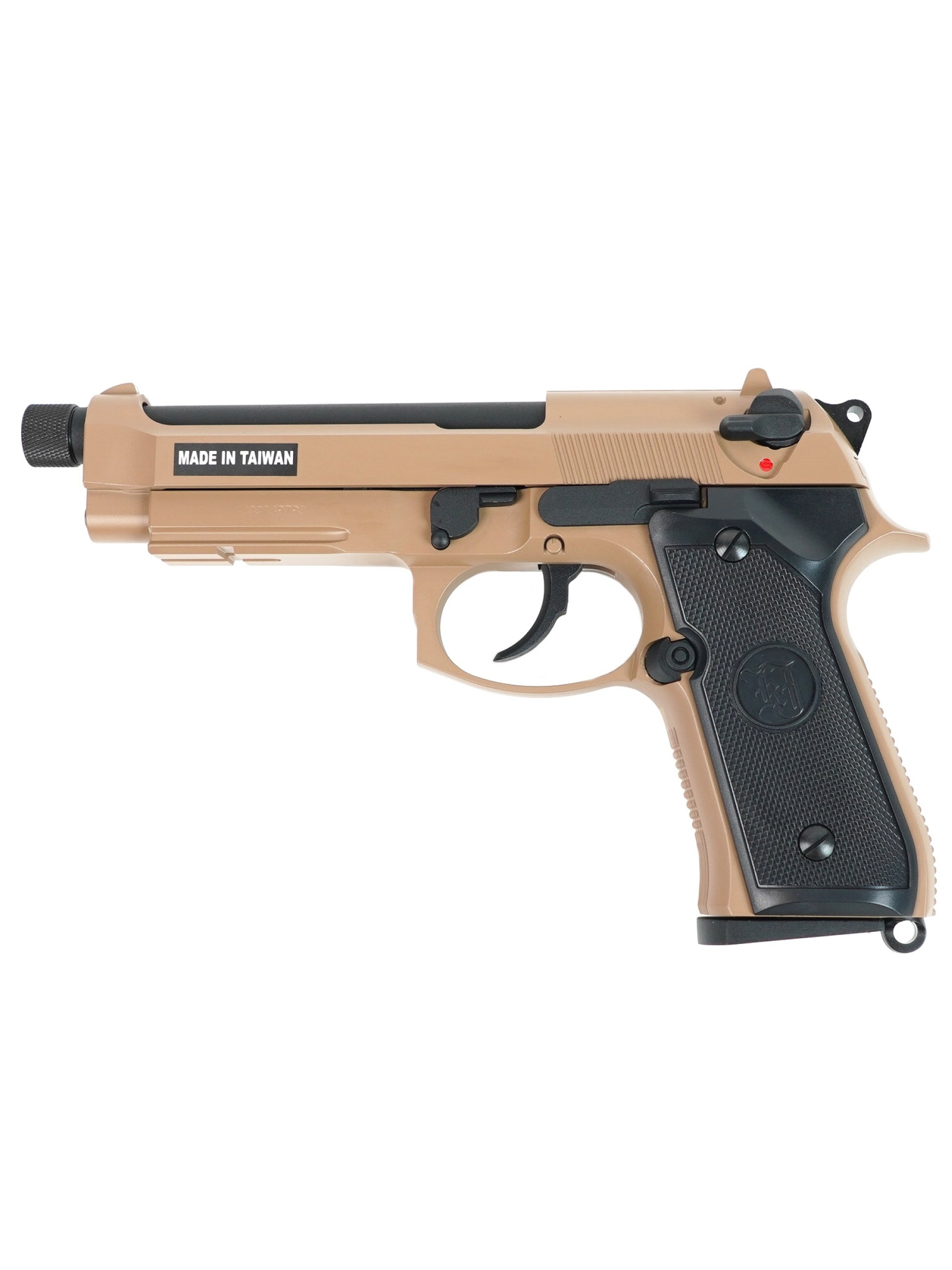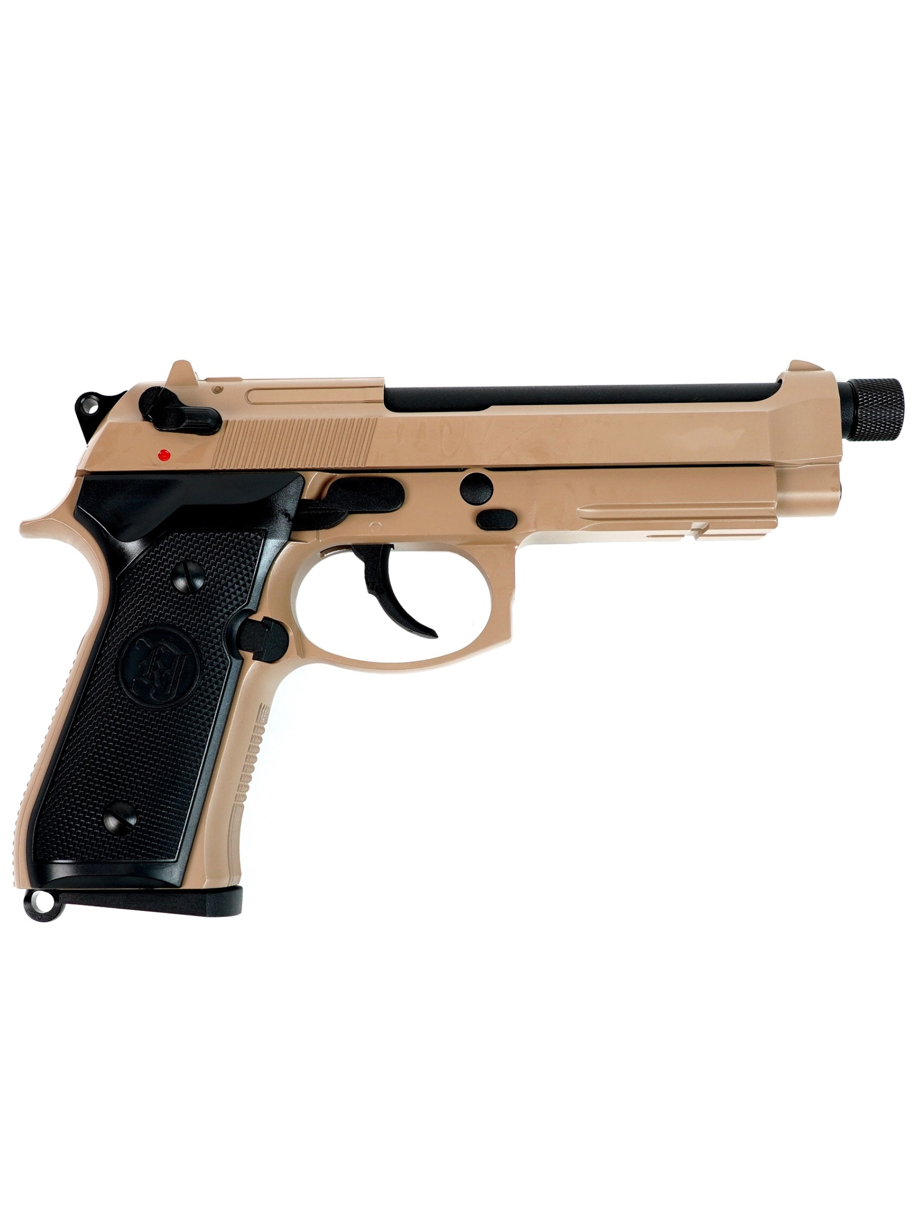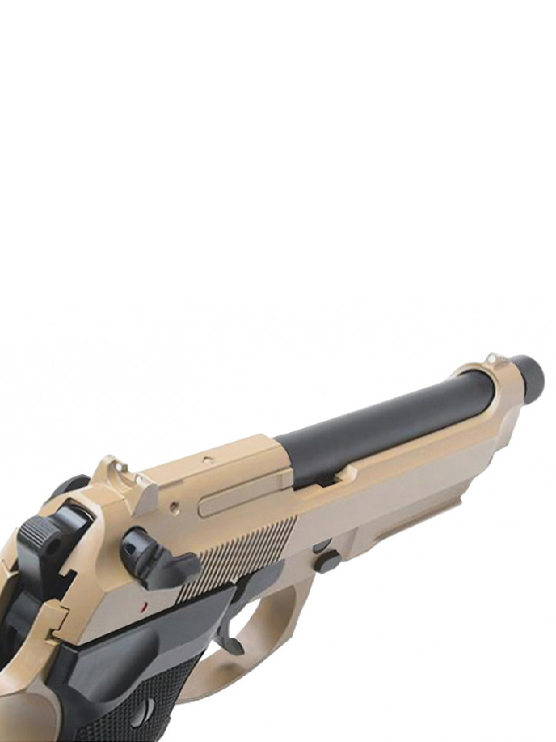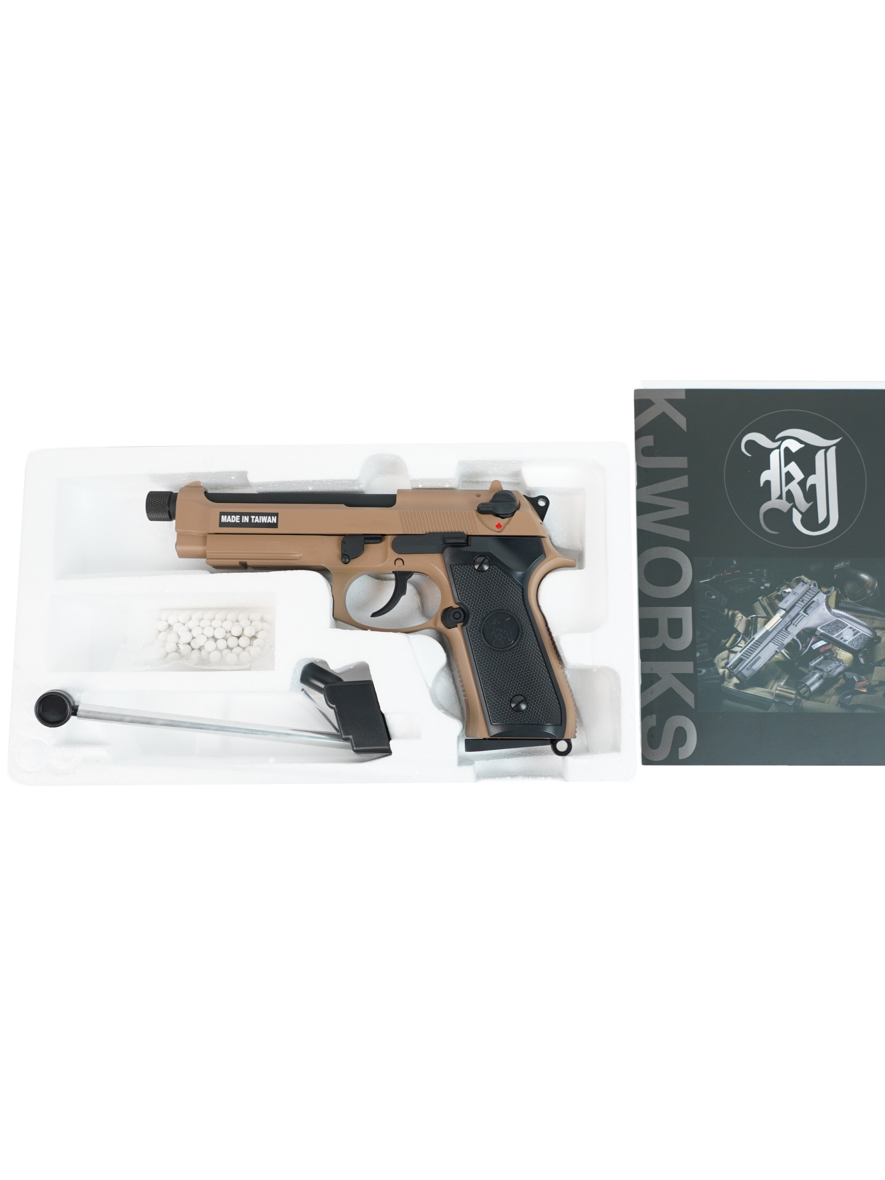 Встречайте мощный и стильный страйкбольный пистолет KJW Beretta M9A1 TBC Gas Tan с удлиненным стволом! Эта модель от известного тайваньского производителя KJW – KJ Works – является газовой репликой знаменитой Beretta M92 / M9A1, сочетая в себе реалистичный дизайн и превосходные характеристики для страйкбольных сражений.