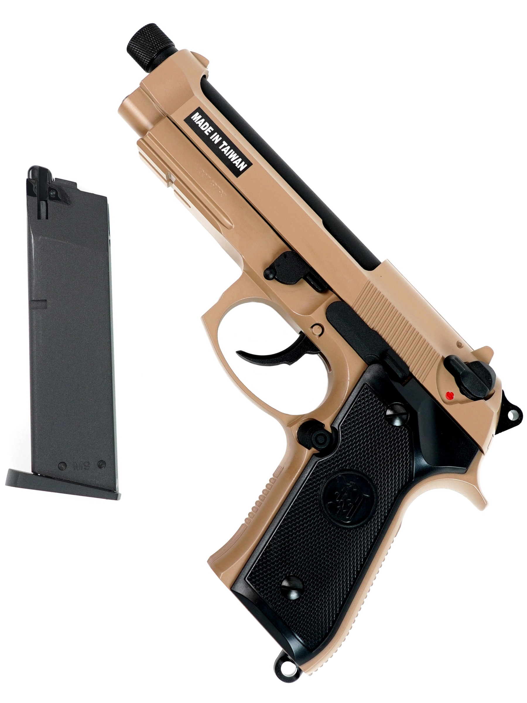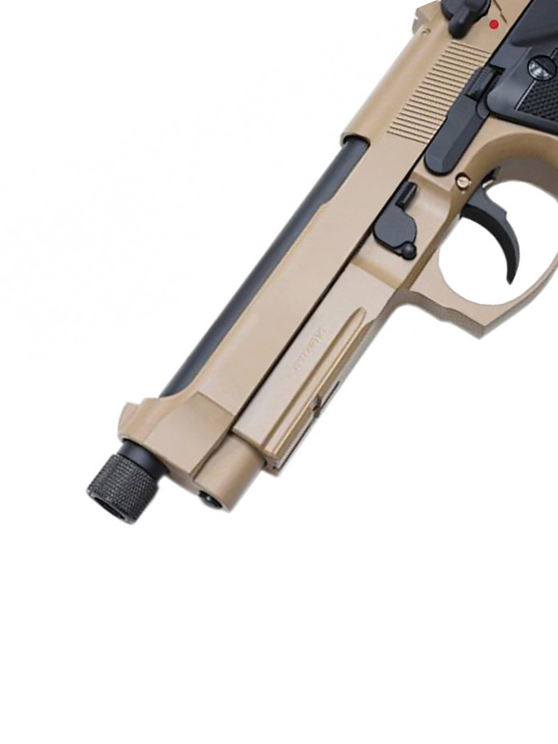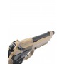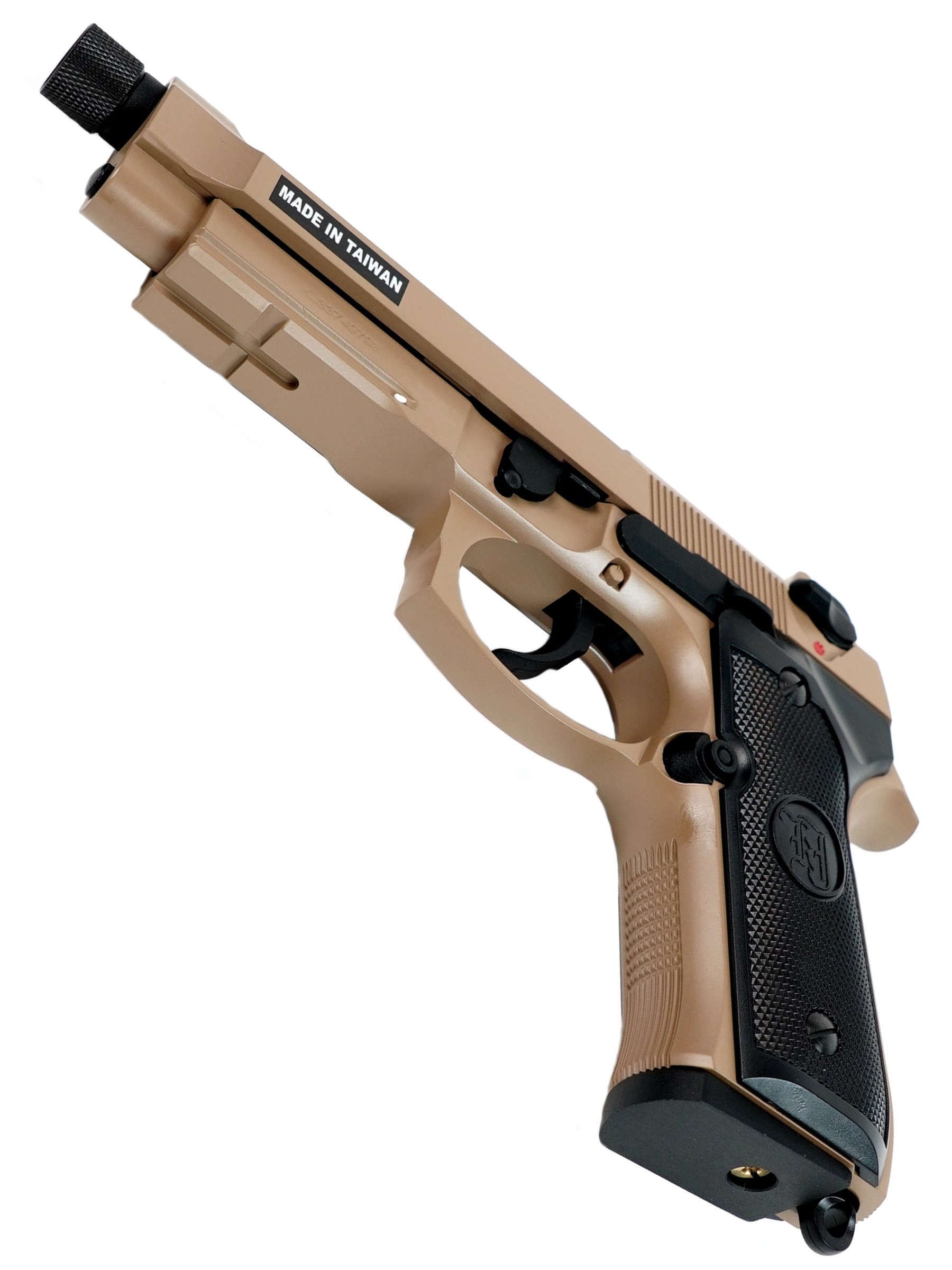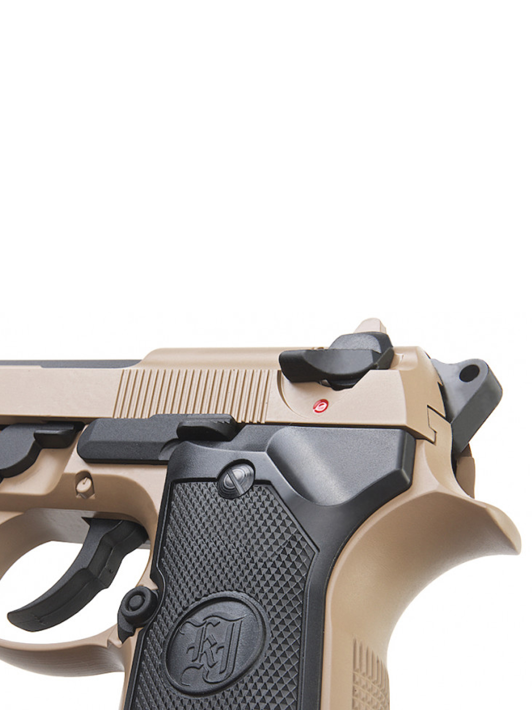 Встречайте мощный и стильный страйкбольный пистолет KJW Beretta M9A1 TBC Gas Tan с удлиненным стволом! Эта модель от известного тайваньского производителя KJW – KJ Works – является газовой репликой знаменитой Beretta M92 / M9A1, сочетая в себе реалистичный дизайн и превосходные характеристики для страйкбольных сражений.