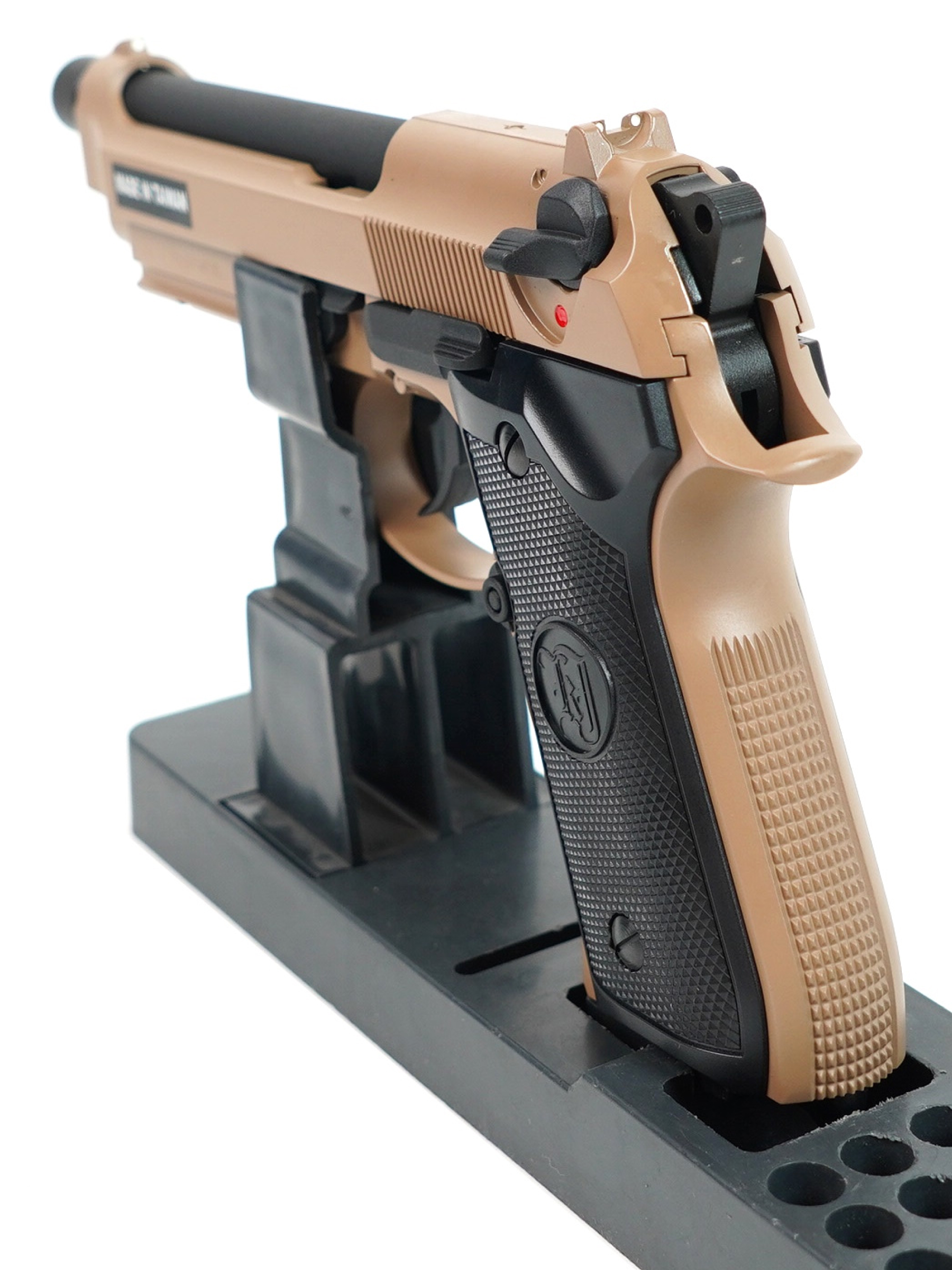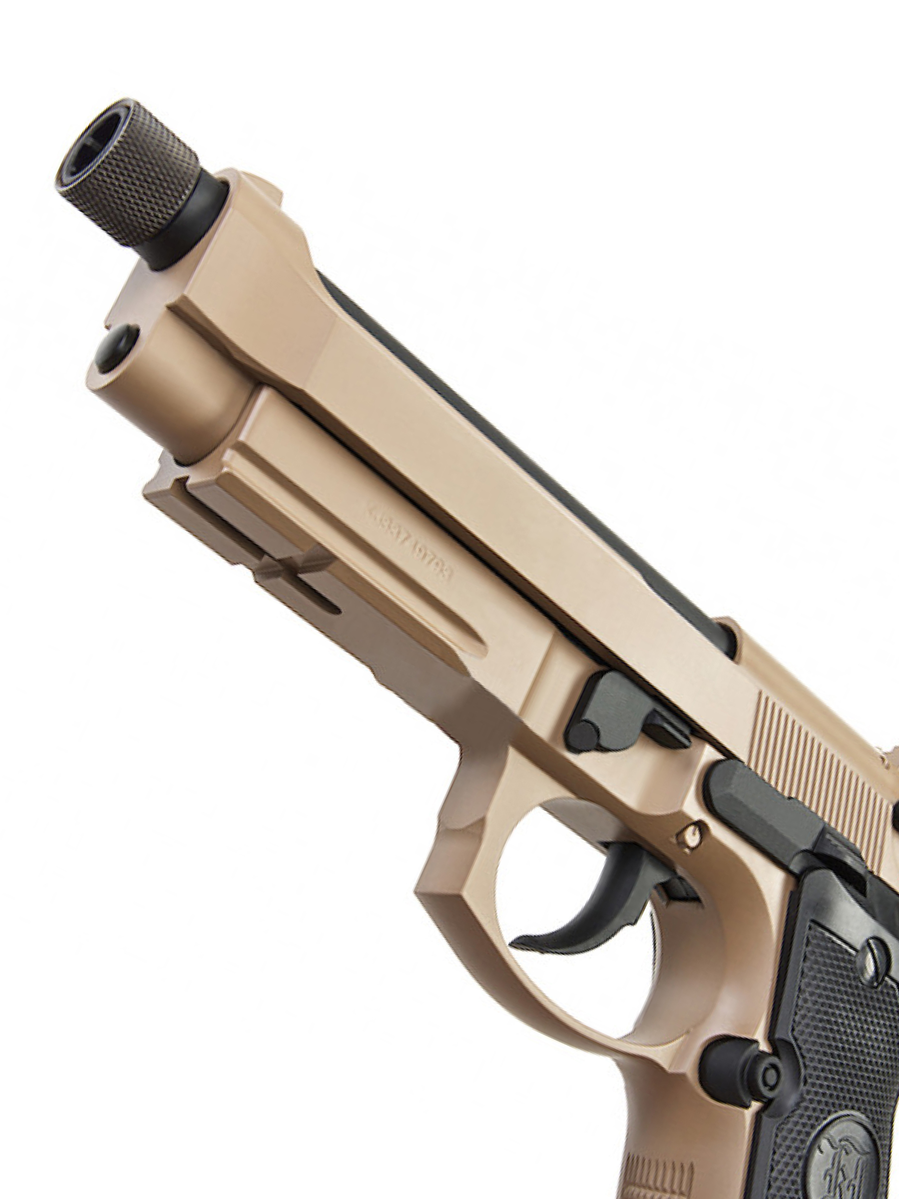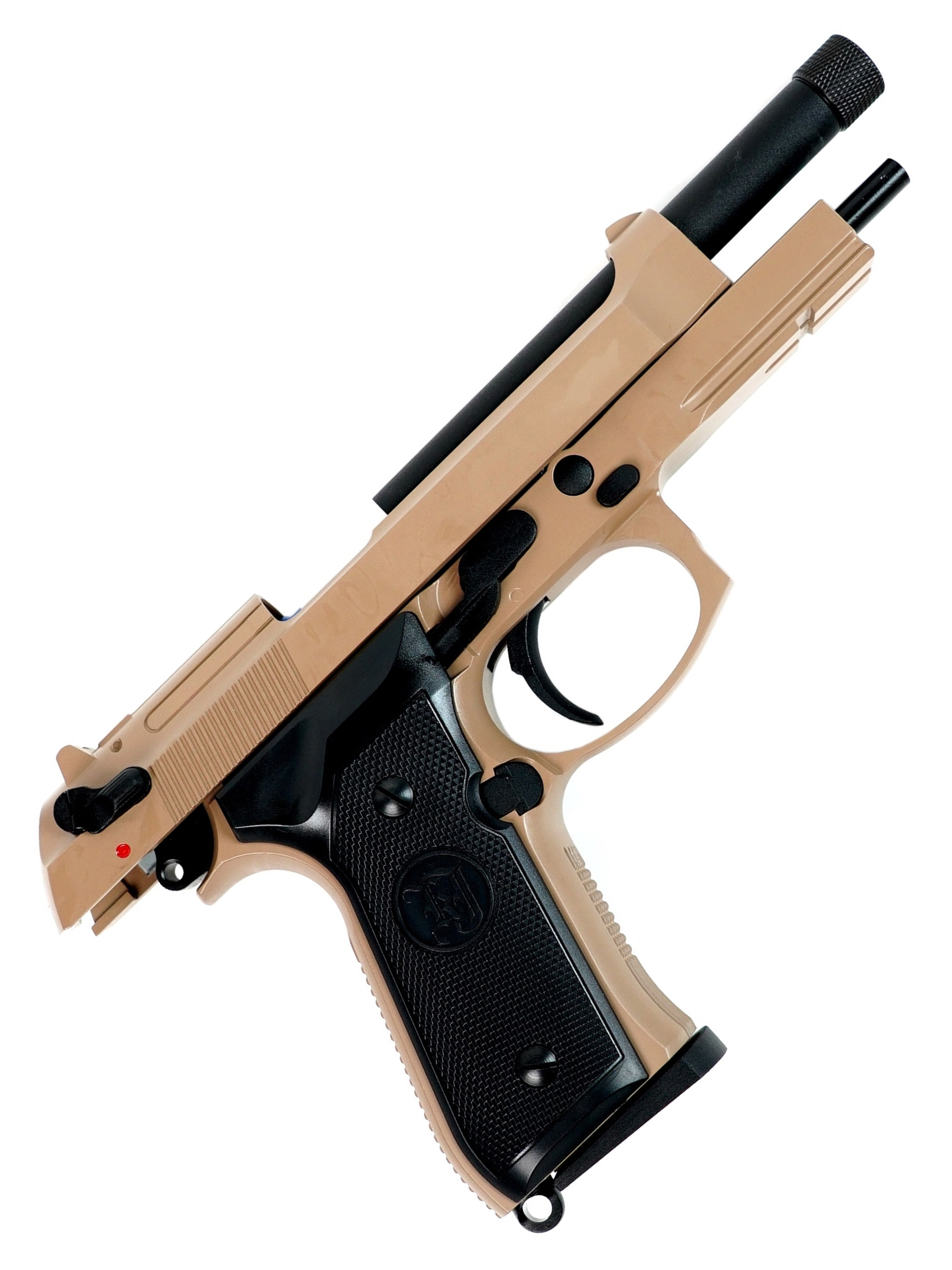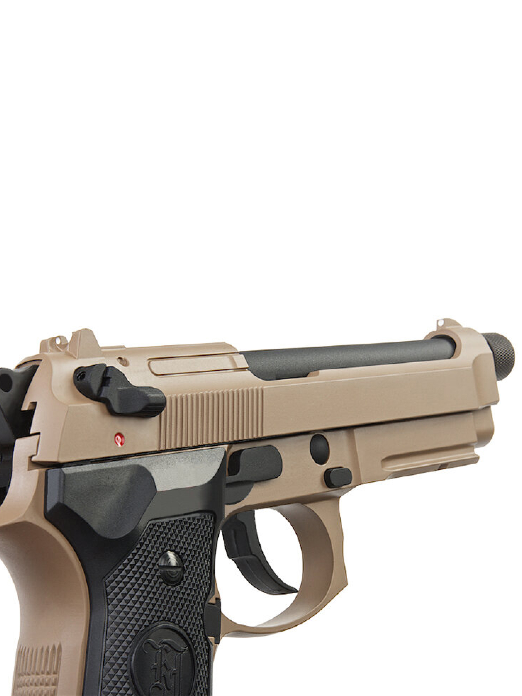 Встречайте мощный и стильный страйкбольный пистолет KJW Beretta M9A1 TBC Gas Tan с удлиненным стволом! Эта модель от известного тайваньского производителя KJW – KJ Works – является газовой репликой знаменитой Beretta M92 / M9A1, сочетая в себе реалистичный дизайн и превосходные характеристики для страйкбольных сражений.