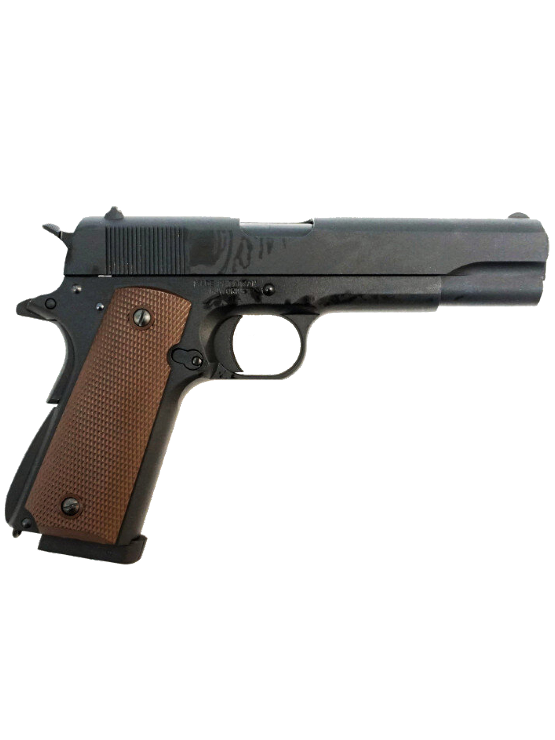 Страйкбольный пистолет Colt 1911 GGBB от тайваньского производителя KJW внешне воспроизводит одноименную модель пистолета разработки американской компании Colt. В предлагаемом варианте пистолет комплектуется магазином несколько большей вместимости (26 шаров) от модели KJW KP-07 Colt M1911 M.E.U.