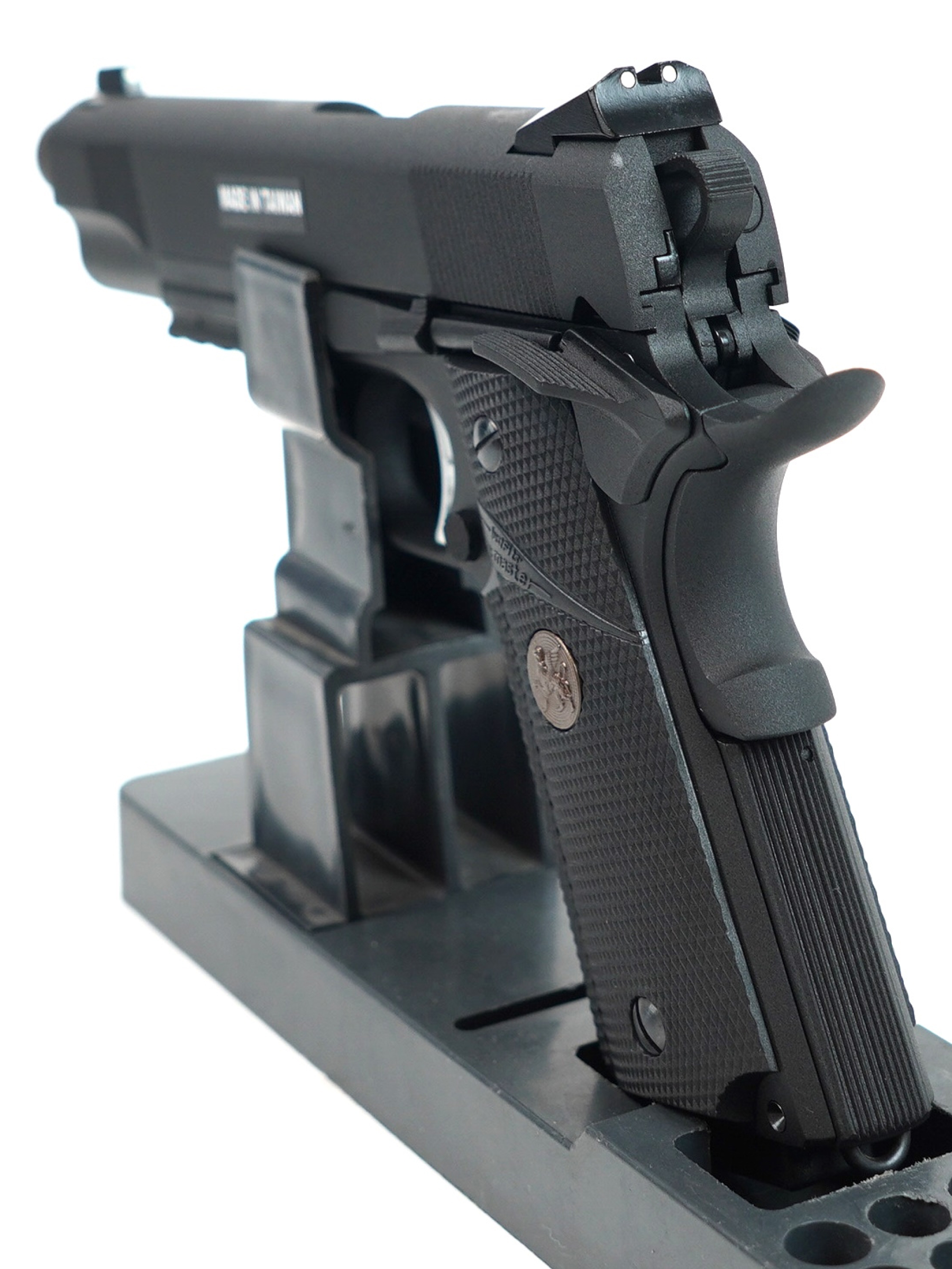 Рамка и затвор пистолета выполнены из металла, накладки на рукоять - пластиковые. В качестве источника энергии используется грингаз. Пистолет оснащен неавтоматическим флажковым двухсторонним предохранителем и автоматическим предохранителем на тыльной стороне рукояти. Хоп-ап - регулируемый.