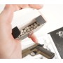 Пистолет выполнен из высококачественных материалов: корпус и затвор из прочного ABS-пластика, а для придания дополнительной прочности и ощущения настоящего оружия использован алюминиевый сплав. В результате общая масса составляет 985 граммов, что помогает чувствовать полноценный вес оружия.