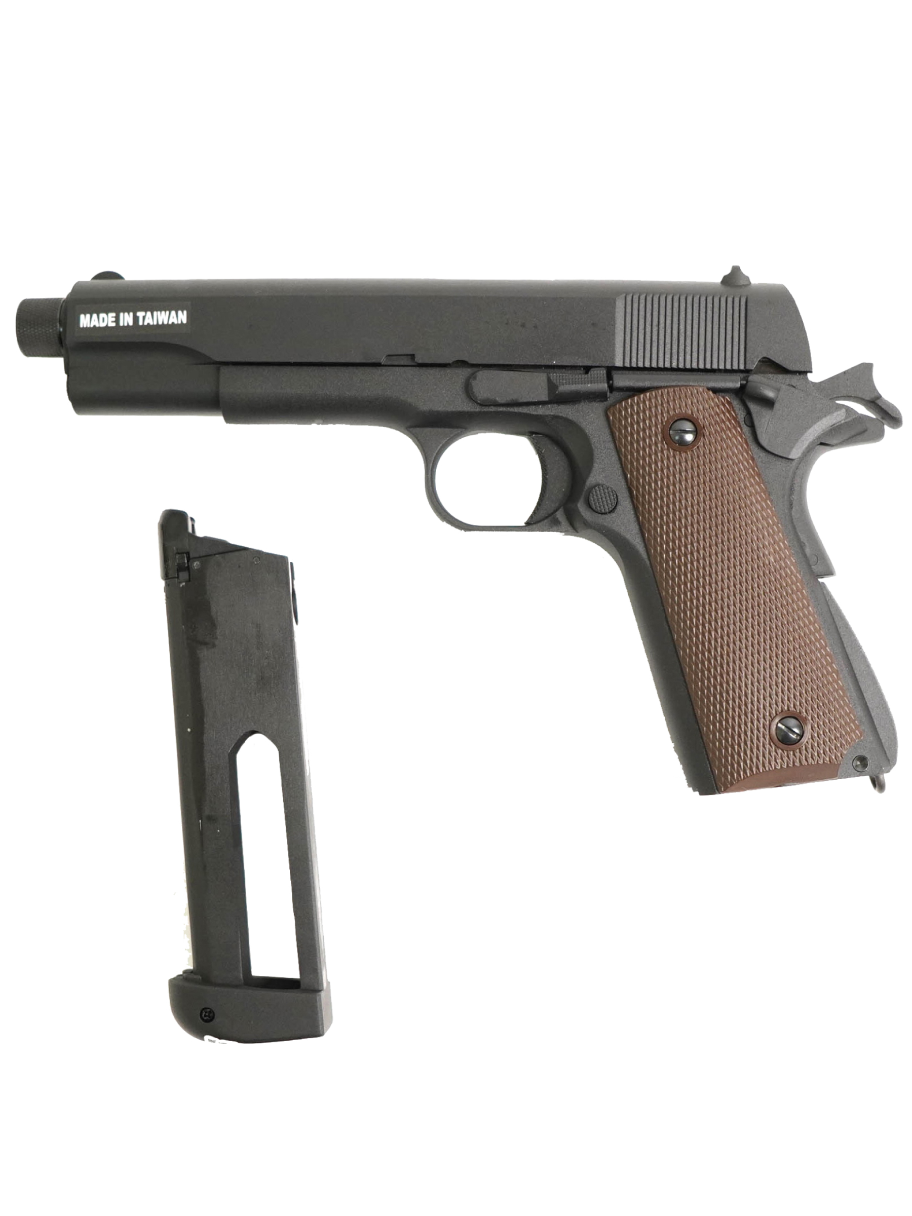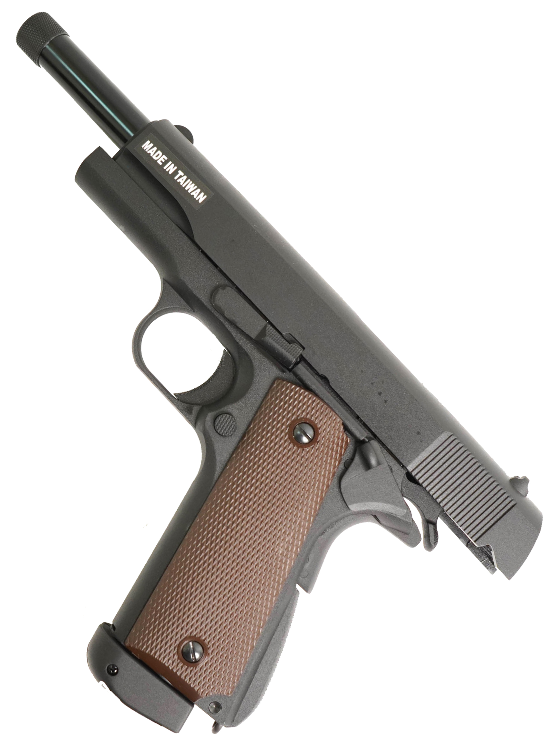 Главной особенностью пистолета является удлиненный ствол с резьбой под глушитель. Это позволяет устанавливать глушители или трассерные насадки, расширяя тактические возможности пистолета и повышая скрытность при игре. В комплект поставки входят: пистолет, магазин, шарики и инструкция.