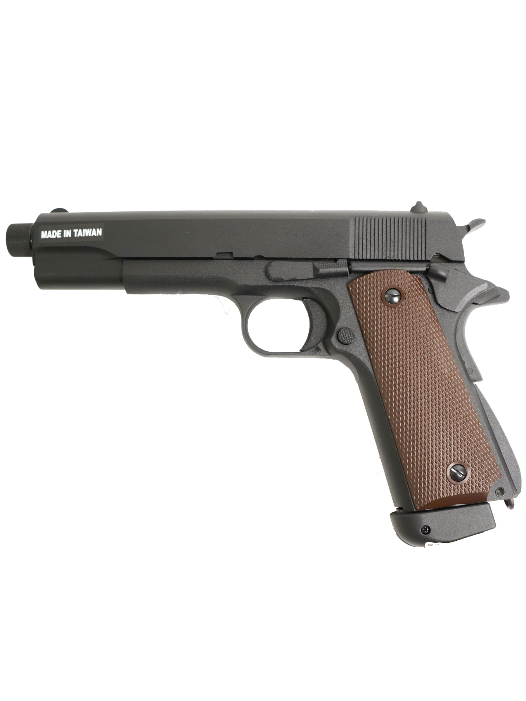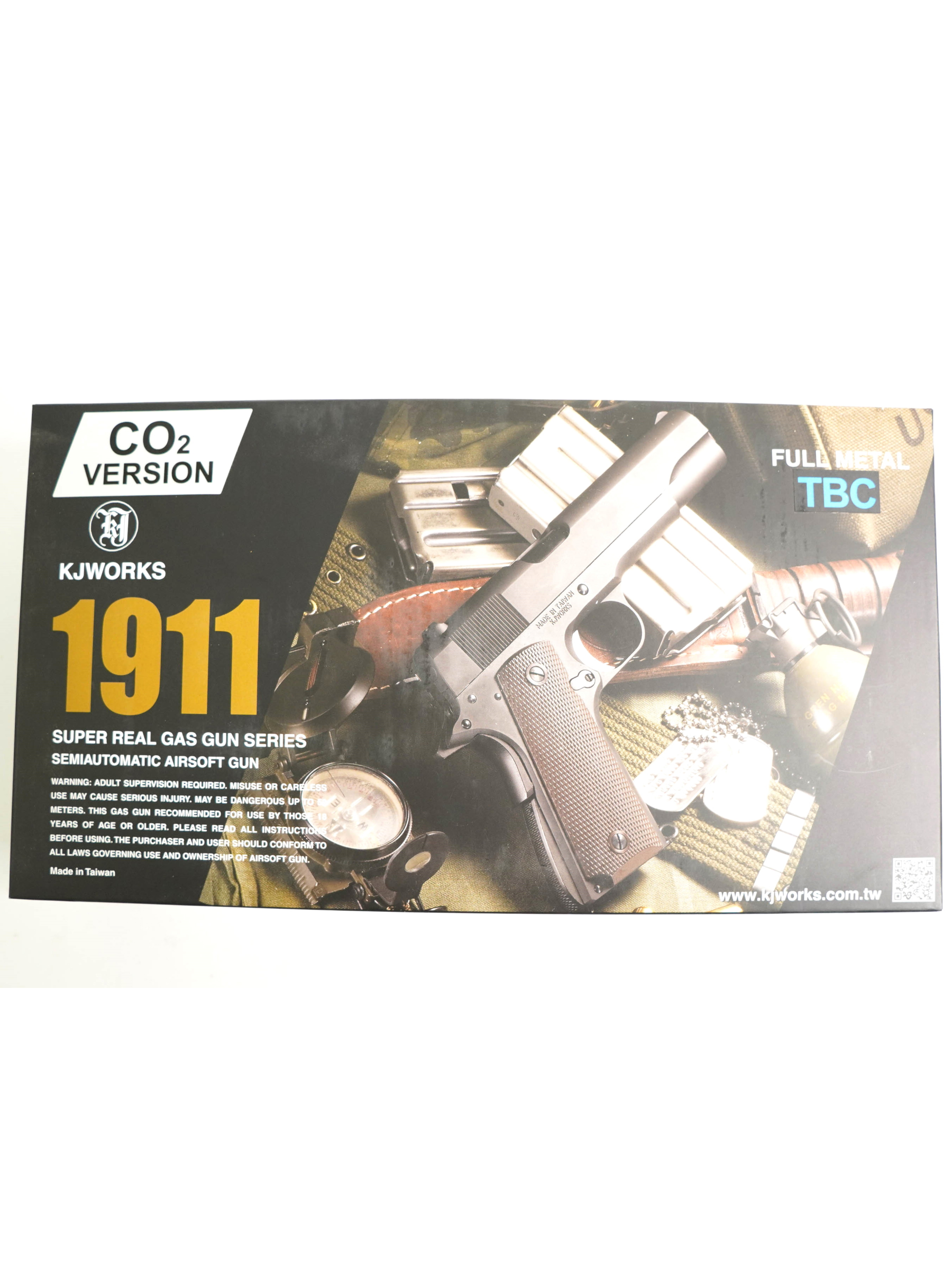 KJW Colt M1911A1 TBC – это страйкбольный пистолет, работающий на 12-граммовых баллончиках CO₂, калибра 6,0 мм (.236), обеспечивающий дульную энергию до 1,7 Дж и скорость выстрела 100 м/с. Пистолет оснащен магазином емкостью 25 шариков. Для стрельбы используются пластиковые шары 6 мм.