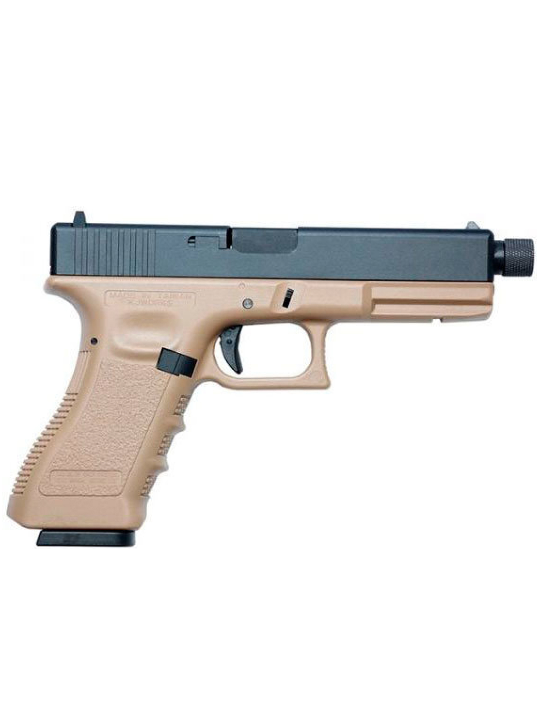KJW KP-18 Glock G18 TBC – это страйкбольный пистолет на Green Gas, калибра 6,0 мм (.236), обеспечивающий дульную энергию до 1,7 Дж и скорость выстрела 90-100 м/с. Он повторяет тактически гибкую версию знаменитого Glock 18 от KJW – KJ Works. Этот газовый пистолет сочетает в себе металлическую конструкцию, реалистичный блоубэк, возможность ведения автоматического огня и расширенные возможности для тюнинга.