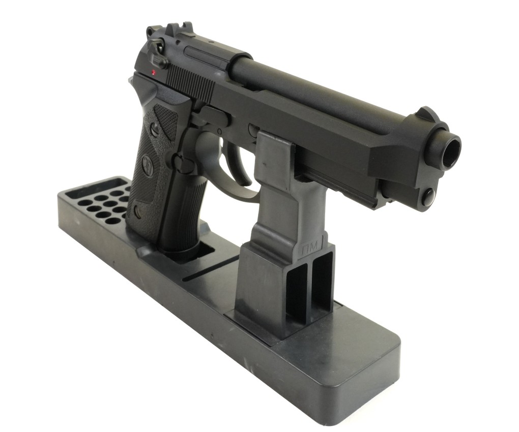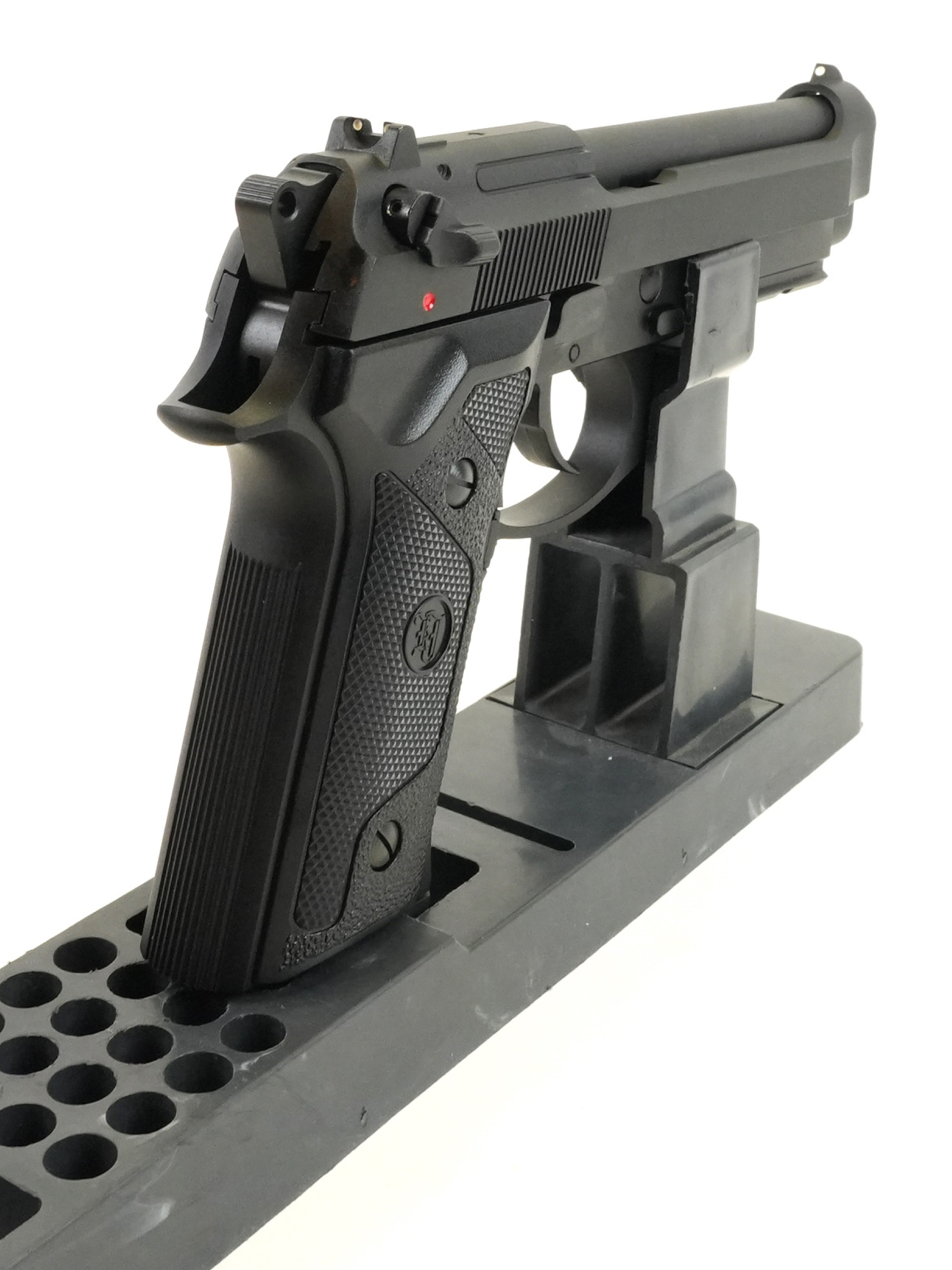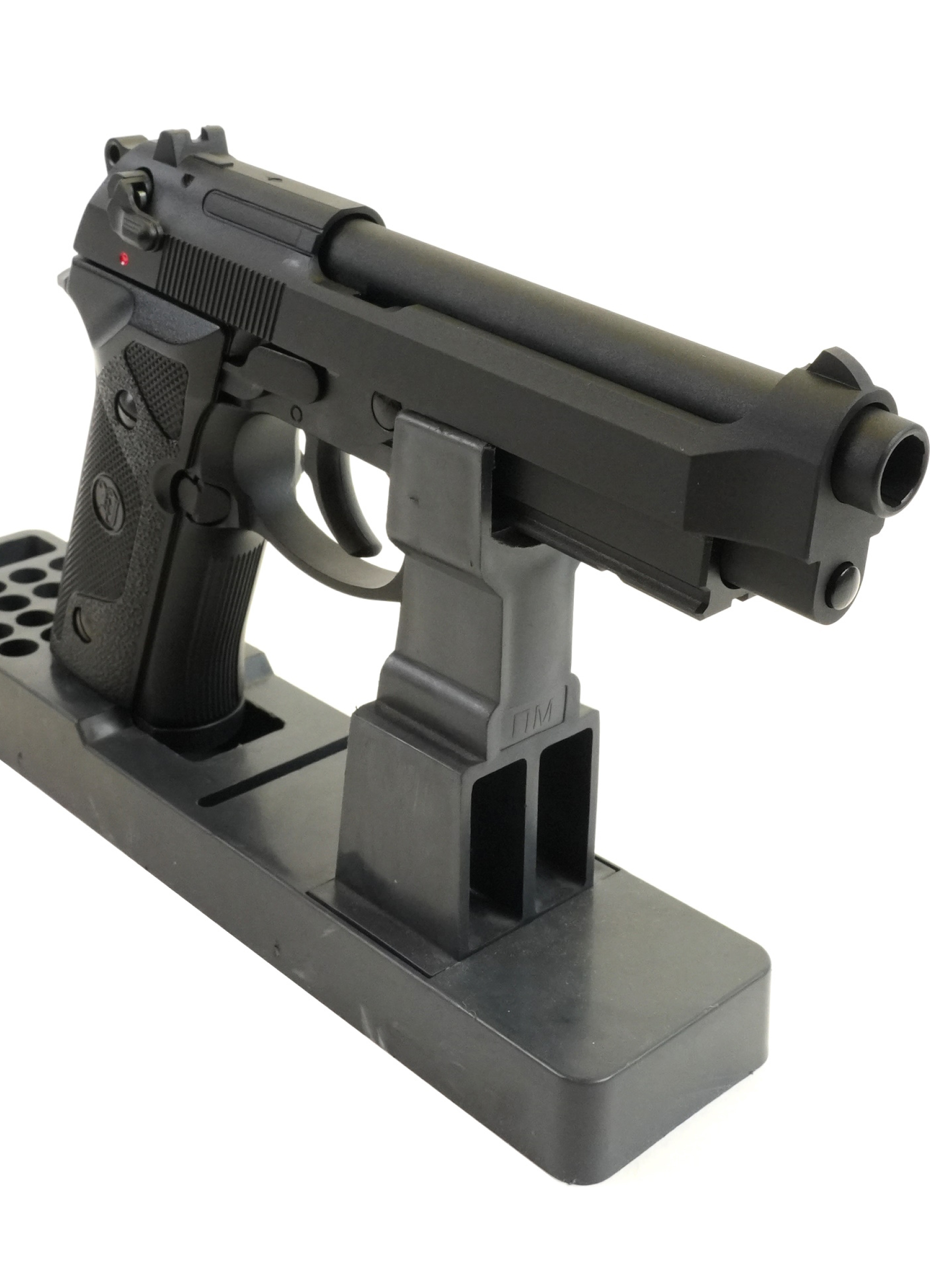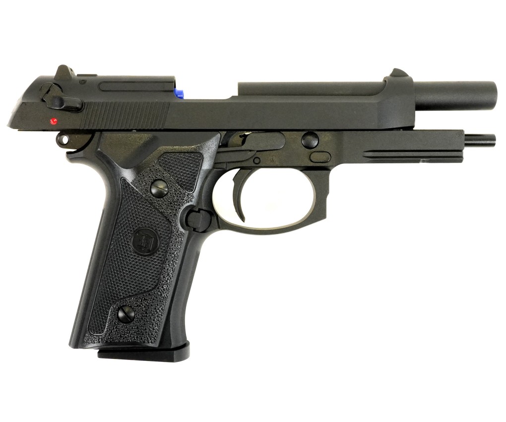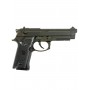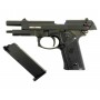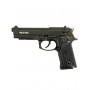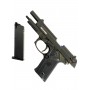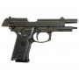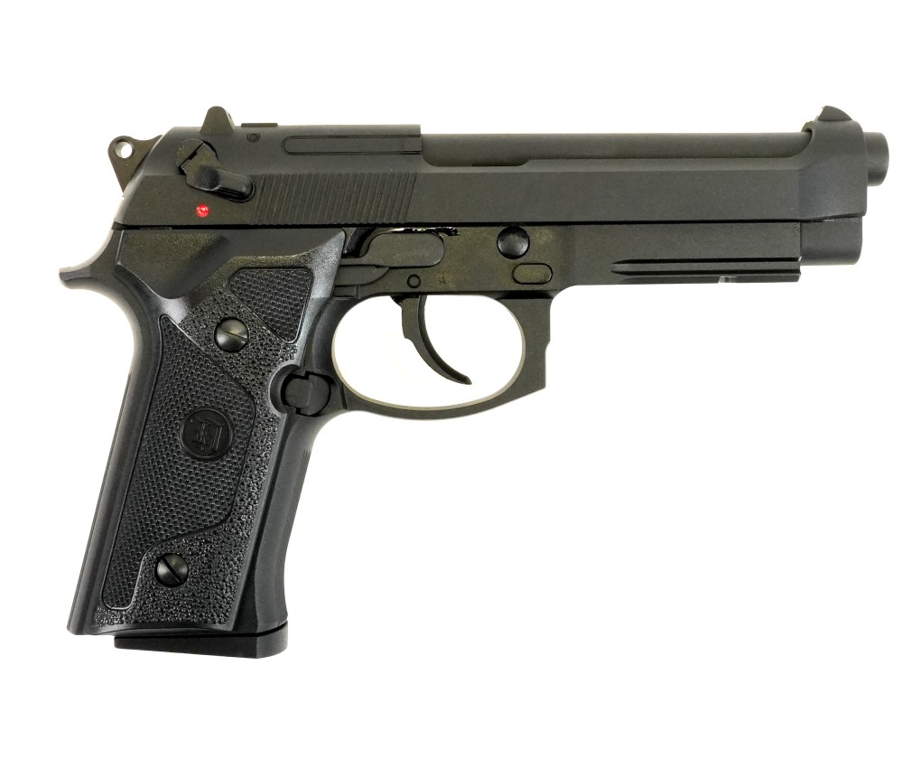 Страйкбольный пистолет M9 VE-FM от фирмы KJWorks внешне копирует одну из моделей семейства Beretta 92/M9. Предлагаемый вариант использует в качестве источника энергии грин газ. Затвор пистолета подвижный, при израсходовании всех шаров срабатывает затворная задержка; имеется блоубэк. По аналогии с прототипом реализована неполная разборка.