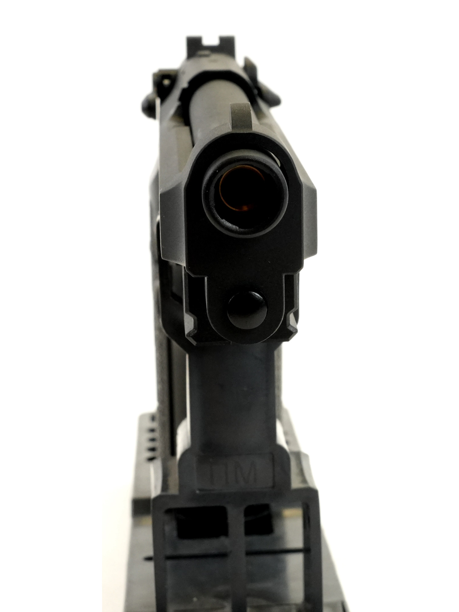 Прицельные приспособления - нерегулируемые, целик с двумя белыми точками и мушка с белой точкой. Предусмотрена подствольная RIS-планка для крепления ЛЦУ, фонарика и т.п. аксессуаров. Для исключения случайного выстрела пистолет оснащен двухсторонним флажковым предохранителем. Рамка и затвор выполнены из металла, накладки на рукоять пластиковые. Магазин пистолета - полноразмерный, вместимостью 25 шаров.