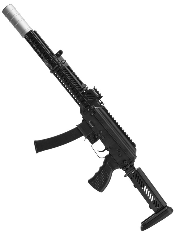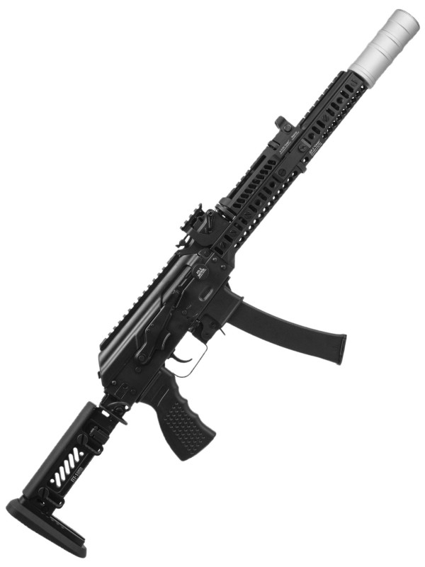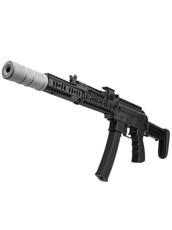 На шахту магазина можно установить расширитель, который идёт в комплекте, это облегчит перезарядку и проще будет попасть магазином в шахту экономя время. Цевье Спорт 12 выполненное из алюминиевого сплава, в комплекте идет тактический упор под интерфейс цевья. Приклад ПТ-1 складной и регулируемый по длине.