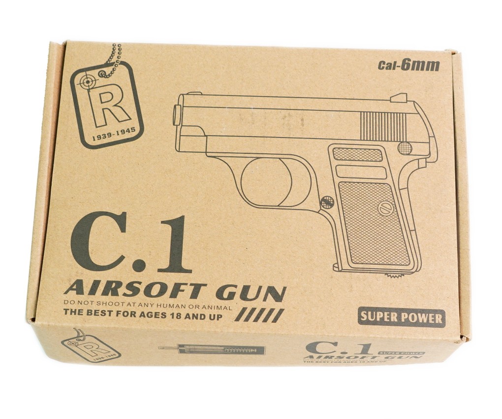 Shantou C.1 (Colt 25) – это спринговый пистолет калибра 6,0 мм (.236), приводимый в действие пружинным механизмом с ручным взведением. При дульной энергии 0,5 Дж, пистолет обеспечивает скорость выстрела 50-59 м/с. Он повторяет компактную и доступную спринговую реплику легендарного американского Colt Model 1908 калибра .25! Этот пистолет от Shantou – Smart станет отличным дополнением к коллекции, а также может использоваться для тренировок в меткости и развлечения.