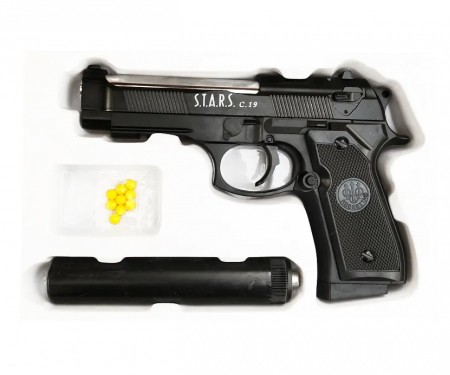 Страйкбольный пистолет Shantou C.19+ (Beretta 92, с глушителем) – это отличный способ начать свой путь в страйкболе с реалистичной и доступной репликой легендарного пистолета. Почувствуйте себя настоящим агентом с этим стильным и функциональным спринговым пистолетом!