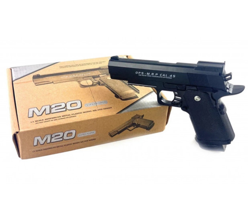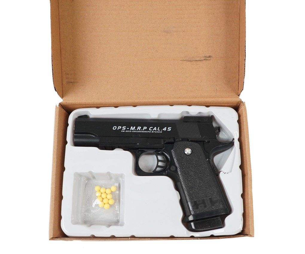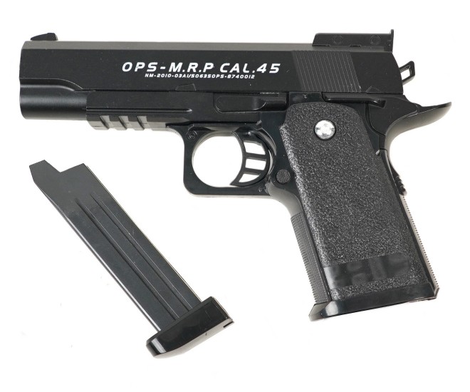 Игрушечный металлический пневматический пистолет Airsoft Gun COLT 1911 OPS-MRP M.20 спринговый (Shantou) станет отличным подарком для любого мальчика. Ведь ребята всегда нравилось и нравится играть в войнушки и подобные игры. Легко представить, как обрадуется ребенок, как только у него в руках окажется пистолет, который выглядит почти как настоящий! Ведь Airsoft Gun Colt mini C.1 изготовлен из нелегкого металла, который создаст ощущение, будто Вы держите в руках самое настоящее оружие! И даже взрослые будут поражены такой игрушкой, ведь она настолько правдоподобна! Зарядка происходит как у самого настоящего оружия!