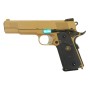 Страйкбольный пистолет WE Colt M1911A1 M.E.U. Tan – это популярная air-soft модификация от тайваньского производителя, реплика Кольта М1911 в его классическом варианте. Модель отличается высокой степенью копийности, все детали схожи по функционалу с боевым прототипом, как и неполная разборка.