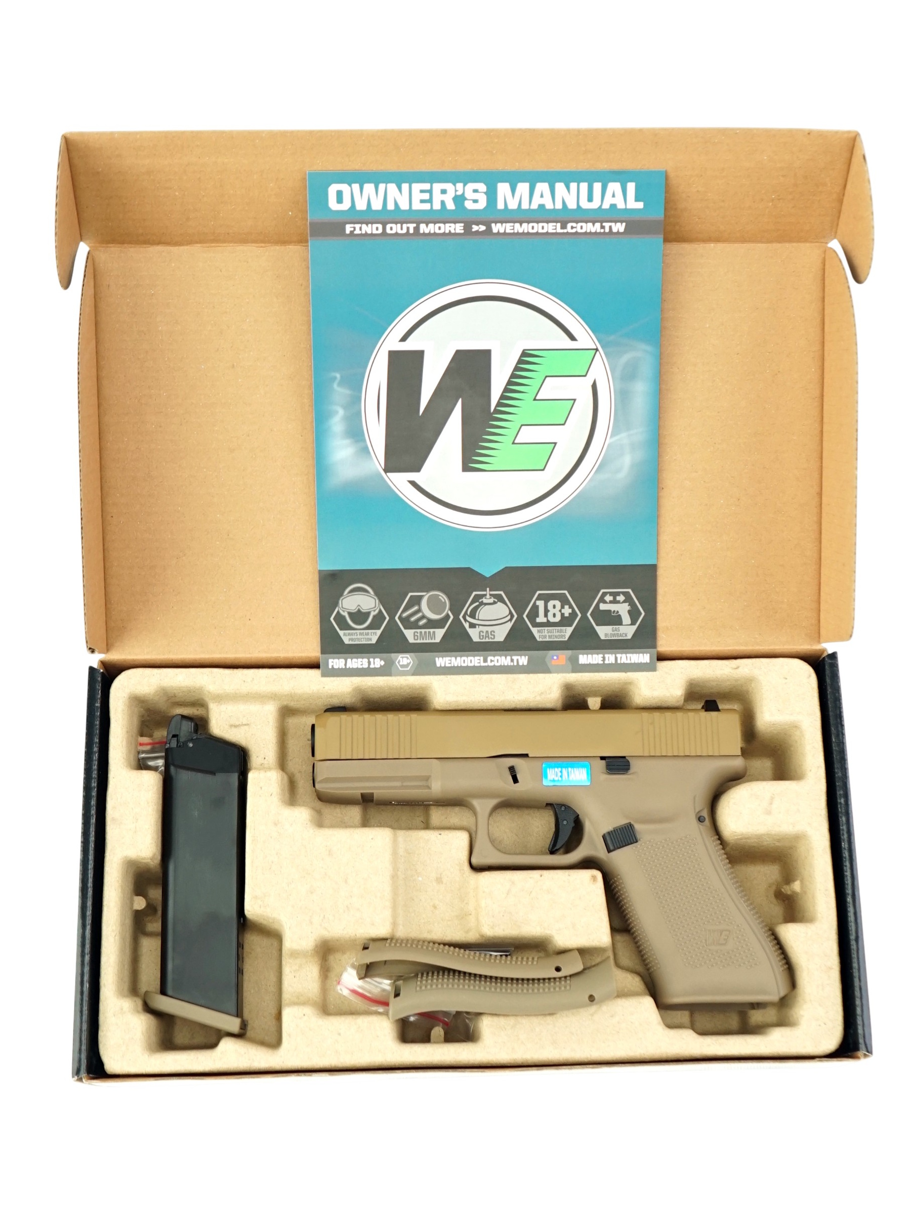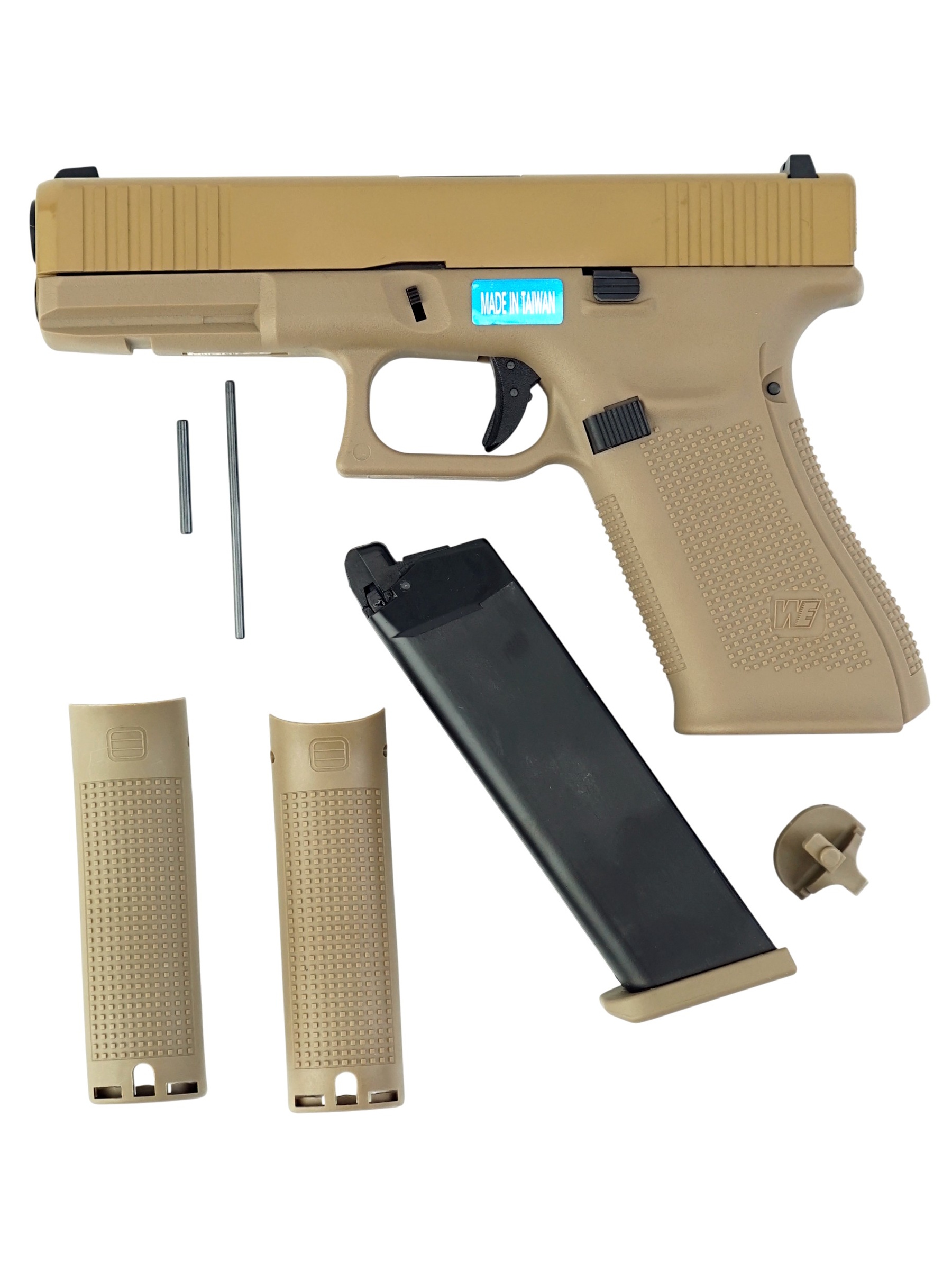 Описание страйкбольного пистолета WE Glock-17 gen5 Tan: