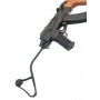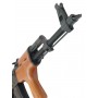 Слева на корпусе присутствуют крепления для планки Вивера, давая возможность использовать с приводом оптику. Имеются антабки из металла для ремня. Складывание приклада выполняется вправо, позволяя добиться максимальной компактности и маневренности. Материалы – сплав алюминия, пластик и натуральное дерево (для цевья с рукояткой). В целом автомат отличается качественной сборкой и добротной подгонкой деталей. Вес 3,4 кг, полная длина 90 см. В комплекте привода: магазин, шомпол, аккумулятор с ЗУ, руководство пользователя.