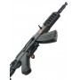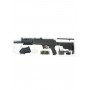 Бункерный магазин из пластика, вмещает 250 шариков калибром 6 мм. Показатель скорости выстрела – до 120 м/с, эта цифра максимально приближена к допустимому показателю при играх в закрытых павильонах. Игрок может использовать режим стрельбы очередями или же переключиться на одиночные выстрелы. Автомат доступен для приобретения без ограничений благодаря небольшой дульной энергии в 1,7 Дж.