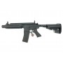 Важной характеристикой этого привода является его оснащение цевьем Keymod – за счет этого на автомат можно установить любой обвес. Кроме того, на цевье уже предустановлены три ris-планки. Привод имеет диоптрический целик складной конструкции, и дополнительно комплектуется глушителем. Автомат в основном изготовлен из алюминиевого сплава, пистолетная рукоятка и раздвижной приклад пластиковые. Высокое качество сборки и отсутствие люфтов – несомненное преимущество этого оружия.